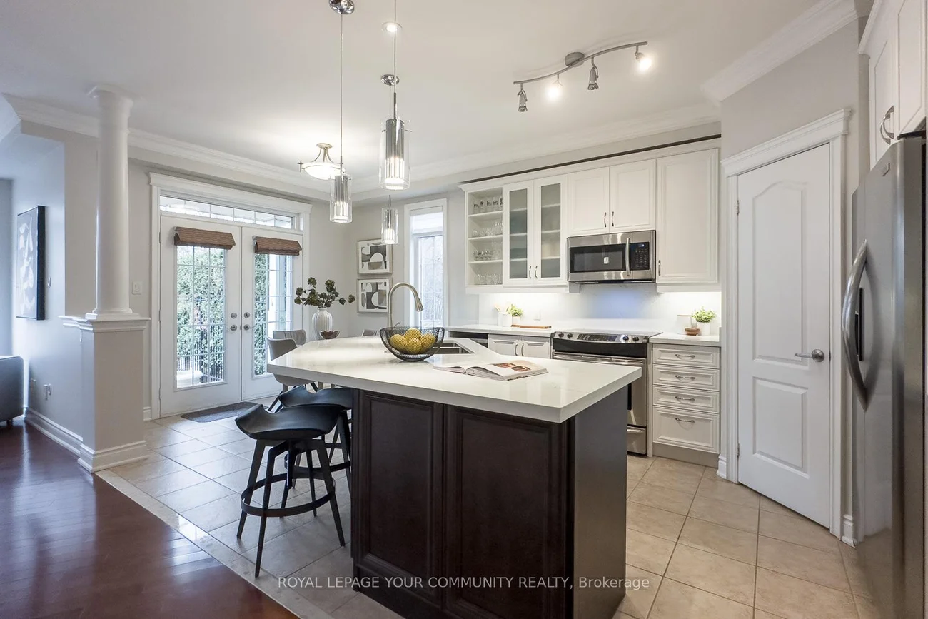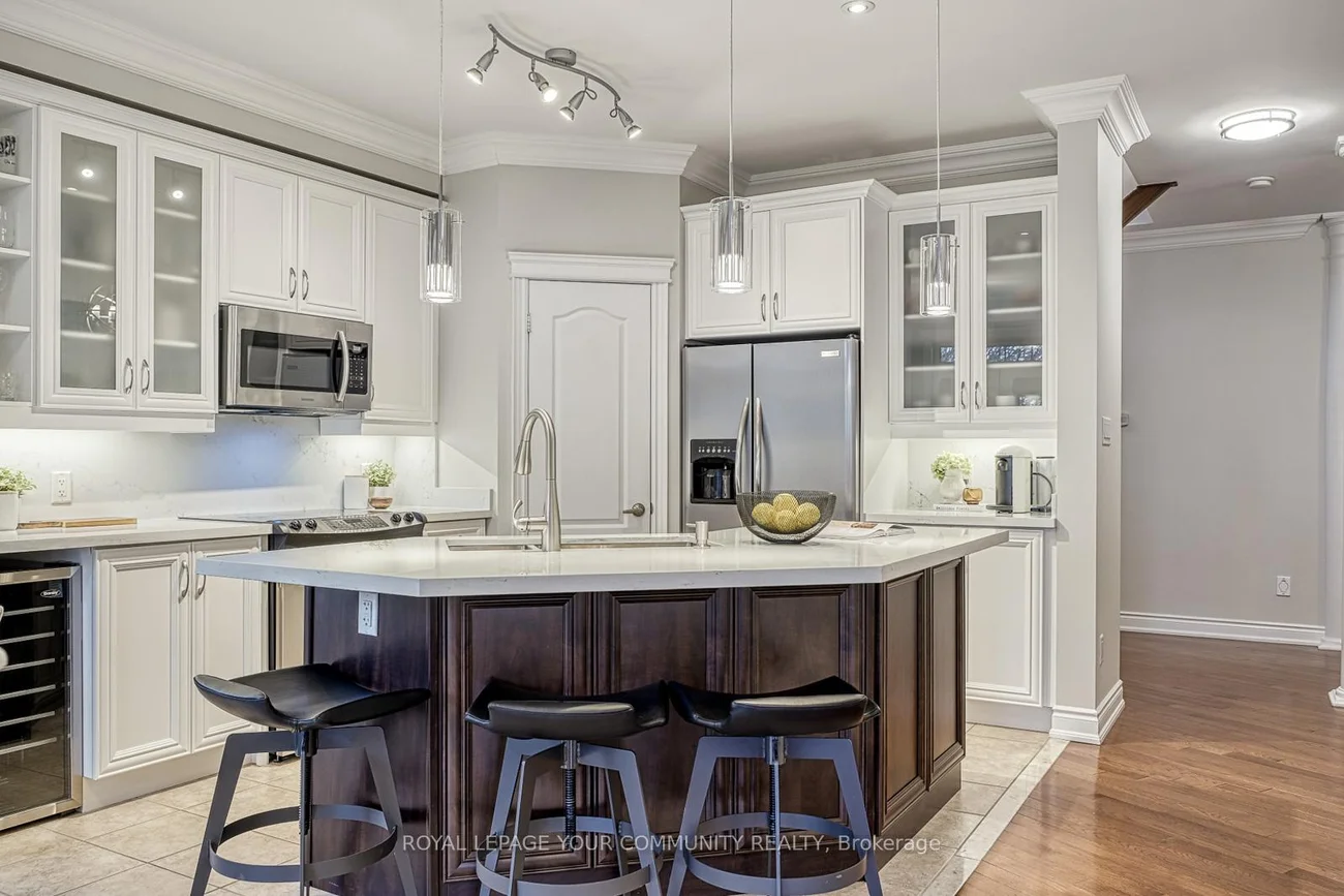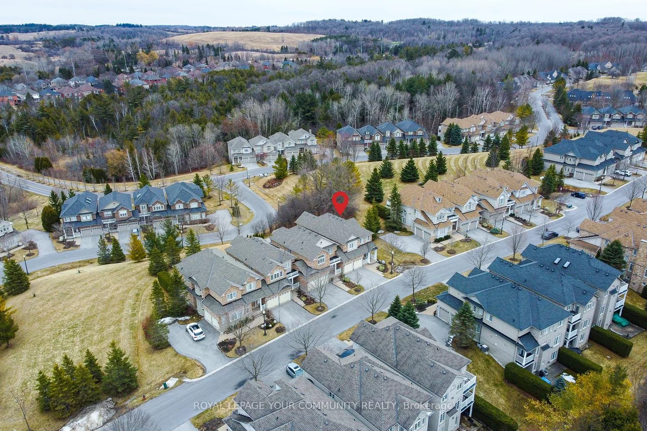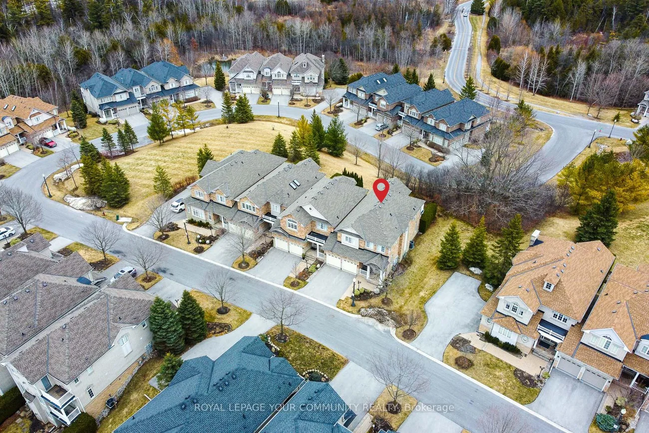 Embrace For Sale 59 Stonecliffe Cres, Aurora, Ontario. Embrace the perfect blend of luxury and serenity at 59 Stonecliffe Crescent, a beautifully appointed condominium townhouse that offers an exquisite living experience within the sought-after gated community of "Stonebridge Estate." This end unit, resembling a detached home, is nestled amidst 50 acres of lush woodlands, surrounded by world-class golf courses and the stunning landscapes of the Oak Ridges Moraine. As you enter, the open-concept design captivates you with its airy feel and natural light. The renovated kitchen serves as the heart of the home, showcasing elegant white cabinetry, a spacious quartz countertop, and a center island that beckons culinary creativity. The adjoining Great Room, adorned with a cozy gas fireplace and crown molding, invites relaxation while offering picturesque views of the private backyard. Host intimate dinners in the formal dining room under the dramatic cathedral ceiling and crown moulding. The main floor laundry area has a full-size washer & dryer, a large laundry sink, white cabinetry, and access to a double-car garage. Foyer, with a large closet, 2-piece powder bathroom, and double-door entrance. Travel upstairs to discover a private sanctuary in the expansive primary suite, where you can unwind in the luxury of a 5-piece ensuite featuring heated floors, double sinks, a separate shower, soaker tub. The primary has a walk-out balcony, an electric fireplace, a walk-in closet. Two additional well-appointed bedrooms, each with double closets, provide ample space. The finished basement further elevates this home, offering versatile areas for recreation, a stylish bar, and a dedicated office space-all designed for your ultimate comfort and enjoyment. Positioned close to shopping, hospitals, and minutes from Hwy 404, this residence offers not only a beautiful home but a desirable lifestyle. Discover the safety, tranquility, and elegance that await you at 59 Stonecliffe Crescent.