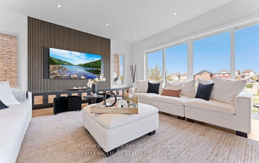 Welcome to an architectural masterwork of modern luxury and innovation. This bespoke residence offers over 3700 sqft of elevated living across three meticulously crafted levels. Perched on a premium RAVINE lot with 10FT walk-out basement, this home was thoughtfully designed for those who value both sophisticated style and advanced functionality.The main level boasts a dramatic grand foyer with custom millwork, an executive two-storey glass office, and a great room anchored by 12-ft wide floor-to-ceiling sliders that seamlessly connect to lush outdoor living. The chefs kitchen is a statement in design, featuring a showpiece waterfall island, panel-ready smart appliances, and a hidden walk-in scullery-butlers pantry with full prep capabilities .On the second level, three private bedroom suites each offer designer ensuites, custom storage and abundant natural light. A dedicated laundry suite with premium appliances and bespoke cabinetry adds everyday elegance.The entire third floor is a private primary retreat complete with vaulted ceilings, a sculptural four-poster bed alcove, boutique walk-in closet with skylight, and a spa-inspired ensuite featuring heated porcelain floors, double rainfall showers, and a freestanding tub.Smart home features include Brilliant WiFi automation, built-in speakers, central vacuum system with car vacuum, whole-house water softener and filtration, and security system wiring with camera capability. All appliances are WiFi-enabled and controllable by phone. Additional highlights include five skylights, pet wash station, private balconies with stunning CLEAR RAVINE views, artisan finishes throughout, and a walk-out basement with a 3-piece rough-in awaiting your vision. With easy access to 400 & 404, convenience meets luxury. This is a rare opportunity to own a residence where curated design and cutting-edge technology converge in perfect harmony. Plutus Homes is an HCRA Tarion registered builder with an impeccable reputation and rich history.