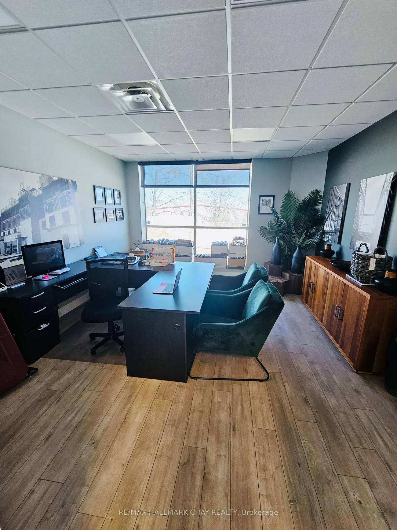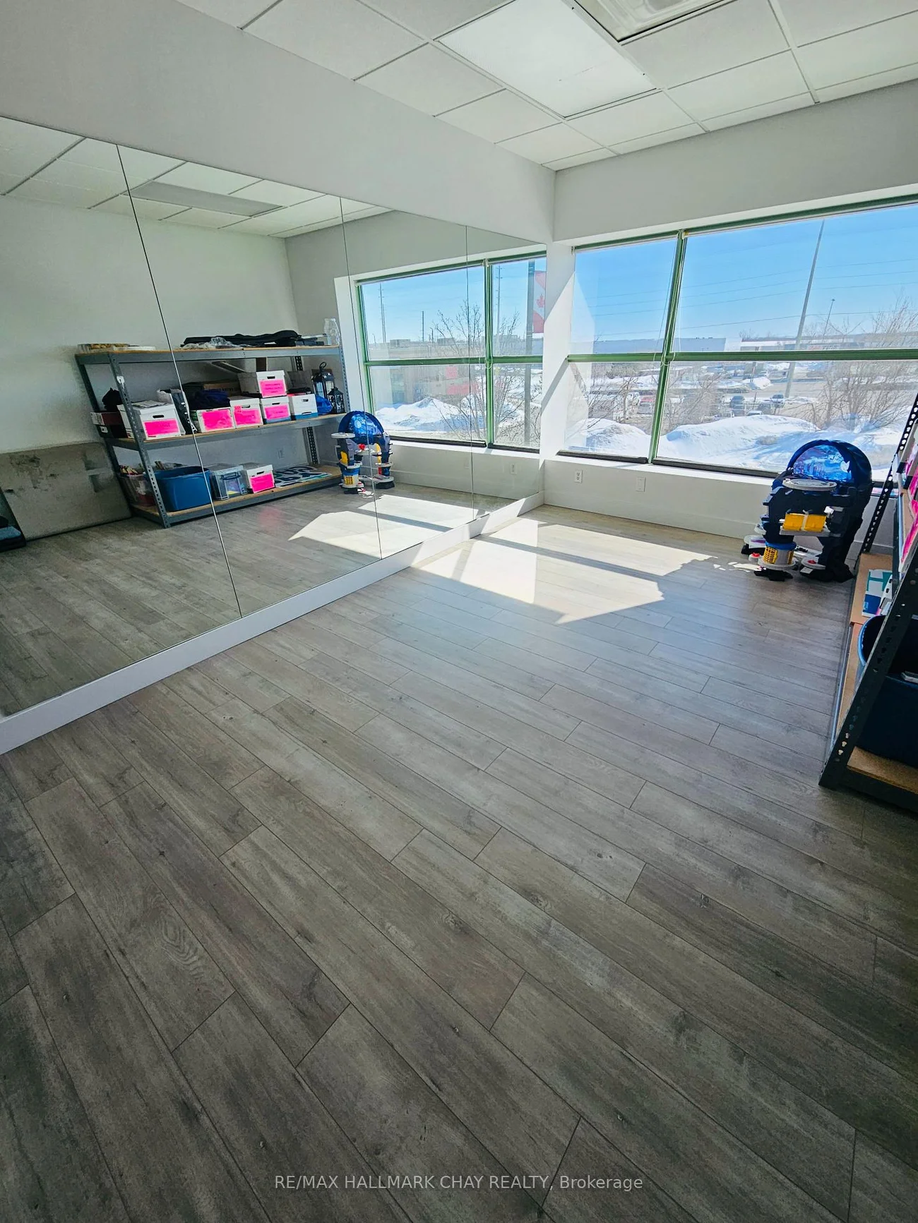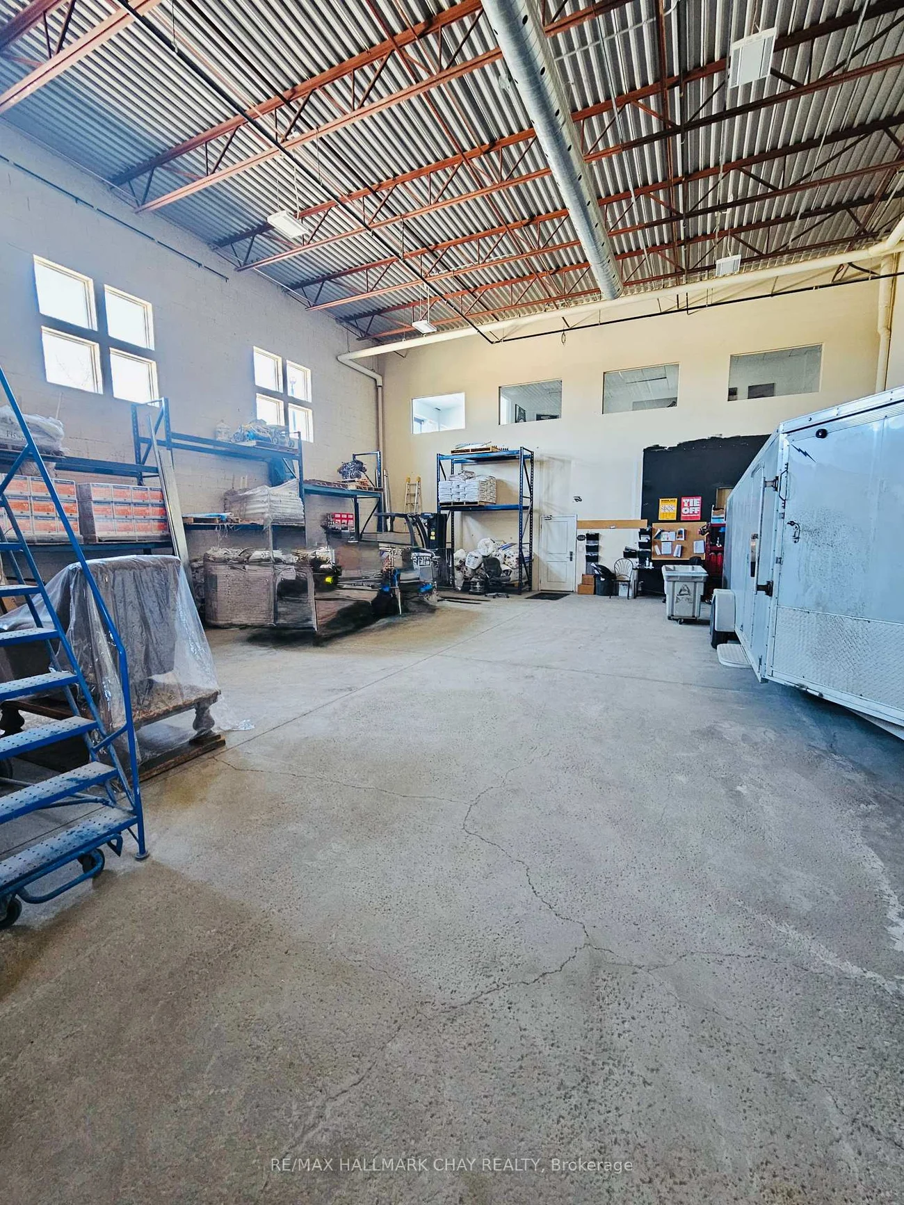 Excellent industrial end unit available in south end of Barrie. Approx. 2200 sq ft windowed warehouse area with 20 ft clear height. 14x10 ft drive-in door. Attractive front reception /offices area with A/C, kitchenette and 2 washrooms. Beautifully finished mezzanine area, approx. 1000 sq.ft. with windowed offices/boardroom included at no extra cost. TMI @$5.50 psf