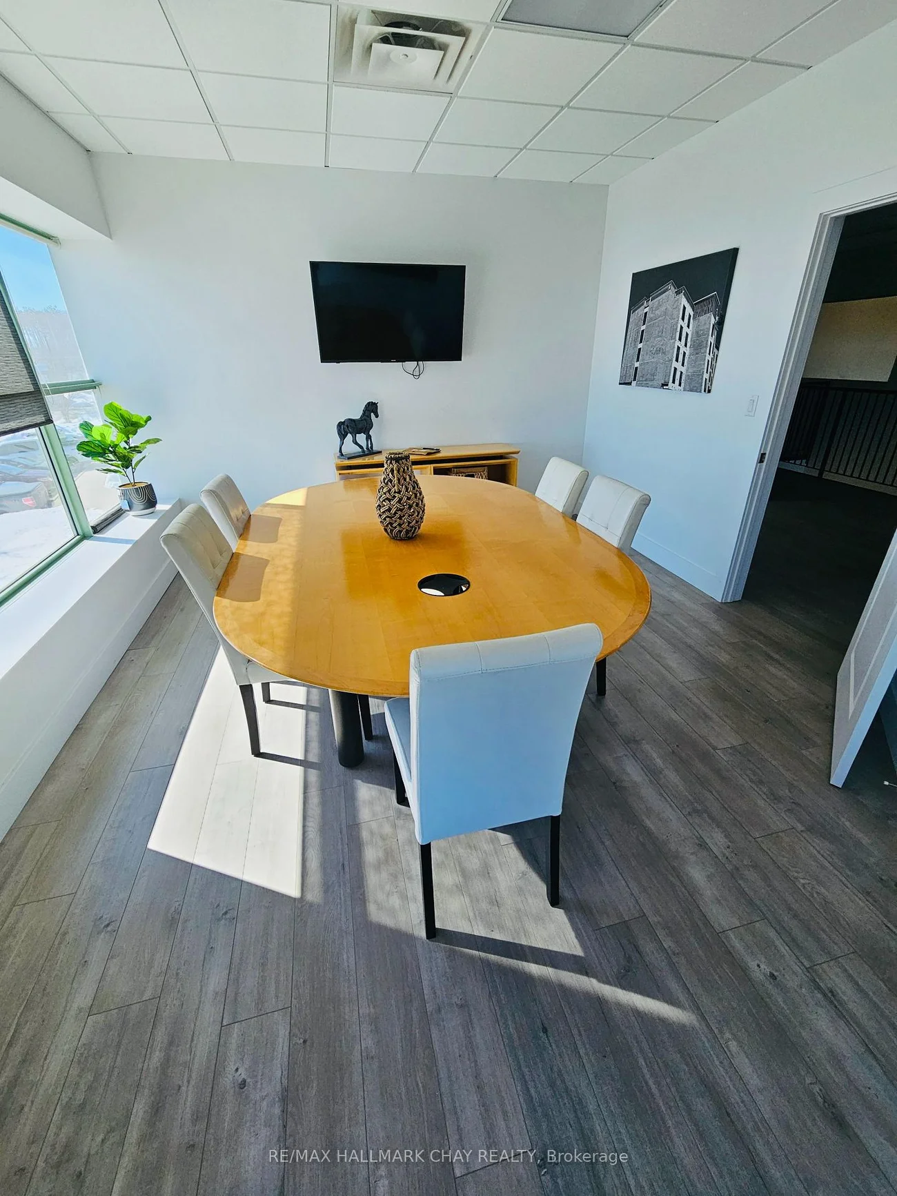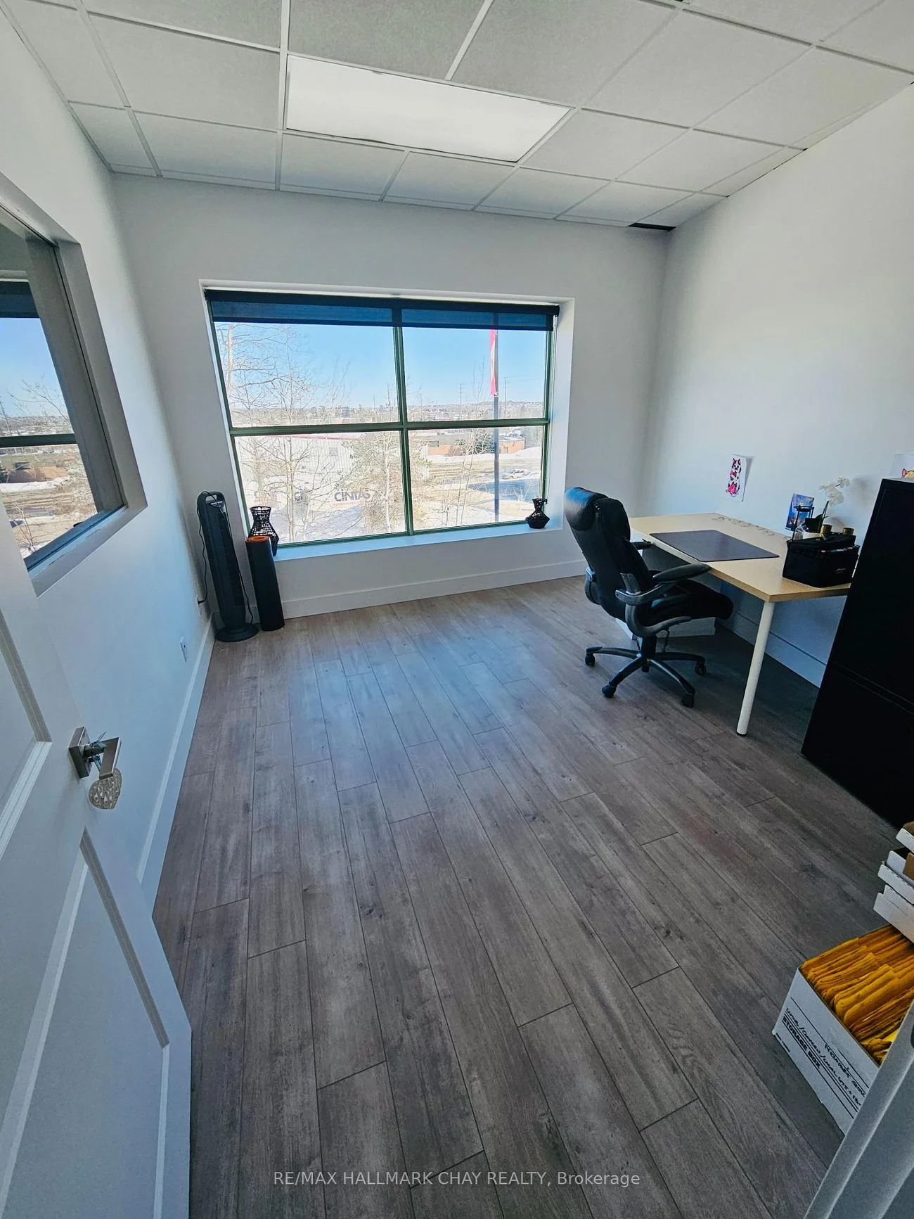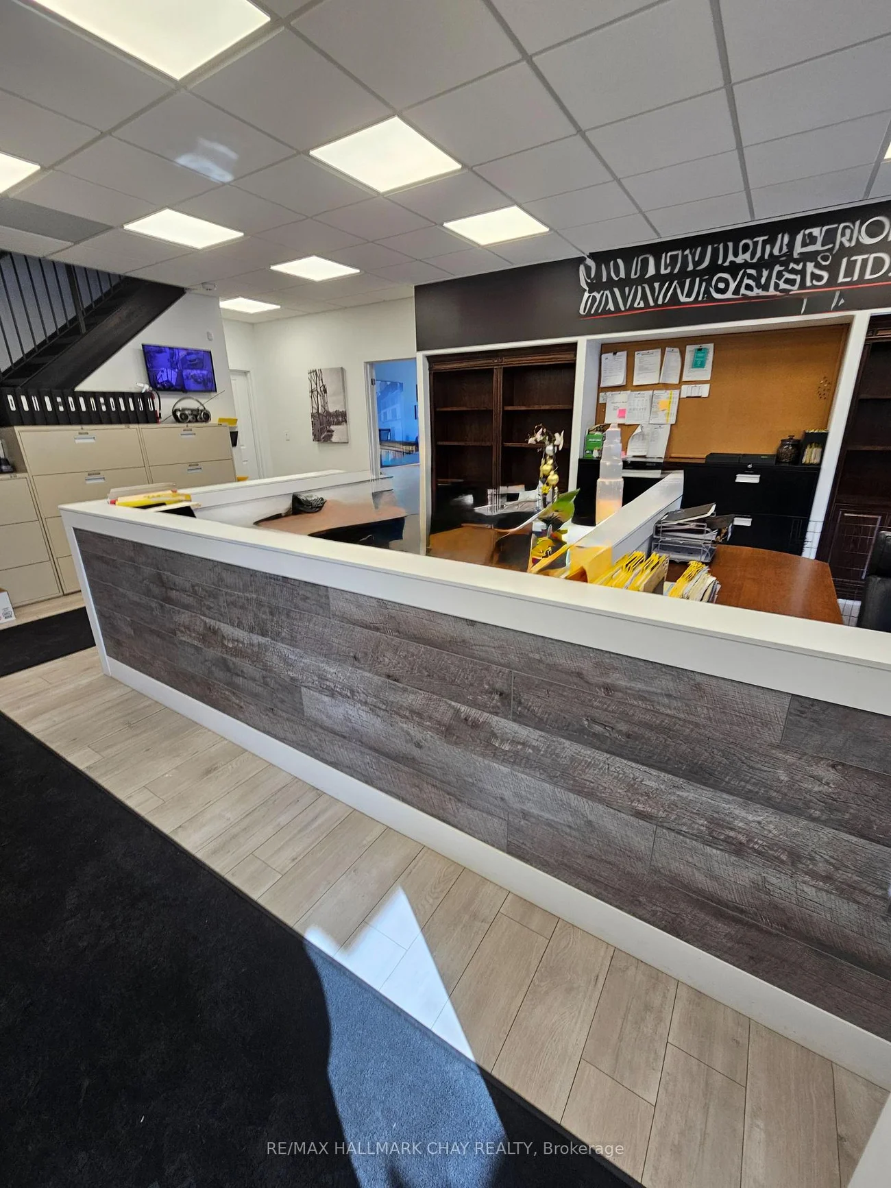 Excellent industrial end unit available in south end of Barrie. Approx. 2200 sq ft windowed warehouse area with 20 ft clear height. 14x10 ft drive-in door. Attractive front reception /offices area with A/C, kitchenette and 2 washrooms. Beautifully finished mezzanine area, approx. 1000 sq.ft. with windowed offices/boardroom included at no extra cost. TMI @$5.50 psf