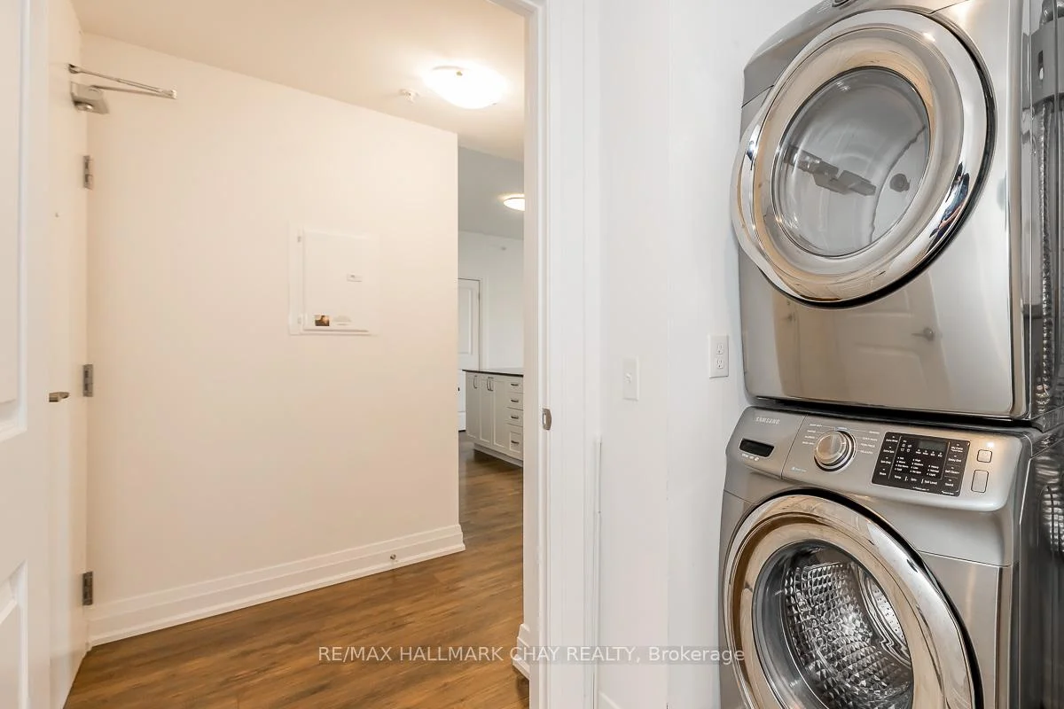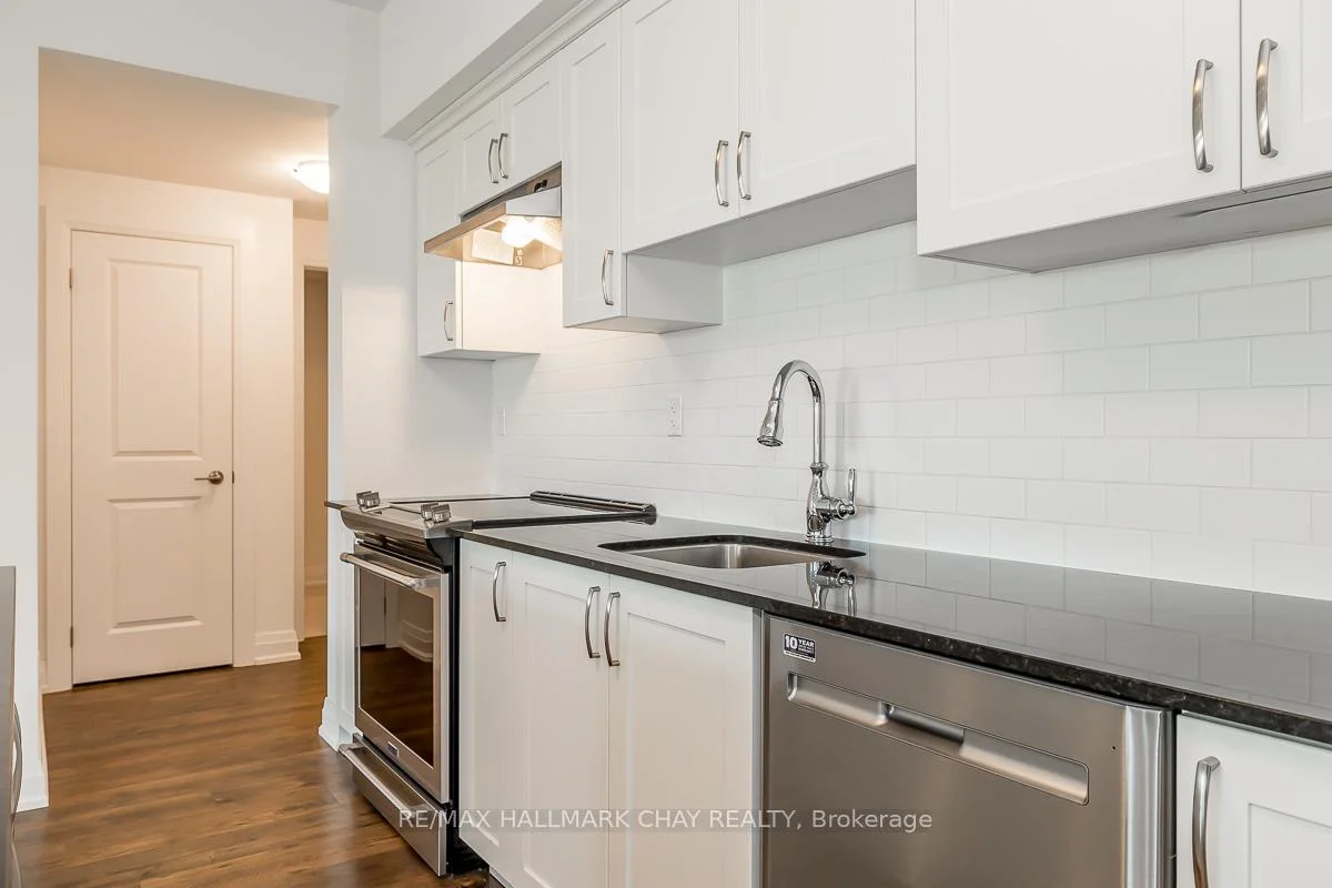 Welcome home! This 1244 sq ft layout at The Junction has everything! Open concept, spacious layout. $38,000 in upgrades including smooth ceilings, upgraded, high-quality laminate flooring, upgraded cabinetry, granite countertops in the kitchen and bathrooms, pot lights - and the list goes on. This layout is wheelchair accessible with extra-wide doorways inside the unit and a wide, open-concept ensuite bathroom. 1 underground parking space and locker. BBQs are allowed. This building is very well managed and maintained. Perfect location for commuting, transit, schools and truly walking distance to all amenities. Close to the hospital (RVH) and Georgian College as well.