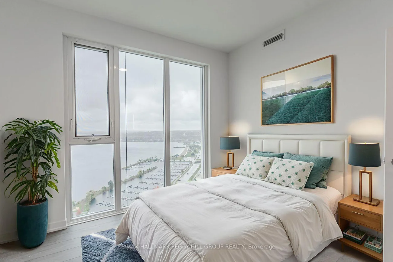 BRAND-NEW 2-BED PLUS DEN CONDO WITH VIEWS OF KEMPENFELT BAY, GARAGE PARKING & LOCKER! Rise above it all in this brand-new, never-occupied condo for lease offering nearly 1,100 sq ft of bright, modern living with breathtaking views at every turn. Nearly every room is wrapped in floor-to-ceiling windows, filling the home with natural light and capturing panoramic views of Kempenfelt Bay, the marina, the city skyline, and the iconic Spirit Catcher. The sleek kitchen showcases built-in appliances, contemporary cabinetry with warm wood accents, under-cabinet lighting, and polished countertops, complementing the open living and dining areas with a sophisticated, cohesive design. The primary bedroom features a walk-in closet and a modern 4-piece ensuite with a glass-walled walk-in shower and dual vanity, joined by a bright second bedroom and a flexible den. Everyday convenience shines with in-suite laundry, one above ground garage parking space, and a storage locker. Perfectly positioned in Barrie's vibrant downtown, steps from the waterfront, Heritage Park, trails, restaurants, cafes, shops, and transit, this exceptional residence also grants access to resort-inspired amenities including an infinity pool, fitness centre, fire-pit and BBQ area, business lounge, putting green, and elegant indoor and outdoor dining spaces. Modern design, panoramic views, and a vibrant downtown address, this is elevated living in Barrie!