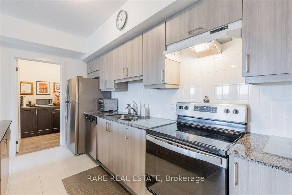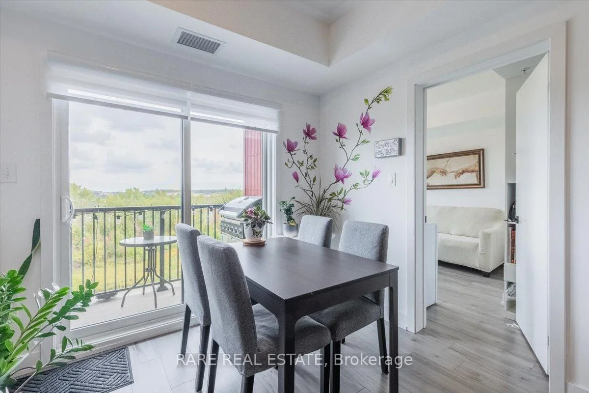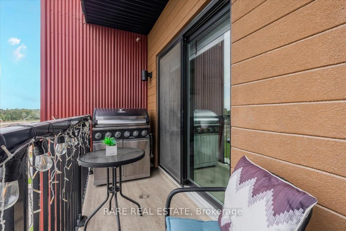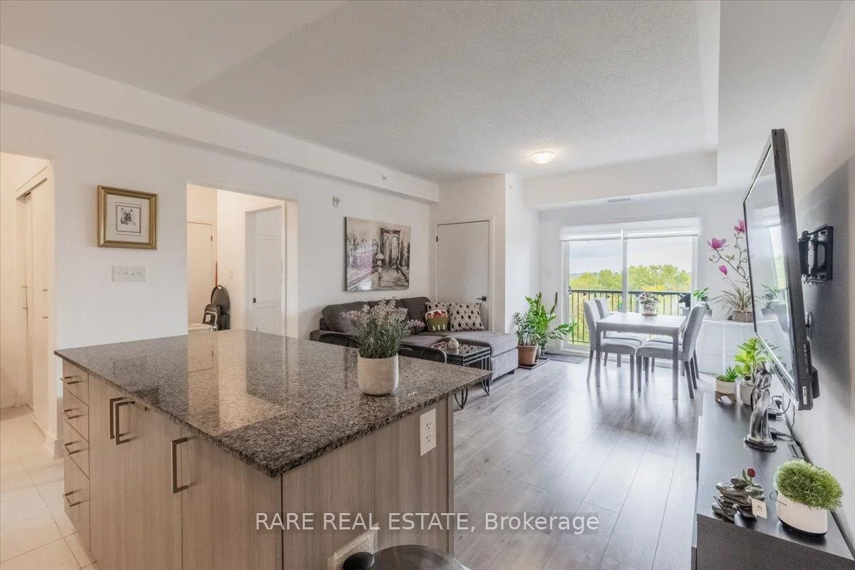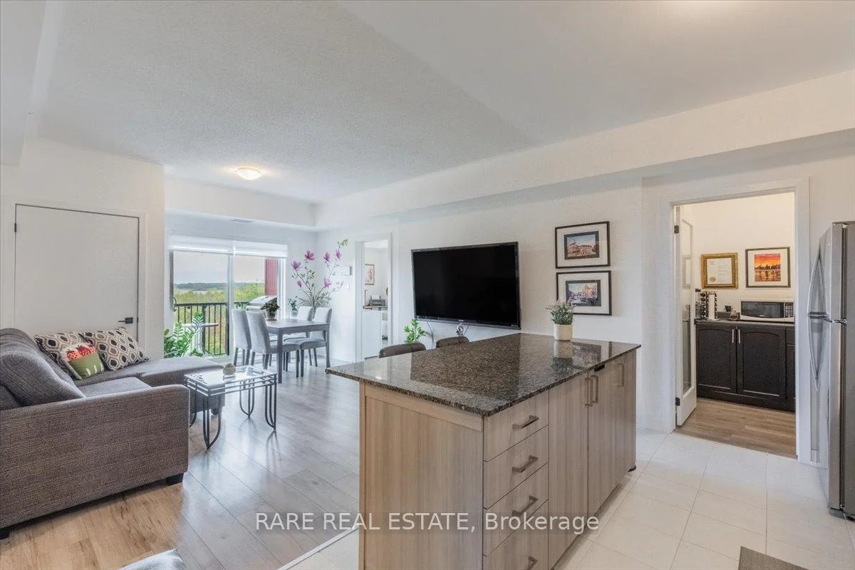 Welcome to this beautifully upgraded condo at 10 Culinary Lane, offering a perfect mix of style and function. The open-concept kitchen features granite countertops, soft-close cabinetry, stainless steel appliances, and a breakfast bar that overlooks the living and dining area. Upgraded engineered hardwood floors run throughout, adding warmth and sophistication. Large windows fill the space with natural light, and the private balcony provides a relaxing spot to enjoy open views with no neighbors directly behind.The layout includes a bright primary bedroom, a second bedroom, a den, a modern three-piece bathroom, and convenient in-suite laundry.This home also includes one underground parking space with locker storage, adding extra value and convenience. The building is pet-friendly, making it a great choice for animal lovers.Located just minutes from Barrie South GO Station, Highway 400, shopping, dining, parks, and trails, this move-in ready condo is ideal for first-time buyers, downsizers, or investors looking for a low-maintenance property in a growing community.