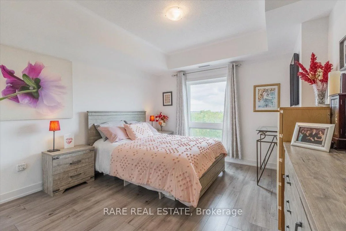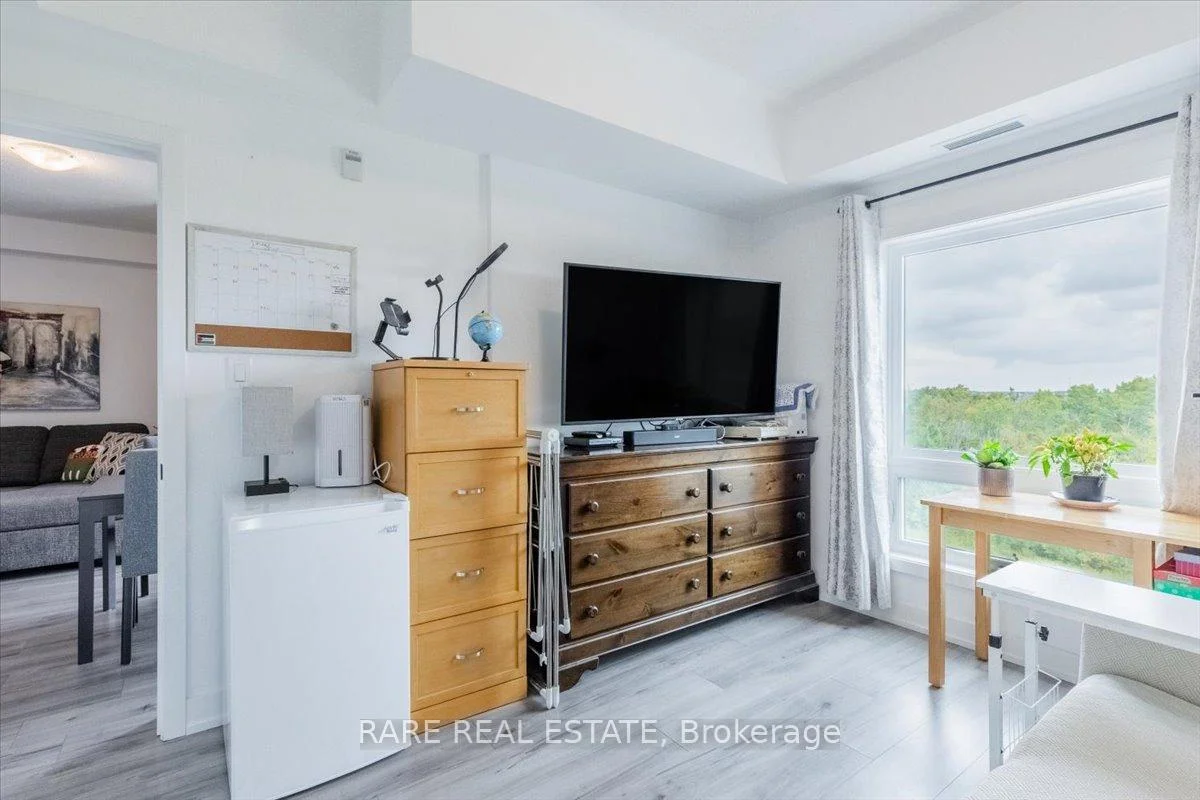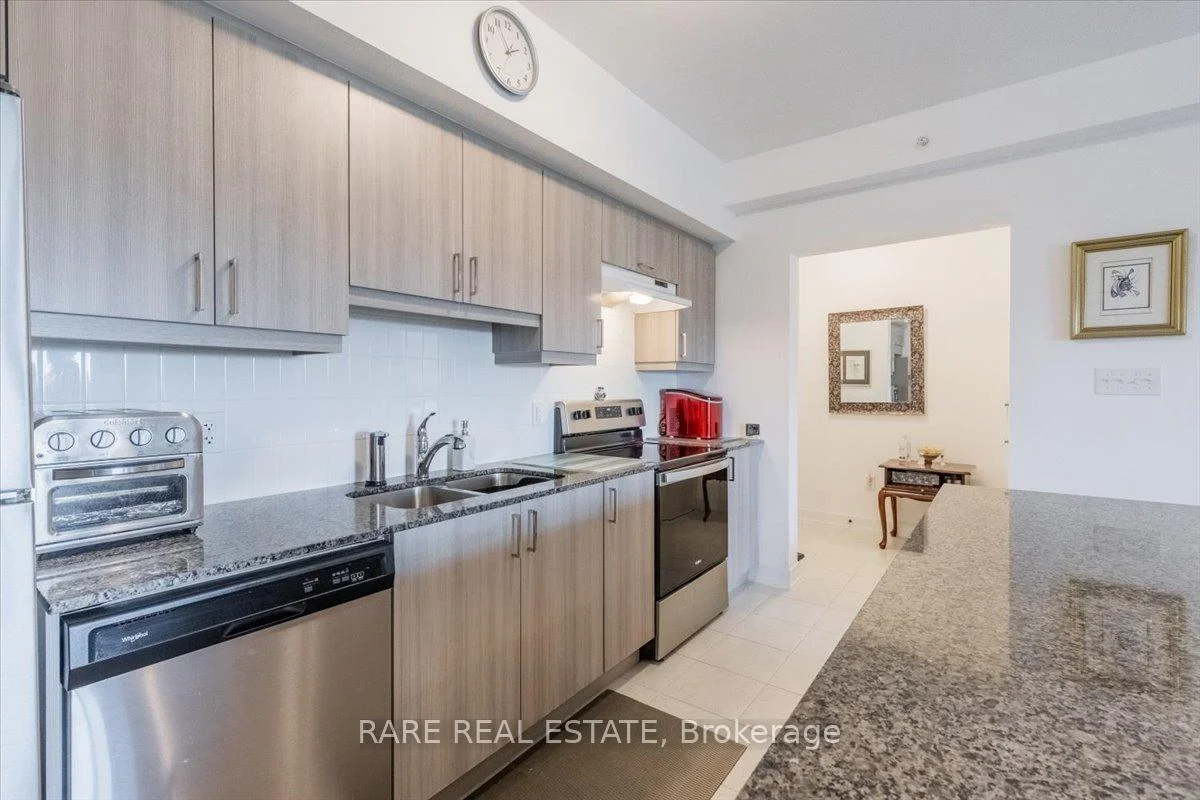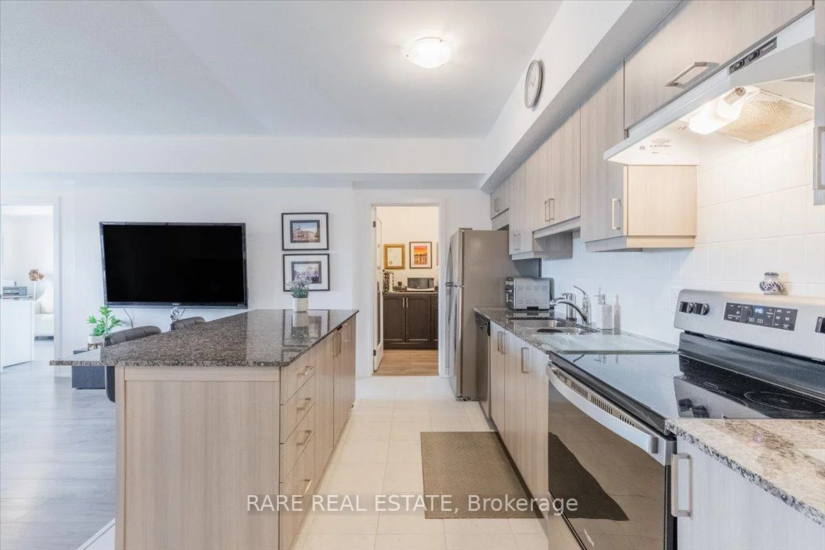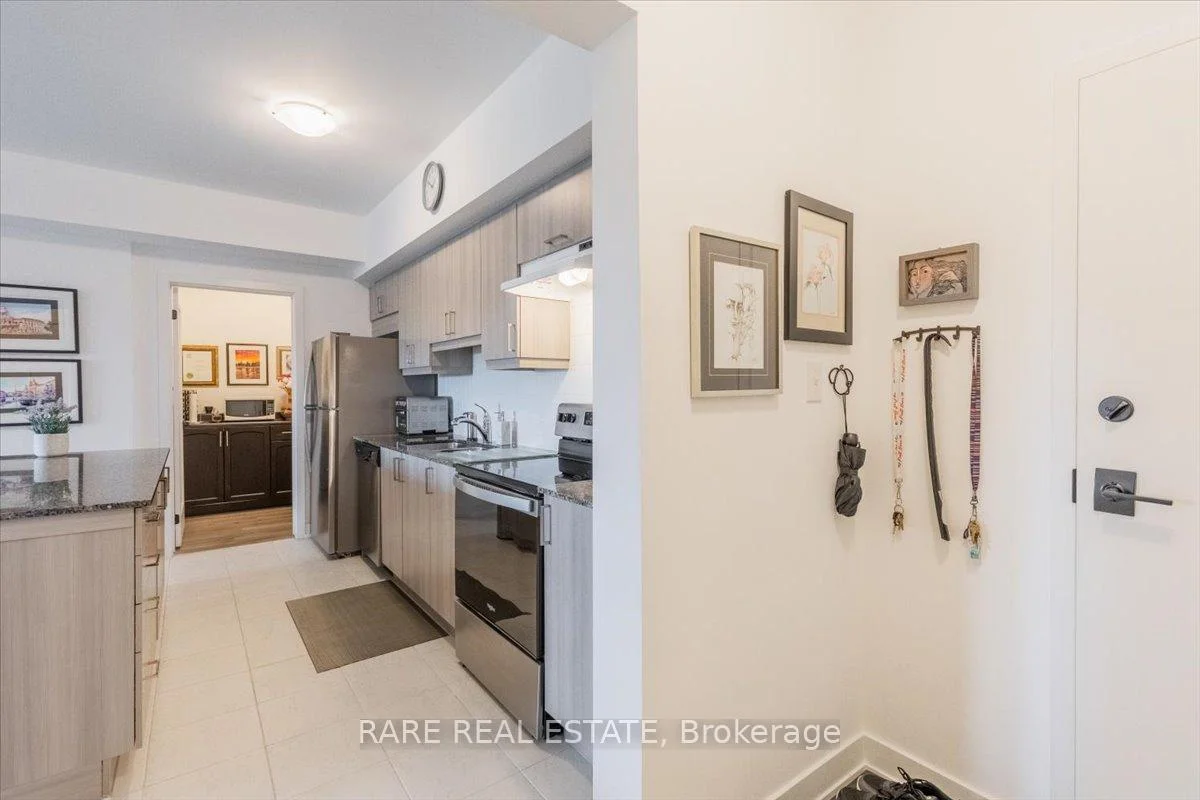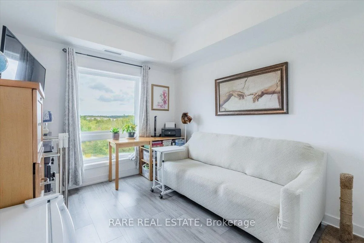 Welcome to this beautifully upgraded condo at 10 Culinary Lane, offering a perfect mix of style and function. The open-concept kitchen features granite countertops, soft-close cabinetry, stainless steel appliances, and a breakfast bar that overlooks the living and dining area. Upgraded engineered hardwood floors run throughout, adding warmth and sophistication. Large windows fill the space with natural light, and the private balcony provides a relaxing spot to enjoy open views with no neighbors directly behind.The layout includes a bright primary bedroom, a second bedroom, a den, a modern three-piece bathroom, and convenient in-suite laundry.This home also includes one underground parking space with locker storage, adding extra value and convenience. The building is pet-friendly, making it a great choice for animal lovers.Located just minutes from Barrie South GO Station, Highway 400, shopping, dining, parks, and trails, this move-in ready condo is ideal for first-time buyers, downsizers, or investors looking for a low-maintenance property in a growing community.