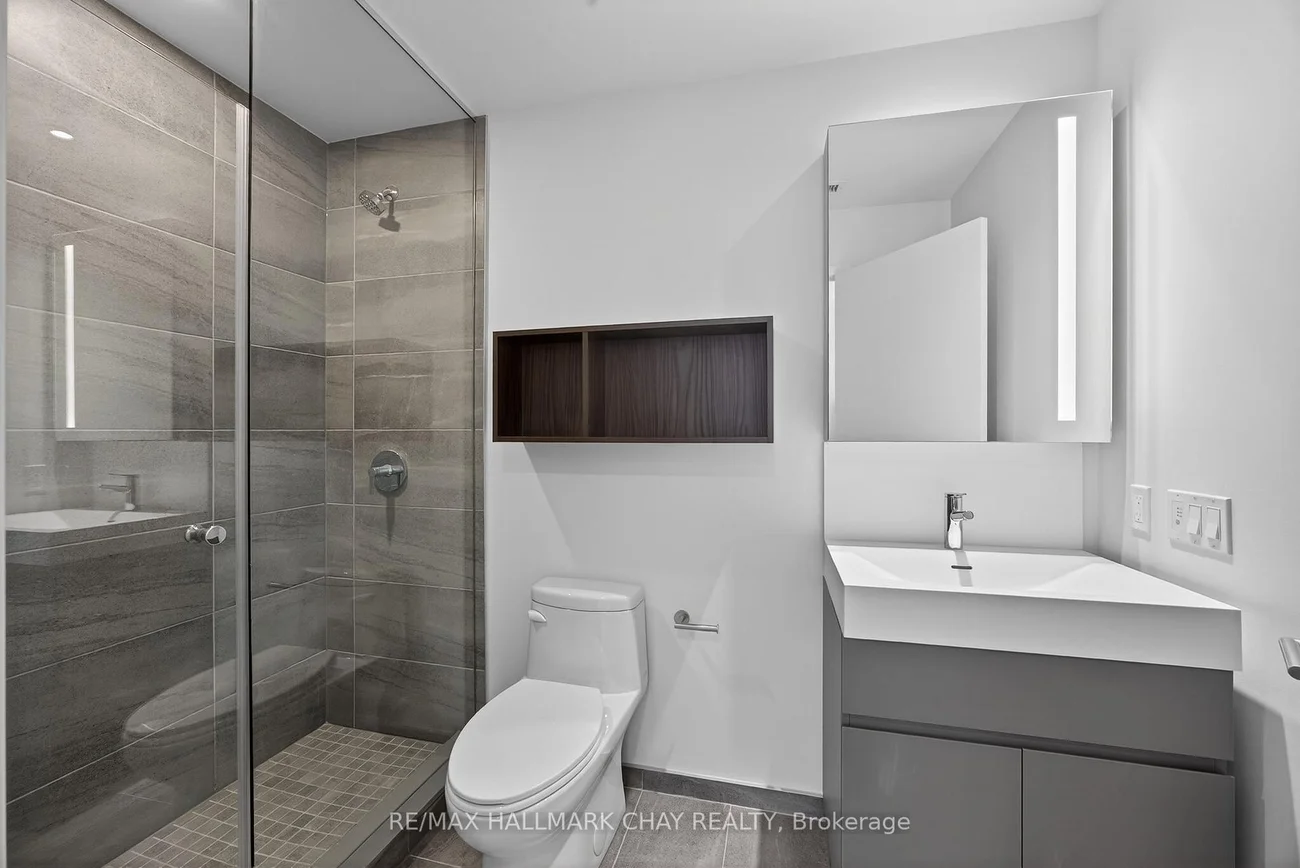 Experience Luxury Lakeside Living At Debut Waterfront Residences In Downtown Barrie. This Beautiful 2-Bedroom, 2-Bath Suite Offers 735 Sq. Ft. Of Modern, Open-Concept Living Featuring 9-Ft Ceilings, Floor-To-Ceiling Windows, And West-Facing Views Showcasing Unforgettable Sunsets. The Brand New Kitchen Includes Custom Modern Cabinetry, Quartz Countertops & Stainless Steel Appliances. The Living Area Features Vinyl Flooring And Expansive Floor-To-Ceiling Windows With Stunning City & Landscaping Views. Both Bathrooms Offer Walk-In Glass Showers With Sleek, Contemporary Finishes. Step Out Onto Your Private Balcony To Enjoy Beautiful Views And Breathtaking Sunsets. Exceptional Building Amenities Include An Infinity Plunge Pool, Fitness & Yoga Studios, Private Resident Lounges & 24-Hour Concierge Service. Ideally Located Steps From Downtown Barrie's Top Restaurants, Waterfront Trails, Beaches, & Lake Simcoe, With Easy Access To Highway 400, GO Transit, RVH & Georgian College.