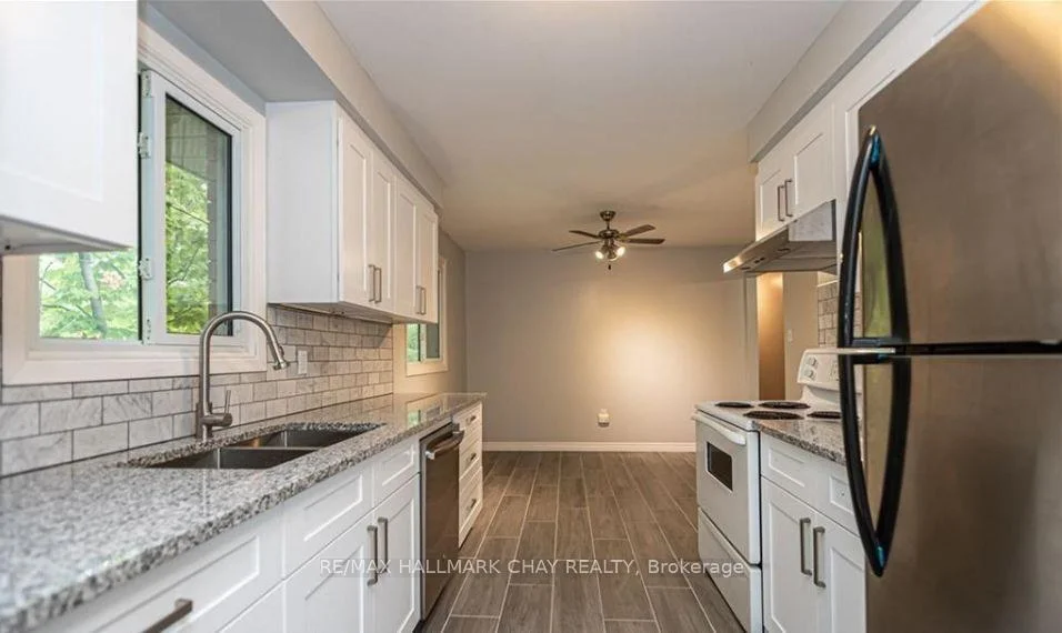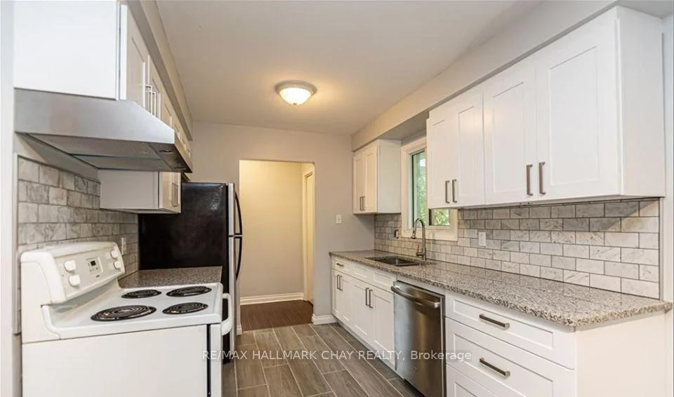 This pristine 3-bedroom, 1-bath main floor rental offers comfort, style, and convenience in a fantastic location. Beautifully updated throughout, the home features a spacious living room and a modern eat-in kitchen complete with granite countertops, updated cabinetry, tile backsplash, and a generous dining area. Freshly painted and move-in ready, the unit is bright and welcoming. Enjoy access to a shared backyard-perfect for relaxing or entertaining. Additional highlights include shared laundry and ample parking with space for up to 3 vehicles, including a garage. Ideally situated within walking distance to schools and transit, and just minutes from downtown and Bayfield Street amenities, this home is perfect for those seeking both comfort and convenience.$2200.00/month + 70% of utilities (gas/hydro - water included).