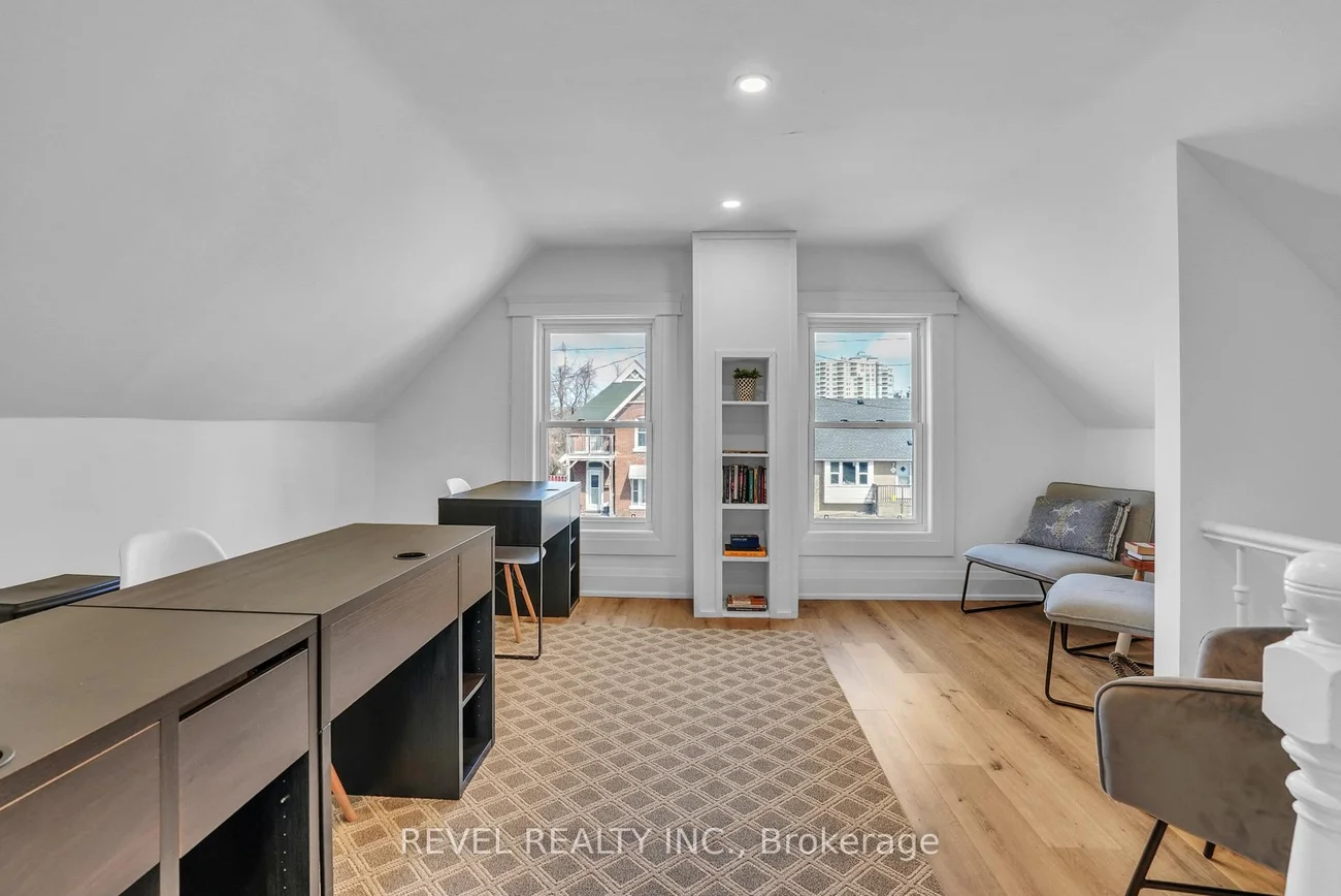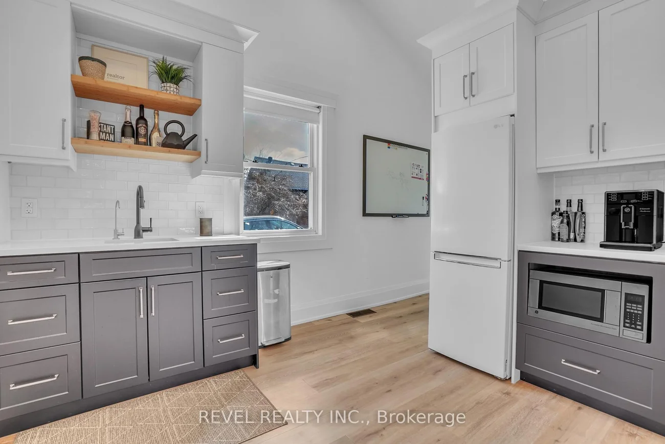 Exceptional Commercial Space | Designed to Impress, Situated to Succeed. Welcome to a beautifully appointed commercial property that blends functionality with sophisticated design, located in a highly sought-after location that ensures maximum visibility & convenience. Located just steps away from Barrie's waterfront, the flexible C4 zoning allows for several potential uses including: Office, Retail, Service, Veterinary, etc. From the moment you arrive, the professionally landscaped grounds, complete with elegant hardscaping & vibrant plantings, set the tone for this standout space. The attractive front signage offers excellent curb appeal & can be easily customized to reflect your brands identity. Step inside through the new front & side entrances (2021) and youre greeted by a stunning large conference room and welcoming seating area, anchored by a modern electric fireplace and a sleek dry bar/coffee stationthe perfect environment to host clients and team meetings. The main level also features two private offices, a well-equipped kitchen area, 1.5 tastefully updated bathrooms, and a secondary meeting area and waiting room, all adorned with durable laminate flooring and tile in the bathroomsa seamless blend of style and practicality. Upstairs, discover an airy, open-concept workspace designed to inspire productivity, complete with another private office featuring four custom-built workstations. Every detail speaks to quality, from the upgraded light fixtures and tilework to the integrated stereo system and wiring for a full security setup. With 10 private parking spaces across two driveways, this property offers rare convenience for both staff and clients. Nearly all windows were replaced in 2021, maximizing natural light and energy efficiency. Whether youre establishing a new business or relocating to a more refined space, this property offers an unbeatable combination of design-forward interiors and a premium locationtruly a place where business can thrive.