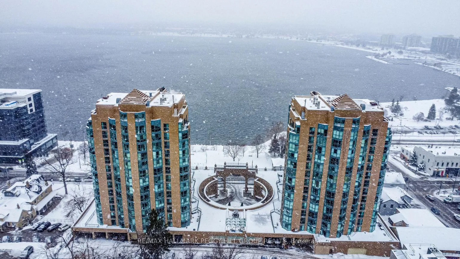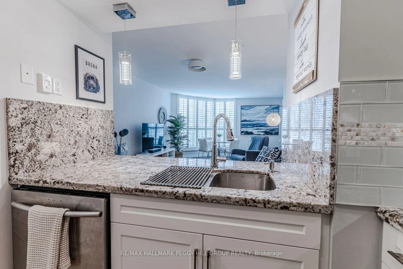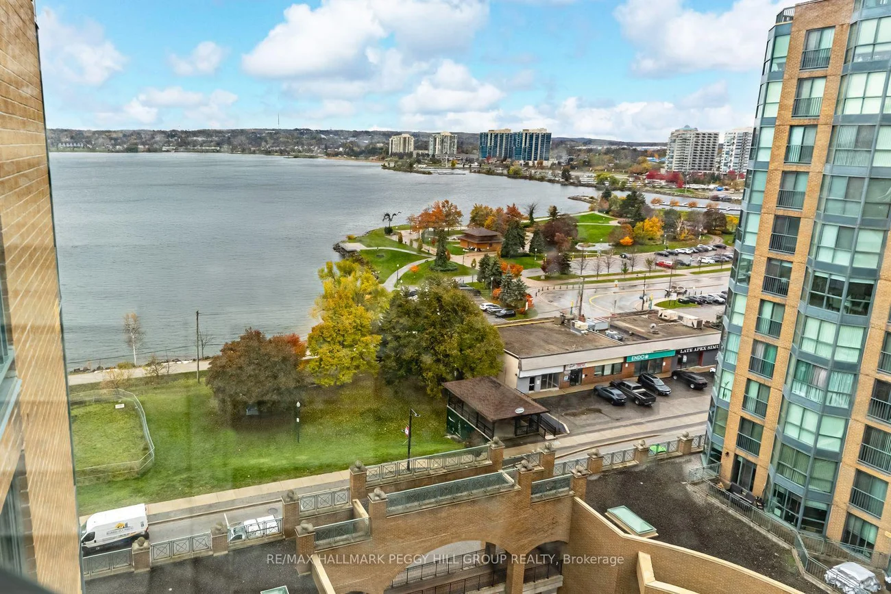 STYLISHLY RENOVATED 1 BED + DEN CONDO WITH STUNNING VIEWS OF KEMPENFELT BAY, MODERN UPGRADES & PREMIUM AMENITIES! Enjoy breathtaking water views the moment you walk in at this beautifully renovated condo in the renowned Bayshore Landing, where modern comfort meets the serenity of Kempenfelt Bay and the vibrance of downtown Barrie. Natural light pours through oversized corner windows, illuminating a bright open-concept layout designed for both relaxation and entertaining. The contemporary kitchen showcases sleek cabinetry, built-in appliances, and custom pull-outs, opening effortlessly into the spacious living and dining areas where expansive water views set a stunning backdrop. The inviting bedroom features a custom closet by Closets by Design, while the versatile den provides an ideal spot for a home office or reading nook. A stylishly updated 4-piece bathroom boasts refined finishes, premium fixtures, and a Toto toilet, with a convenient laundry room featuring a full-size washer and dryer. Every corner exudes thoughtful design with smooth ceilings, freshly painted walls, upgraded lighting with dimmers, modern doors and hardware, California shutters, and custom built-ins that add function and flair. Step beyond your suite to enjoy resort-style amenities, including concierge and security, an indoor pool, sauna, fitness and games rooms, party and recreation spaces, and an on-site car wash. Perfectly positioned in the heart of the City Centre, this residence places you just steps from vibrant restaurants, cafes, boutiques, event spaces, beaches, and lakeside trails - offering the best of city living with the serenity of Kempenfelt Bay right outside your window. With a desirable first-level parking space and a spacious private storage locker, this exceptional #HomeToStay combines everyday luxury with the ease of low-maintenance living near Barrie's sparkling waterfront.