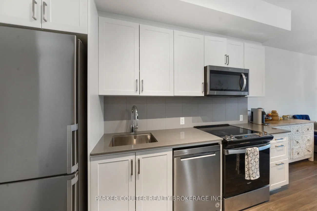 This stylish 1 bedroom + den condo is located on the ground floor of a high-quality condo building known for its modern design and solid construction, no need to worry about elevators or stairs. Inside, the open-concept layout brings the kitchen, living, and dining areas together for a bright and roomy feel, great for relaxing or having guests over. Step out onto your balcony through floor-to-ceiling glass doors. The main bedroom is a cozy escape, and the den gives you extra flexibility, perfect as a home office or guest space. The building offers fantastic amenities to make everyday living even better, enjoy a rooftop terrace with lounge areas and barbecues, a party room for hosting, a fully equipped gym, and concierge service. You're just minutes from restaurants, shopping and grocery options, plus you'll have easy access to the GO Train station. With a mix of comfort, convenience, and style, this condo is a great fit for modern city living.