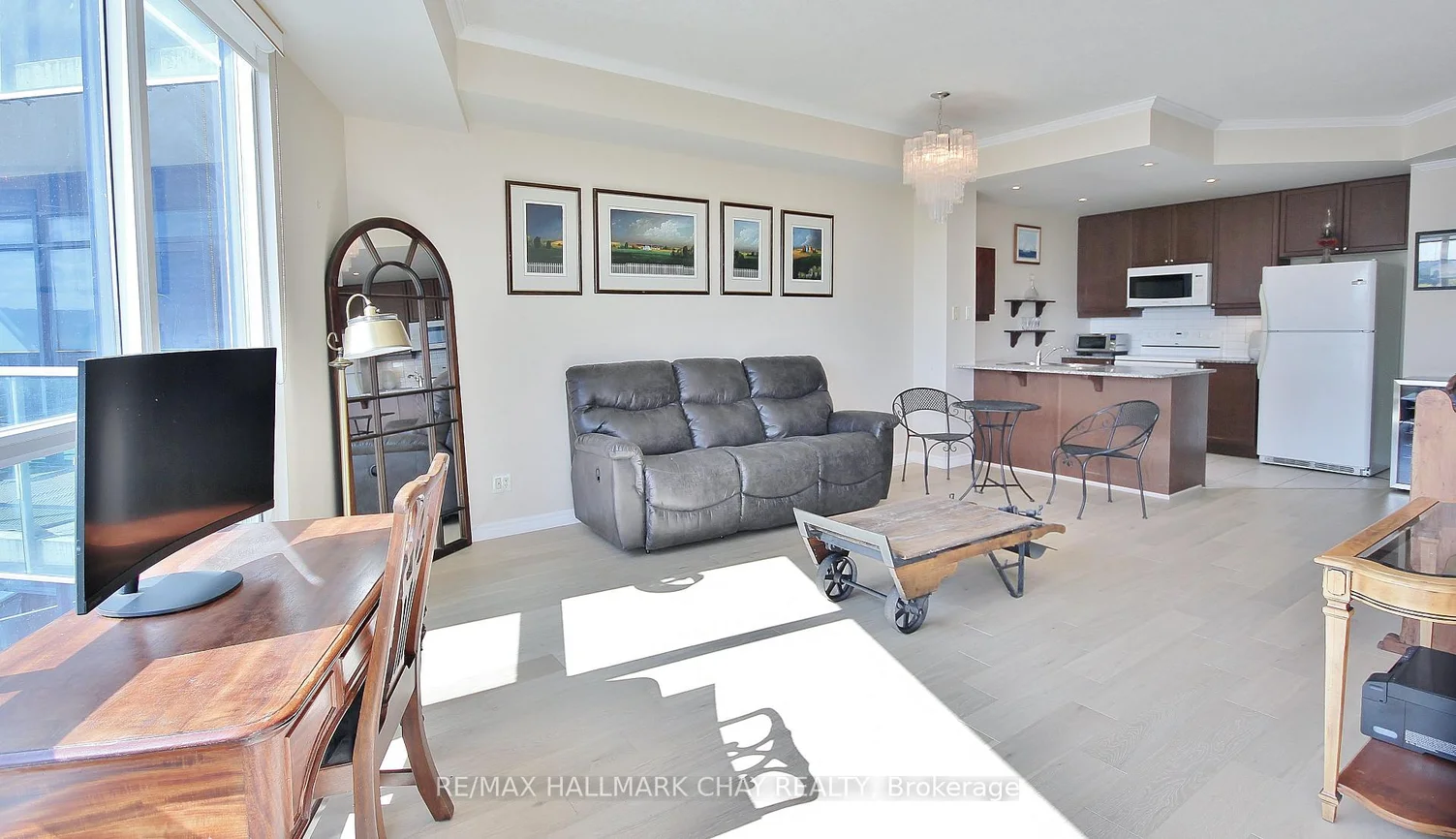 Welcome to Nautica Condos in Barrie. This one bedroom has stunning South-East facing view. Your balcony overlooks Centennial/Beach Park and the blue waters of Kempenfelt Bay. Plenty of room to entertain guests after a day at the beach. Residents of Nautica Condos will also enjoy social gatherings, game nights. Building amenities include, indoor pool, hot-tub, sauna, fitness center, party rooms, visitor suites & parking. Perfect location/lifestyle for the busy professional or one looking for care free living. Welcome aboard
