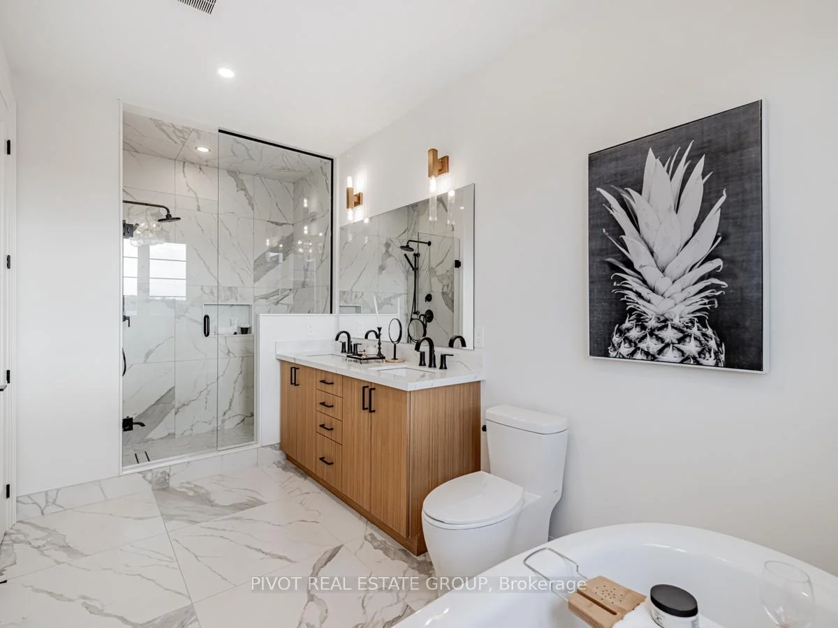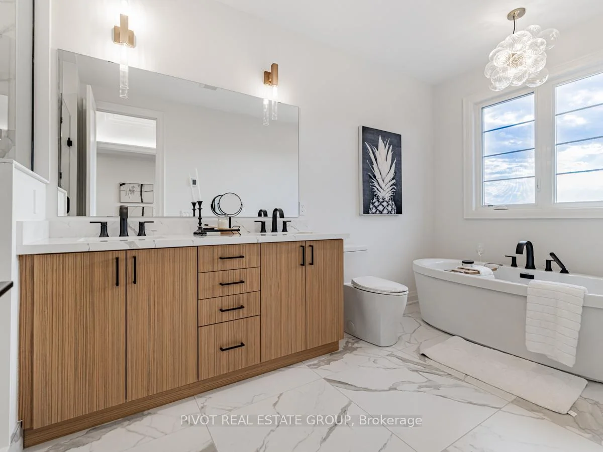 Brand New "Merlot" model by Sundance Homes with full Tarion Warranty. Smooth ceilings, stone countertops and solid surface flooring throughout. Oak staircases with black metal pickets. Chef's kitchen with stone countertop with matching backsplash, gas stove with pot filler, wall microwave, integrated hood fan, drawer dishwasher, and refrigerator. Main floor office with ensuite powder room. Great room with beam accent ceiling and gas fireplace. 4 bedrooms on second floor. Primary bedroom with tray ceiling with cove lighting, private ensuite with free standing tub and glass shower. In Law Suite with ensuite and kitchenette above the garage. Taxes not yet assessed. Photos taken during prior staging.