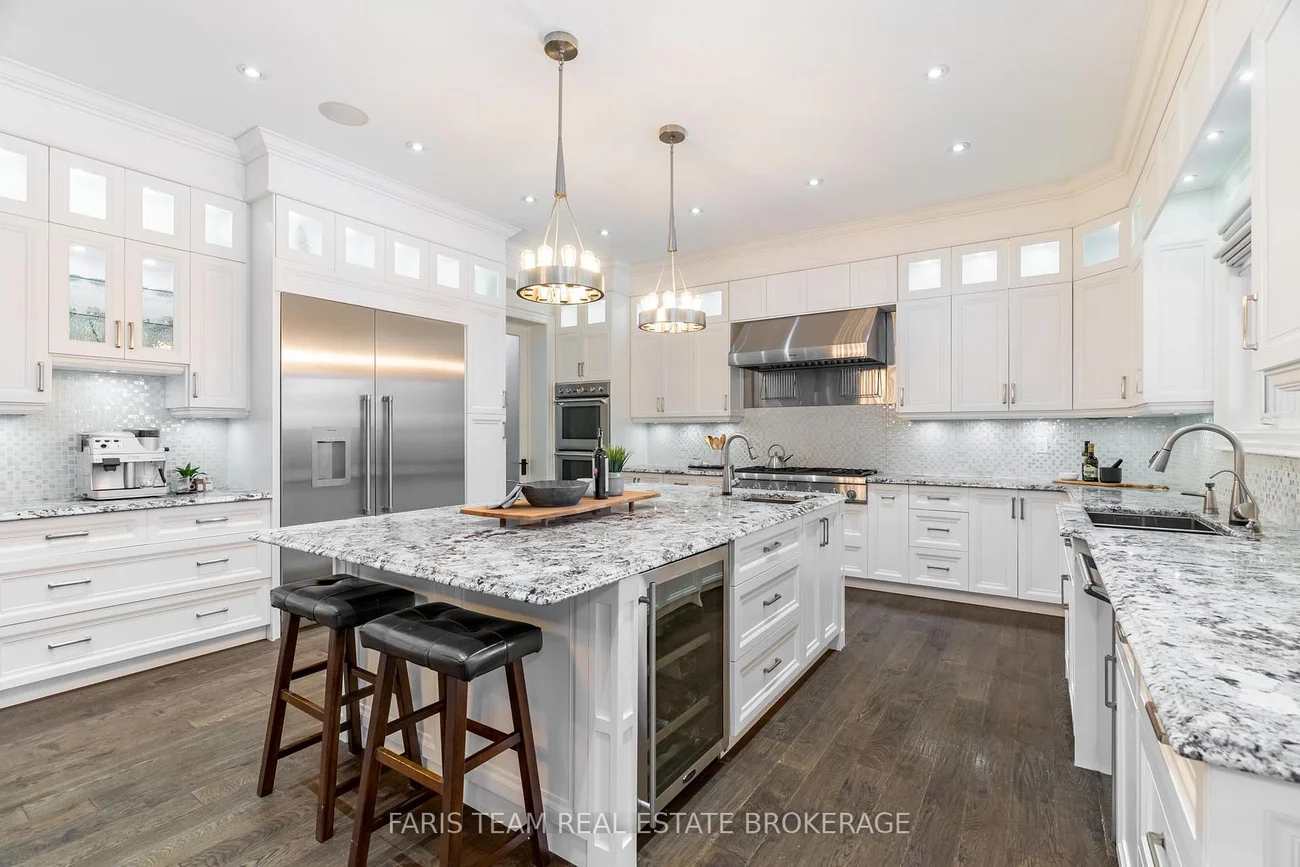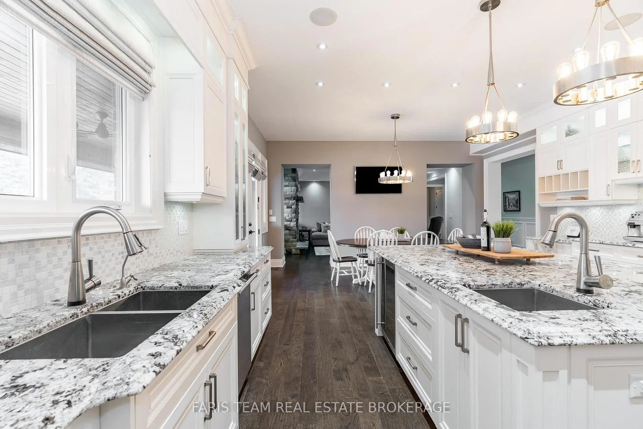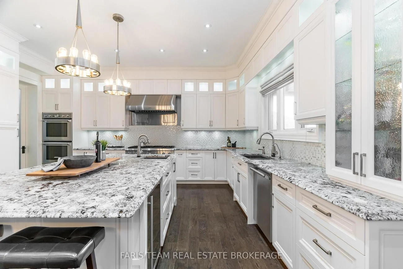 Top 5 Reasons You Will Love This Home: 1) Executive, custom-built bungaloft in an exclusive estate neighbourhood, perfectly positioned and backing onto greenspace for ultimate privacy 2) Exquisite attention to detail and design with coffered ceilings, wainscoting throughout, and high-end finishes at every corner including a Sonos speaker system running throughout the home including the exterior as well 3) Extensive landscaping featuring a sparkling inground saltwater pool with a new liner, a convenient outdoor bathroom, a covered concrete porch, an inground sprinkler system, an e collar dog fence, and an abundance of tranquility for outdoor relaxation or entertaining 4) Opulent primary suite boasting two oversized closets and a spa-like ensuite, thoughtfully designed for indulgent relaxation 5) Loft showcases a media room, while the impressive seven-car garage features a lift, offering endless possibilities for storage, entertainment, or a dream workspace. 4,578 sq.ft. plus an unfinished basement.