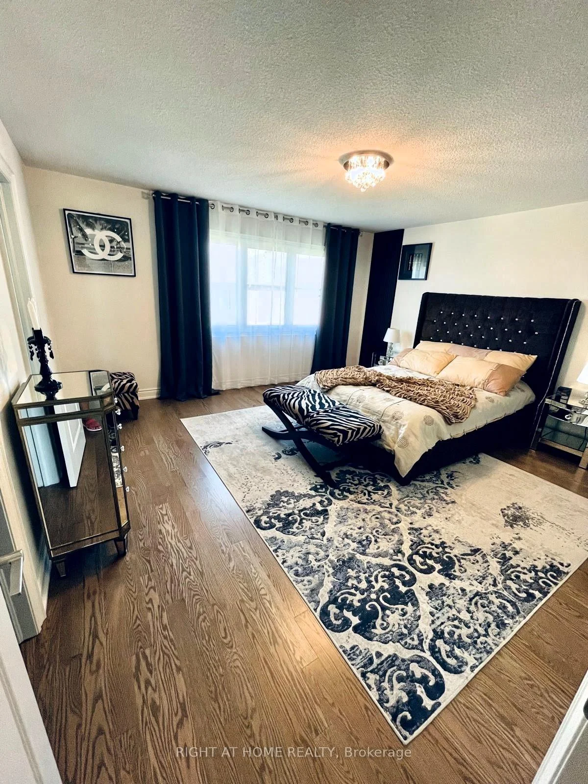 Gorgeous Large Luxury Home 4 bedrooms. Hard wood floors on main and 2-nd floors. Tiled foyer. Zebra blinds on main and 2-nd floors. Lots Of Upgrades!!! Fireplace!!! Spacious Primary bedroom with W/I closet, 5-pc ensuite washroom with quartz countertop. Kitchen with extended island and quartz countertops. Main floor - 9 ft ceiling. Direct access to the main floor from garage. Crystal chandeliers. Central A/C. Minutes to Hwy 400. Steps to parks, close to supermarkets and all amenities