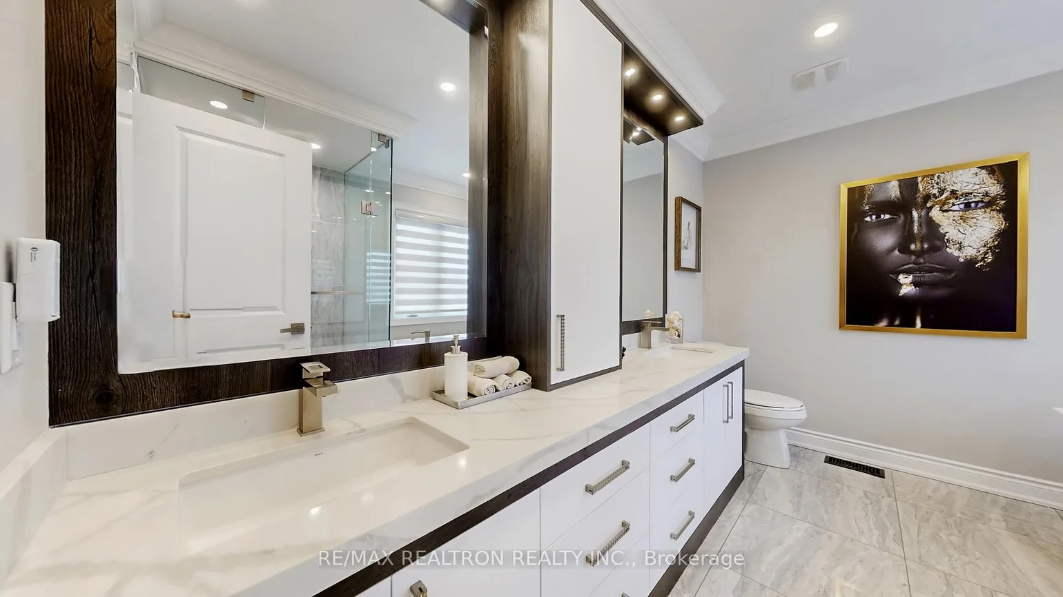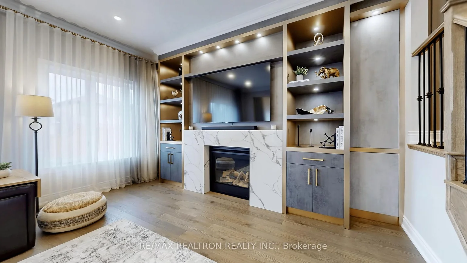 Welcome to this stunning, fully upgraded detached residence offering refined modern living in a highly desirable family-friendly neighbourhood. Only 2 years new, this impressive home showcases exceptional curb appeal with a timeless all-brick exterior, black-framed windows, interlocked walkway, epoxy-finished porch and garage, and elegant double French entry doors. Step inside to a beautifully designed interior where quality craftsmanship & custom finishes are evident throughout. The bright open-concept main floor features wide-plank hardwood flooring, smooth ceilings, extensive pot lighting, & striking iron picket railings. A spectacular custom living room feature wall with built-in cabinetry & a sleek gas fireplace creates a warm yet sophisticated focal point for everyday living & entertaining. The designer kitchen is truly the heart of the home, showcasing custom cabinetry with elegant gold accents, quartz countertops & backsplash, premium Samsung appliances including built-in oven & microwave, induction cooktop, stainless steel fridge & dishwasher, & an oversized waterfall island with breakfast bar seating beneath stylish pendant lighting. The space flows seamlessly into the dining & living areas, filled with natural light from expansive windows with custom window coverings. Upstairs offers 4 spacious bedrooms & 4 bathrooms, including 2 private ensuites. The primary retreat features a large walk-in closet & a luxurious spa-inspired ensuite with deep soaker tub, glass-enclosed shower, & dual vanity w/premium finishes. Custom built-in closets & millwork throughout, and 2nd floor laundry with Samsung stacked washer & dryer. Enjoy the private fenced backyard with interlock patio and outdoor pot lights-perfect for relaxing or entertaining. Conveniently located close to parks, schools, shopping, and transit, with easy access to major highways. A truly move-in-ready home offering style, comfort, and exceptional upgrades throughout.