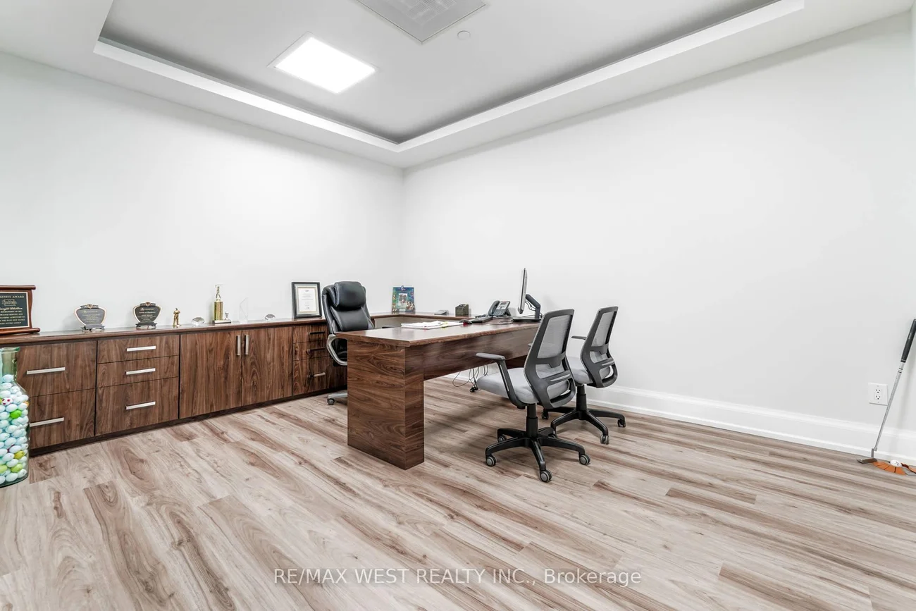 Beautiful contemporary-designed main-floor office space for lease. This is a private office offered within a shared professional workspace, ideal for accountants, lawyers, paralegals, insurance brokers, mortgage brokers, financial advisors, immigration consultants, real estate brokers, logistics companies, and other service-based professionals. The impressive lobby features 20-foot ceilings and a comfortable waiting area, creating a strong first impression for clients and visitors. Tenants have access to two furnished boardrooms, two kitchenettes, three washrooms including one accessible washroom, and shared common areas. Located in the Steeles and Torbram area of Brampton, this office space is situated in a highly accessible and well-connected business hub with excellent access to highways, and public transportation. The plaza provides plenty of parking for tenants and visitors, and the surrounding area offers a variety of restaurants and cafés for added convenience.