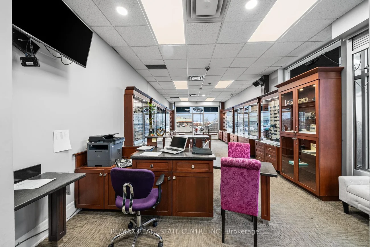 Fantastic Opportunity To Own Your Own Commercial Space And Launch Your Business! Turnkey Commercial Retail Unit For Sale In A High-Traffic Plaza With Excellent Exposure On Steeles Avenue, Near Airport Road And Goreway Drive. Located In A Dense Commercial And Industrial Area, This Approximately 1,100 Sq. Ft. Corner Unit Offers Outstanding Visibility And Steady Through-Traffic, Ideal For A Wide Range Of Retail Or Professional Uses. Currently Operating As An Optical Store, The Unit Features A Rear Office, Storage Room, Two-Piece Washroom, And Convenient Rear Entrance. Ample Plaza Parking And Easy Customer Access. Excellent Opportunity For Users Or Investors, Suitable For An Immigration Office, Law Office, Mortgage Brokerage, Real Estate Brokerage, Or Church Use. Strategically Positioned With Quick Access To Highways 410, 407, And 427, This Is A Rare Opportunity To Own In A Vibrant, High-Demand Commercial Corridor.