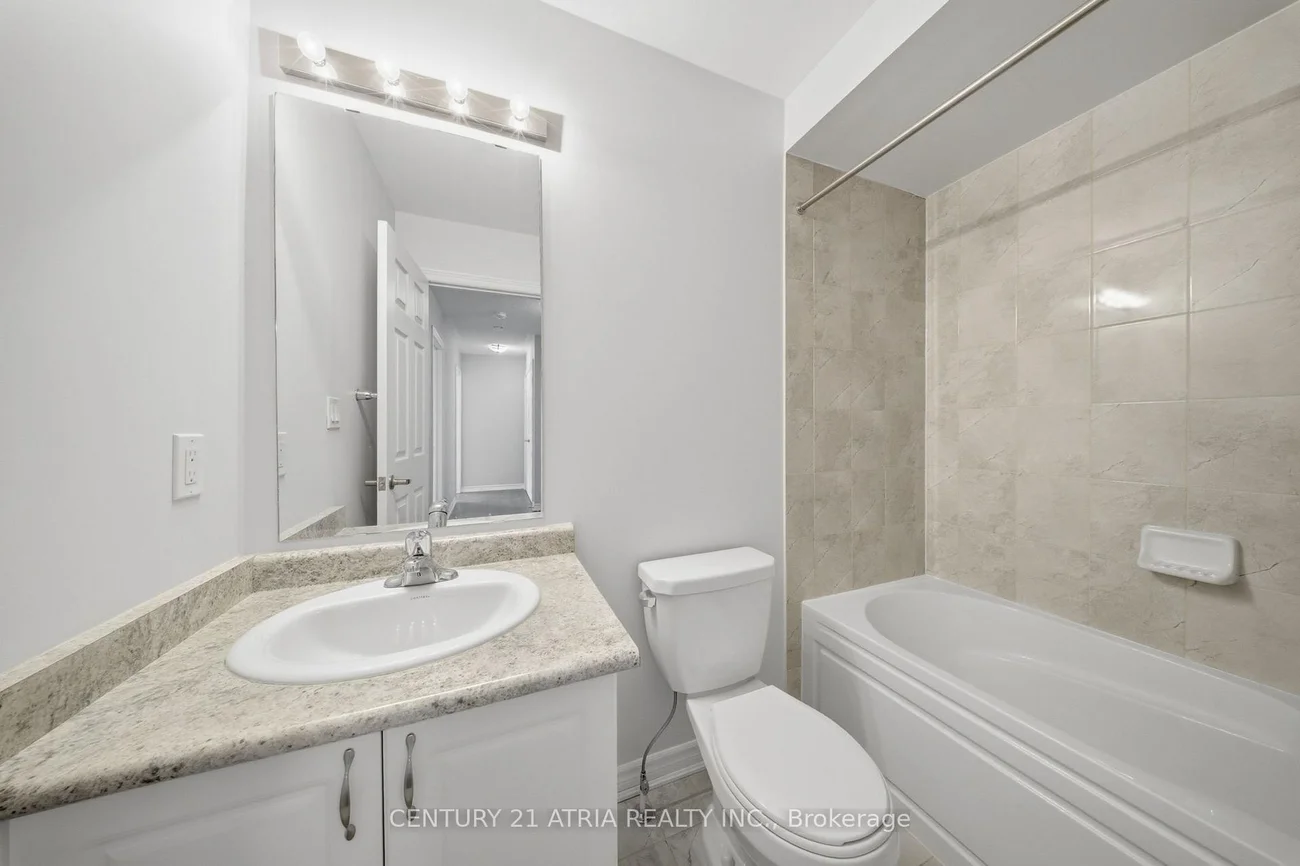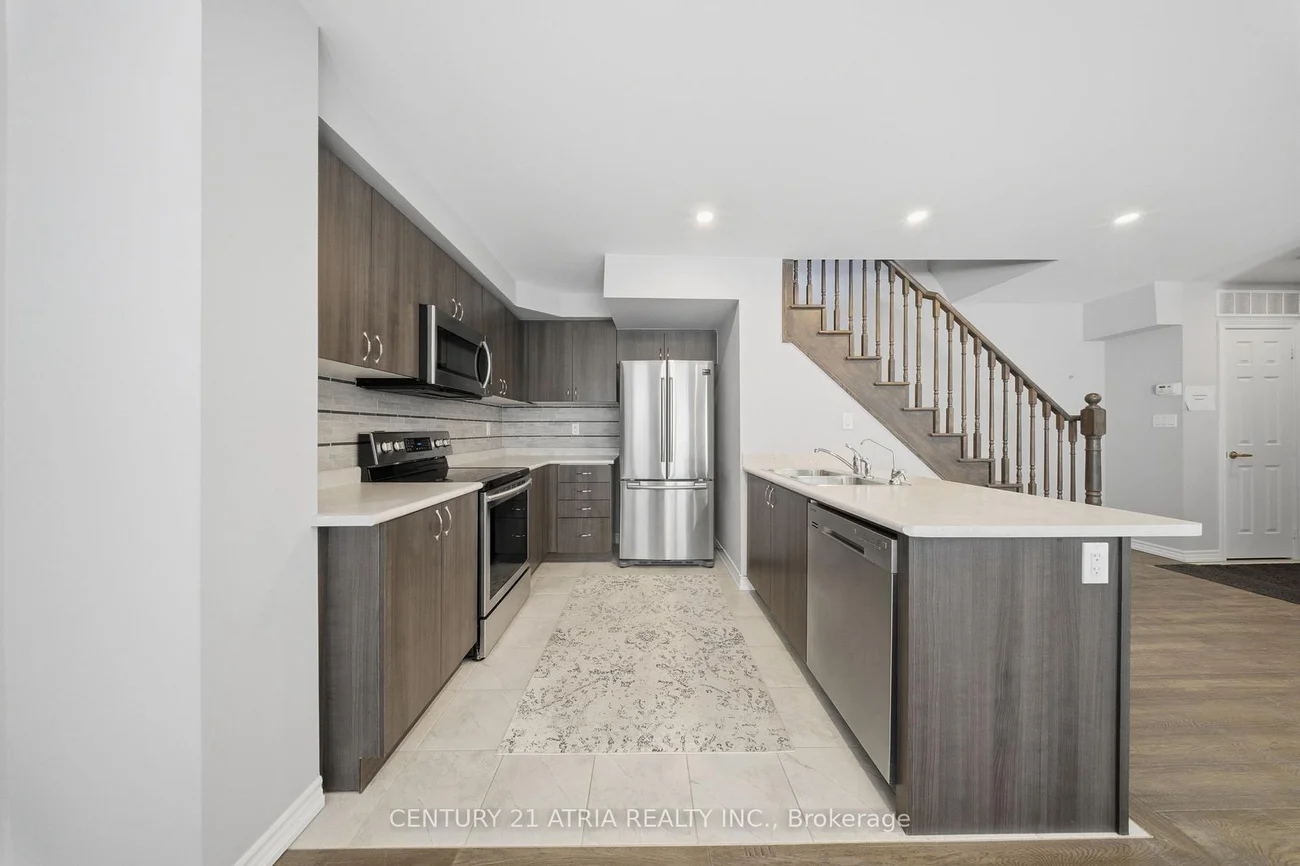 Welcome to 200 Veterans Drive. Step into modern comfort with this beautifully designed 3-bedroom,3-bathroom stacked townhouse, offering the perfect blend of functionality and style. This spacious home features an open-concept main floor with a bright living and dining area ideal for both relaxing and entertaining. Hardwood floor thru out, brand new hardwood on 2nd floor. Kitchen Backsplash, Water filtration unit in kitchen, Powder Room Vanity, smooth ceiling with Pot lights and elegant oak stairs. This home also includes private parking for 2 vehicles 1 in Garage and 1 covered spot. The contemporary kitchen is complete with sleek cabinetry, stainless steel appliances, and a large island with breakfast eating. Offering three generously sized bedrooms, including a primary suite with a private 4pc ensuite, providing the perfect retreat. Two additional bedrooms & full bathrooms make this home ideal for families, professionals, or investors. Enjoy the ease of townhouse living with a private balcony, in-unit laundry, and dedicated parking. Located just minutes from Mount Pleasant GO Station, schools, parks, shopping, and transit, this home offers unparalleled convenience for today's lifestyle!