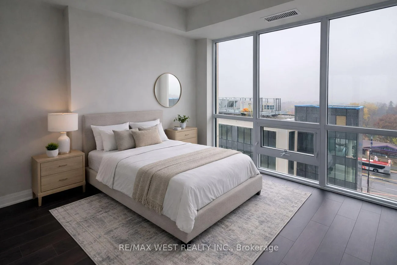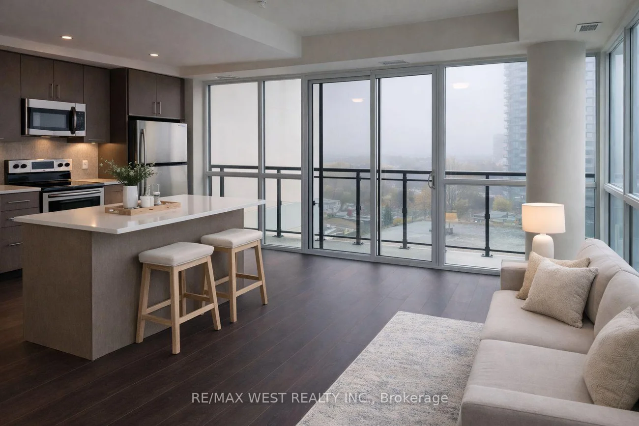 Welcome to this stunning corner-unit condo at Symphony Condominiums, offering a spacious and sun-filled 2-bedroom, 2-bathroom layout with soaring ceilings and expansive floor-to-ceiling windows. Thoughtfully designed with modern pot lights and sleek laminate flooring throughout, this open-concept home is ideal for both everyday living and entertaining. The primary bedroom features a walk-in closet and a private ensuite for added comfort. Step out onto the balcony and enjoy breathtaking southwest views and beautiful natural light all day long. Perfectly situated in the heart of downtown Brampton, just steps to Peel Memorial Hospital, GO Station, shops, dining, parks, and vibrant community events. Residents enjoy premium amenities including a Fitness Centre, Party Room, and Children's Play Area. With a Walk Score of 80, daily errands are effortless, and access to schools, colleges, nightlife, farmers' markets, and festivals makes this an exceptional opportunity for urban living at its finest. Unit is virtually Staged