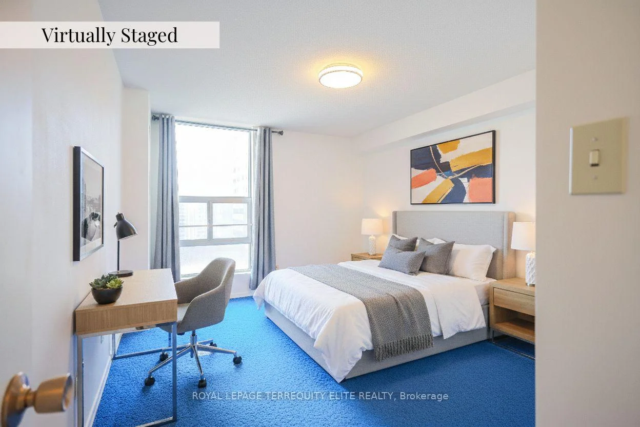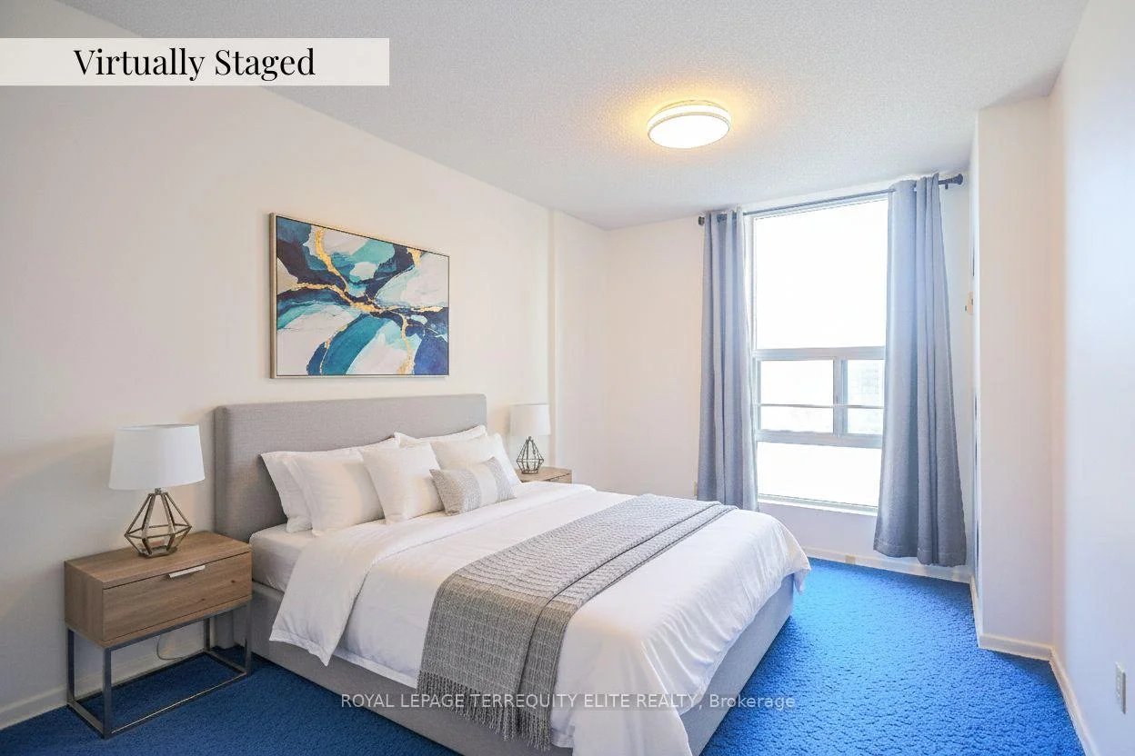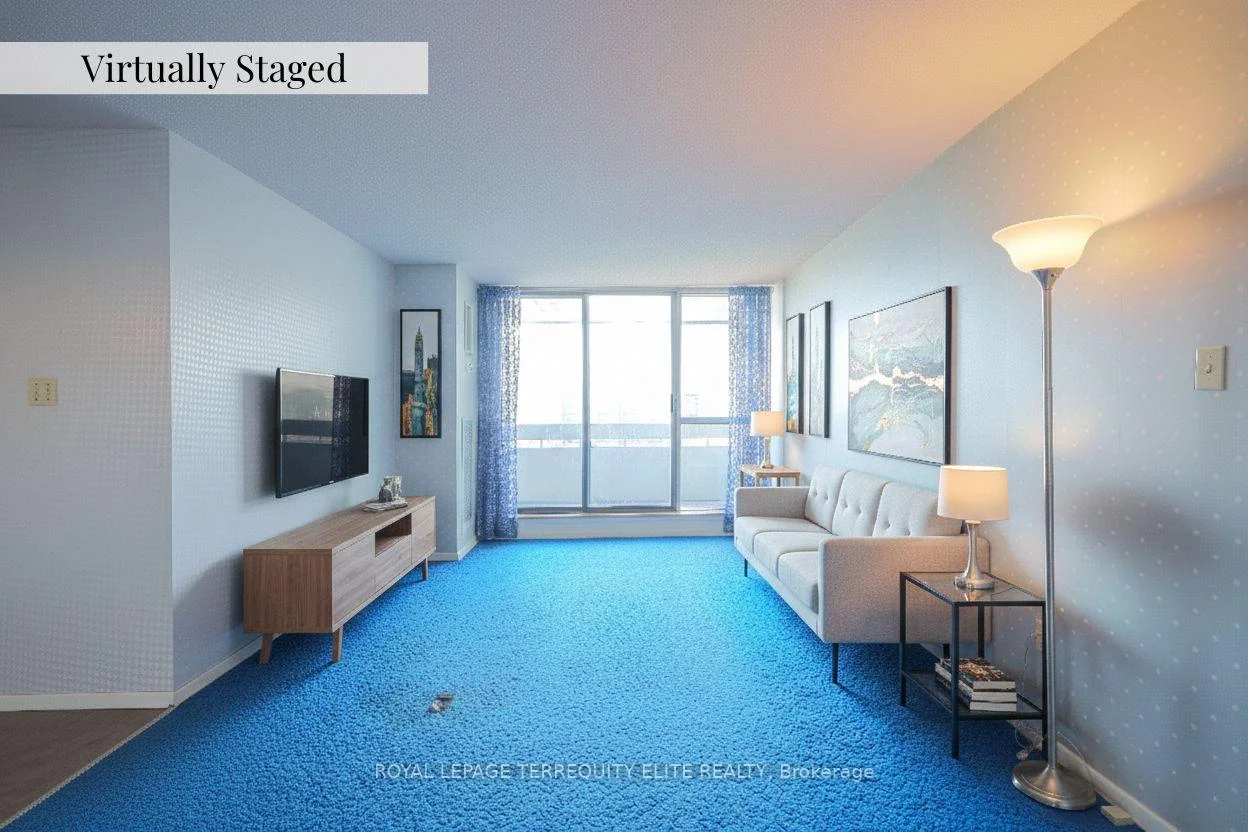 Elevate your vision in this bright and remarkably spacious 911 sq. ft. retreat, perfectly situated in the vibrant heart of Brampton. This 2-bedroom, 1-bathroom unit boasts an open-concept living and dining area bathed in natural light, leading to a large balcony with stunning, panoramic cityscape views. The functional layout features an eat-in kitchen and convenient ensuite storage, all of which has been virtually staged to showcase the incredible potential for a custom urban sanctuary. Enjoy a truly hassle-free lifestyle with maintenance fee that covers water, heat, TV, and internet. Residents benefit from premium building amenities including an outdoor pool, gym, games room, party room, alongside the convenience of underground parking (one parking spot included) and on the same floor laundry. Located just minutes from Chinguacousy Park, Bramalea City Centre, Highway 410 & 407, you are perfectly positioned near medical centers, schools, and transit hubs-including Zoom bus service and Bramalea GO Station. Plus, you're just steps away from a 24/7 Rabba Fine Foods, conveniently featuring an in-store Tim Hortons and Subway. This "must-see" unit combines spacious comfort with unparalleled local convenience and well managed community checking all the boxes. Great Bargain! Priced to Sell!