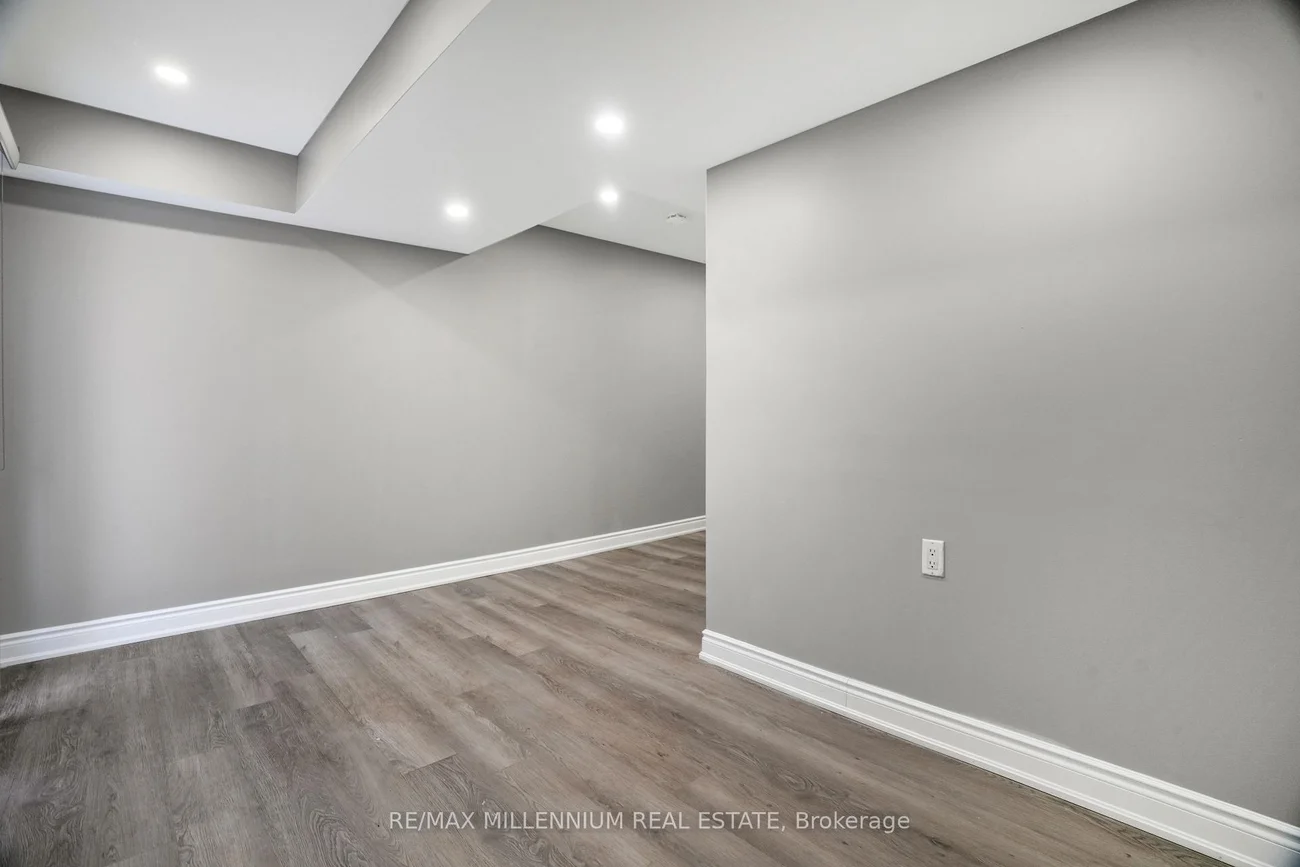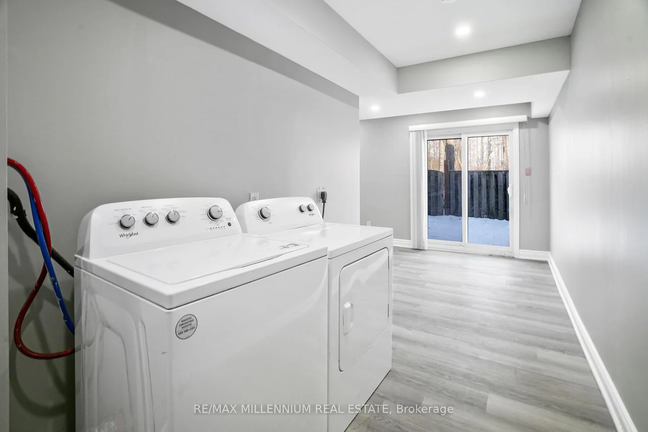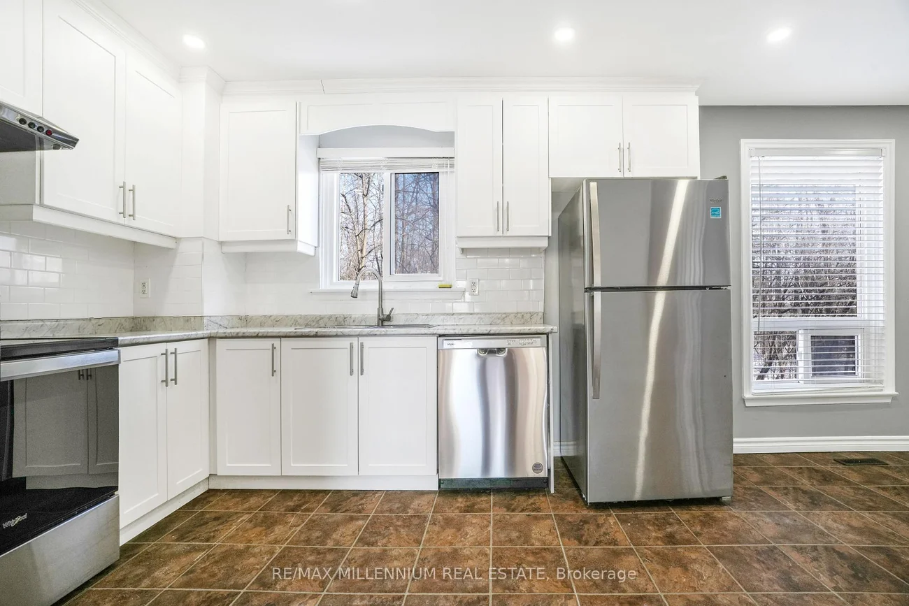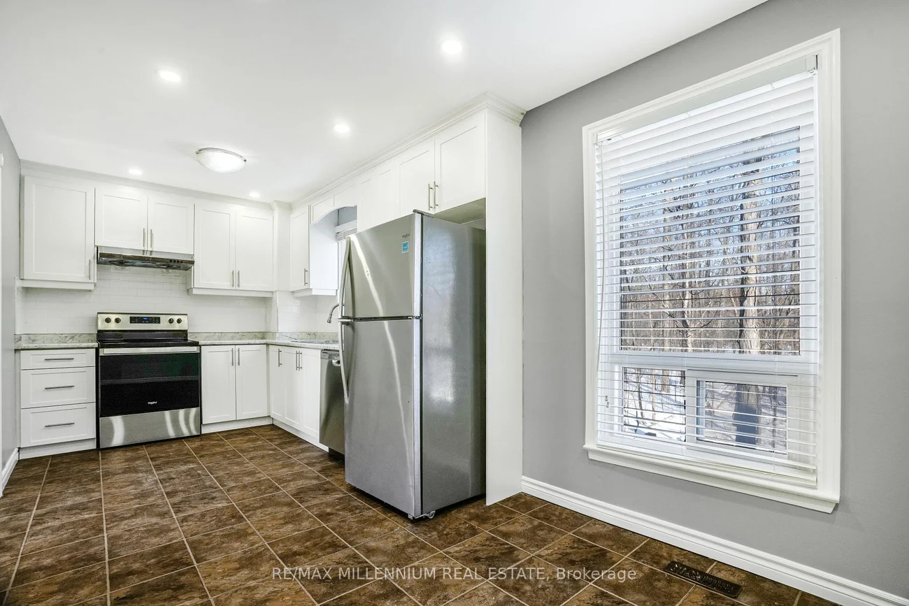 Fully renovated corner townhouse offering enhanced privacy and additional natural light due to its desirable end-unit location. Functional open-concept main floor with pot lights, combined living and dining area, and updated eat-in kitchen with modern cabinetry, backsplash, and stainless steel appliances. Well-sized bedrooms with ample closet space and upgraded bathrooms. Finished basement provides additional living space suitable for recreation or office use. No rear neighbors, providing added backyard privacy. Includes private driveway and garage. Located in a quiet, family-oriented complex close to schools, parks, shopping, transit, and major highways. Move-in ready.