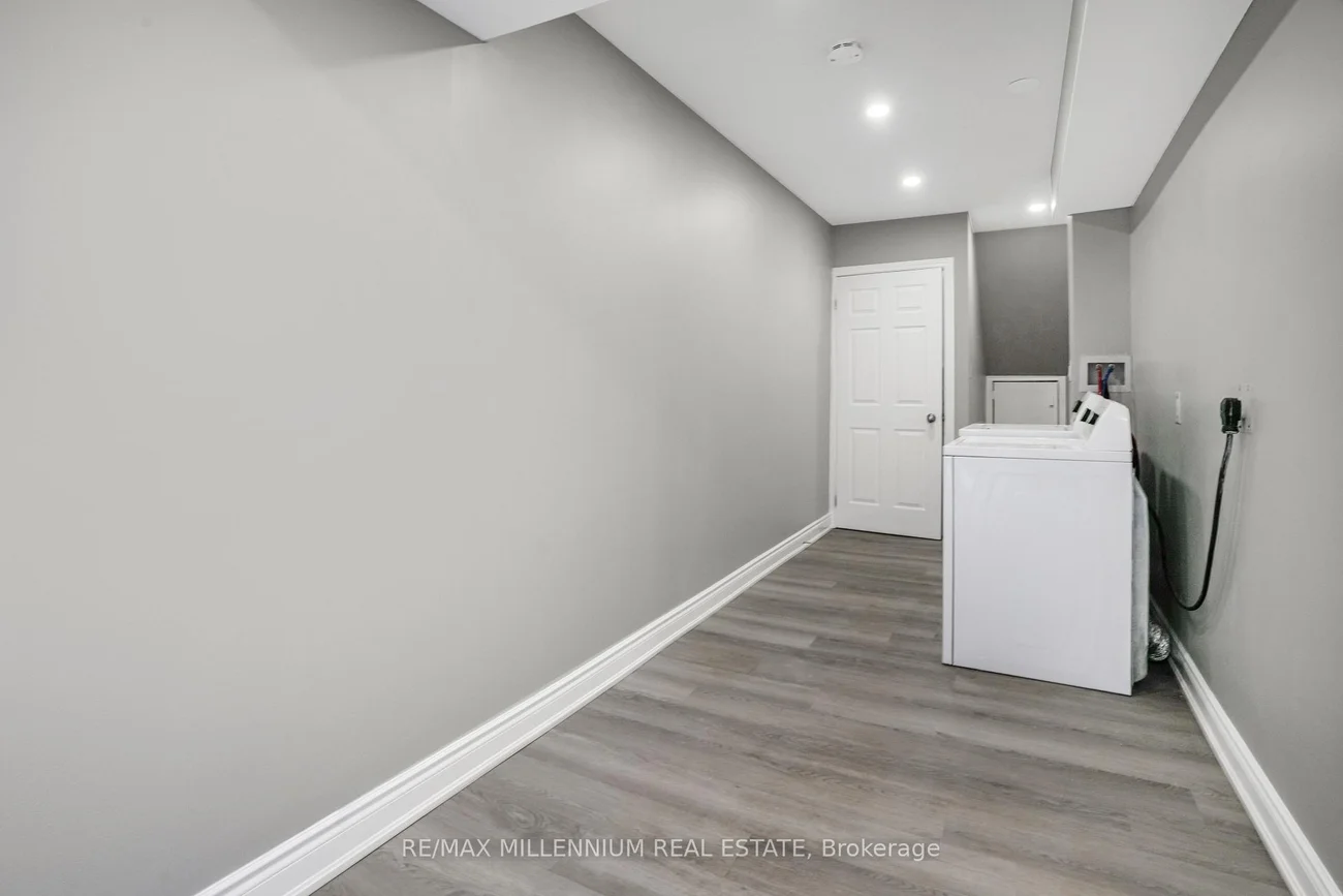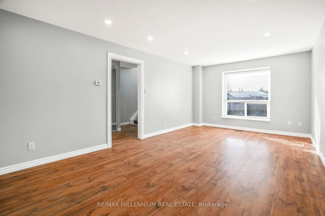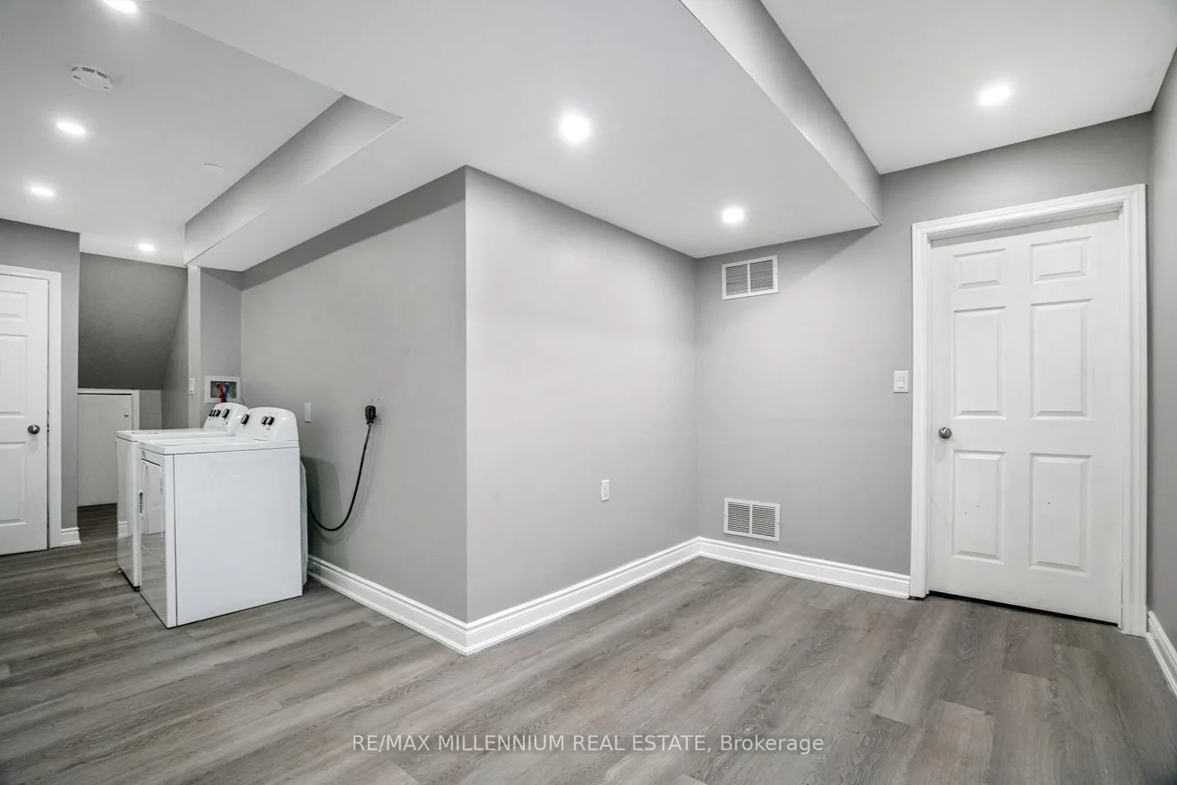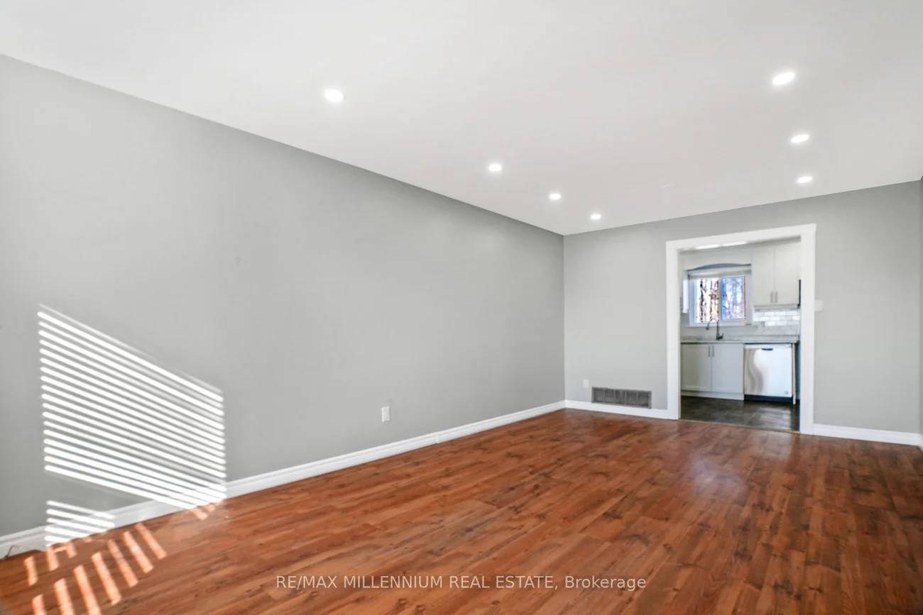 Fully renovated corner townhouse offering enhanced privacy and additional natural light due to its desirable end-unit location. Functional open-concept main floor with pot lights, combined living and dining area, and updated eat-in kitchen with modern cabinetry, backsplash, and stainless steel appliances. Well-sized bedrooms with ample closet space and upgraded bathrooms. Finished basement provides additional living space suitable for recreation or office use. No rear neighbors, providing added backyard privacy. Includes private driveway and garage. Located in a quiet, family-oriented complex close to schools, parks, shopping, transit, and major highways. Move-in ready.