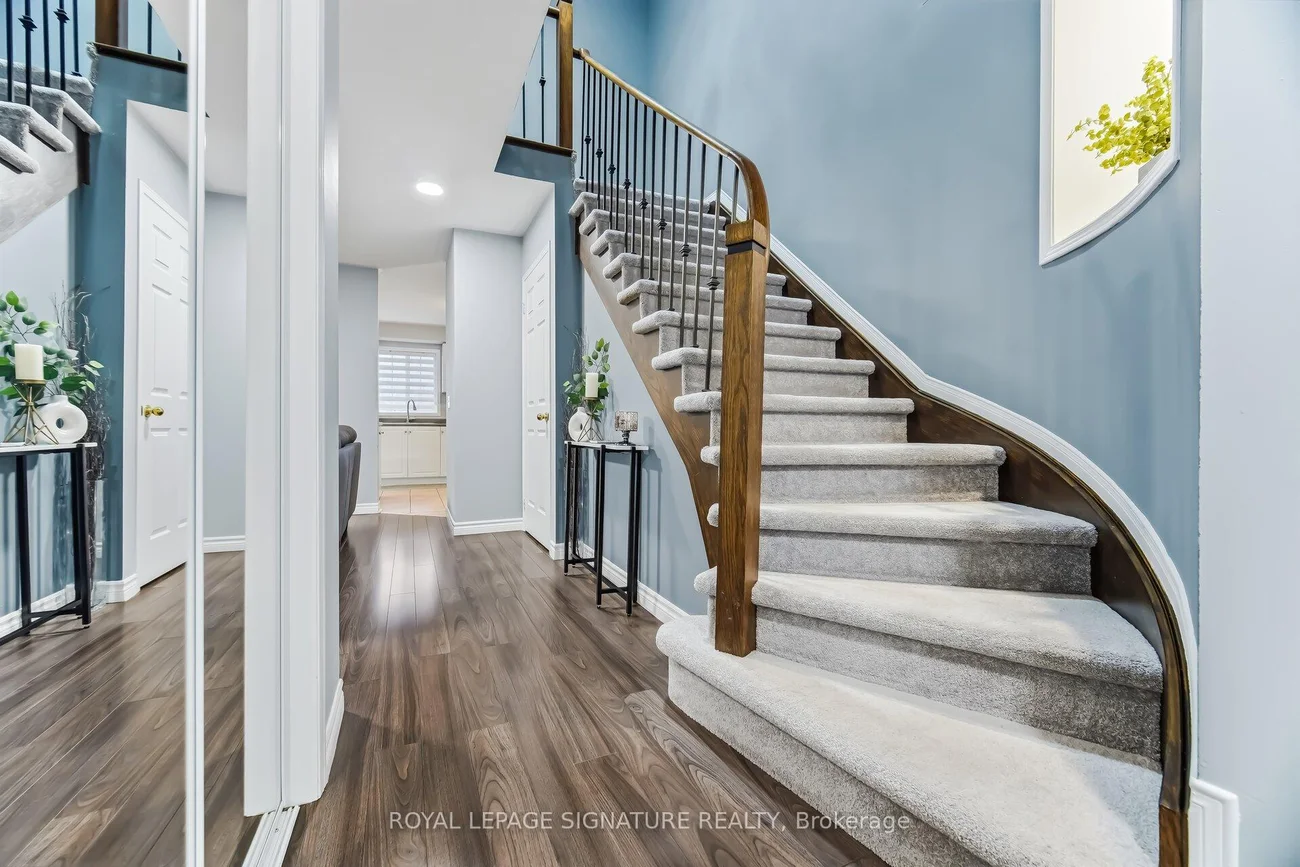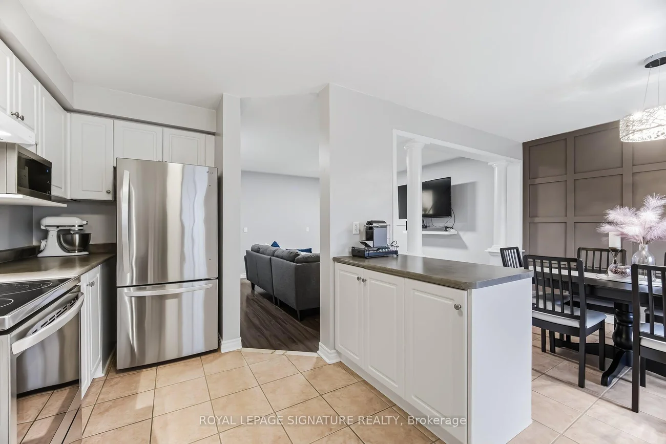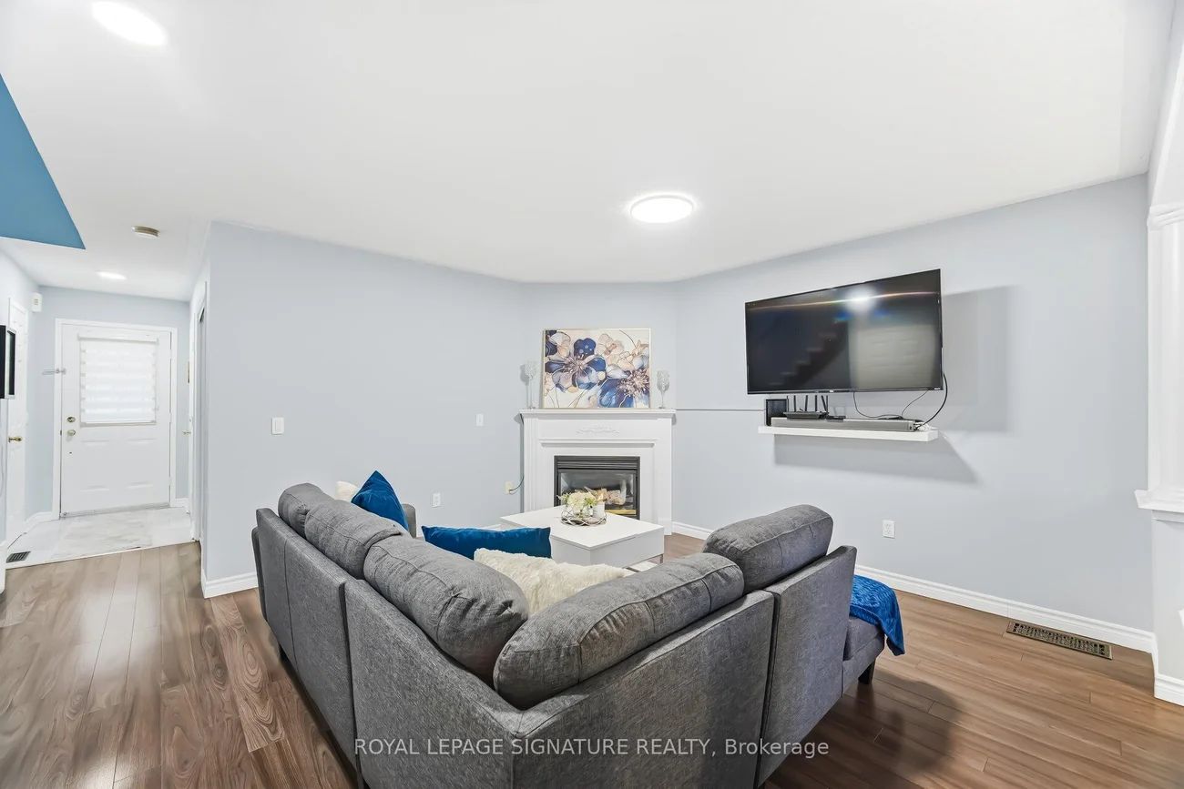 Low maintenance fee townhouse located in the desirable Fletcher's Creek Village community, backing onto a ravine and walking trail. This beautiful home features 3 spacious bedrooms and 3 bathrooms, including a professionally finished basement. The fenced backyard backs onto green space and a scenic walking trail, offering privacy and a peaceful setting. The kitchen is equipped with stainless steel appliances, a breakfast island, ample counter space and cabinetry. The living room features a cozy gas fireplace, and there is convenient access from the garage into the home. The elegant curved staircase with oak handrails and a built-in art niche adds character to the interior. Primary bedroom includes a walk-in closet and a 3-pieceensuite.The finished basement is ideal for entertaining, complete with a built-in glass-shelf bar, modern metal with glass stair railing, electric fireplace and plenty of built-in storage cupboards. Walking distance to groceries, public transit and other amenities.