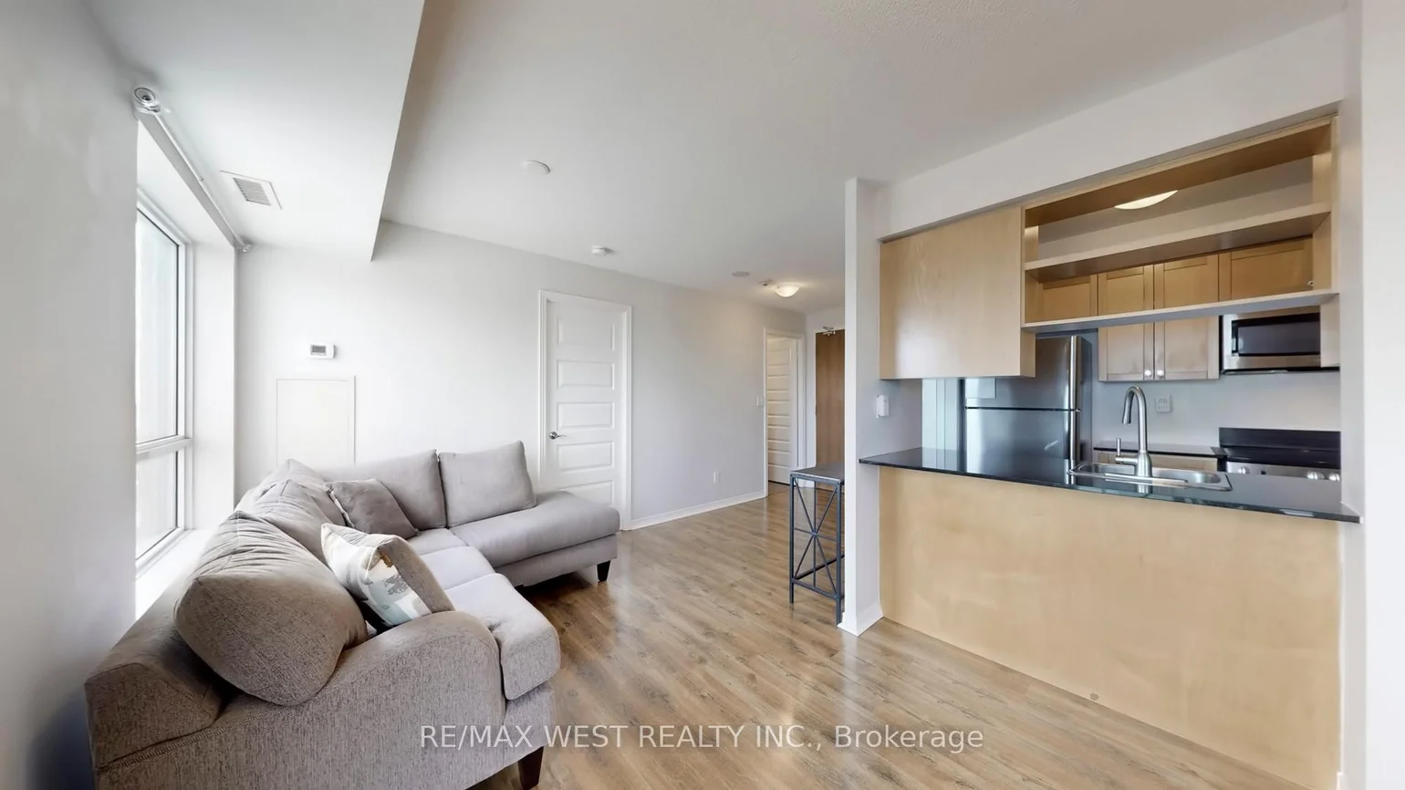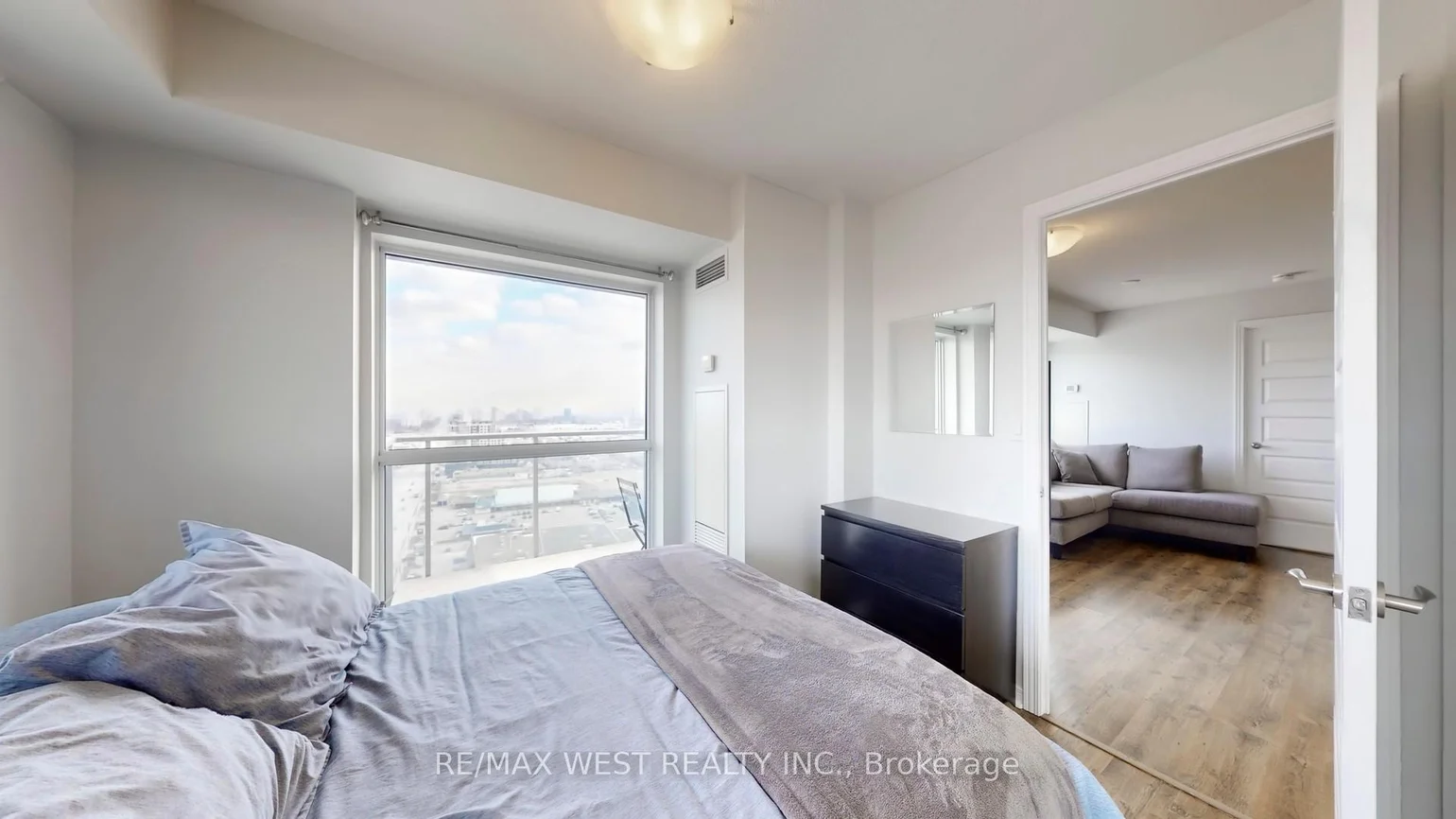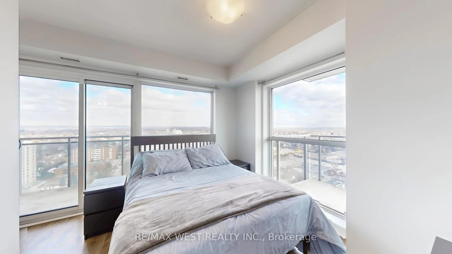See the skyline from every angle! Enjoy breathtaking, panoramic city views from not one, but two private and generously sized balconies-perfect for relaxing or entertaining. This bright corner unit offers a thoughtfully designed open-concept layout that maximizes both space and functionality. The spacious primary bedroom is a true retreat, featuring its own private balcony and a 4-piece ensuite. The second bedroom includes the added convenience of ensuite laundry. Gleaming laminate flooring runs throughout, complementing the modern aesthetic. Flooded with natural light from floor-to-ceiling windows, this space is warm and inviting. The kitchen is designed for both style and practicality, complete with a breakfast bar and a cutout that enhances the open, airy feel. This suite comes with a second full washroom, ideal for guests. Tucked away in a quiet area, this sun-filled, charming suite is perfectly suited for comfortable, happy living-an ideal choice for a starter home or savvy investment.