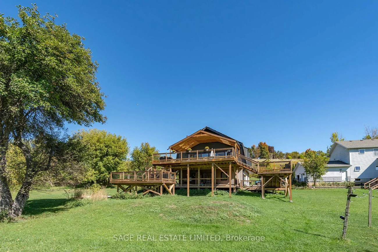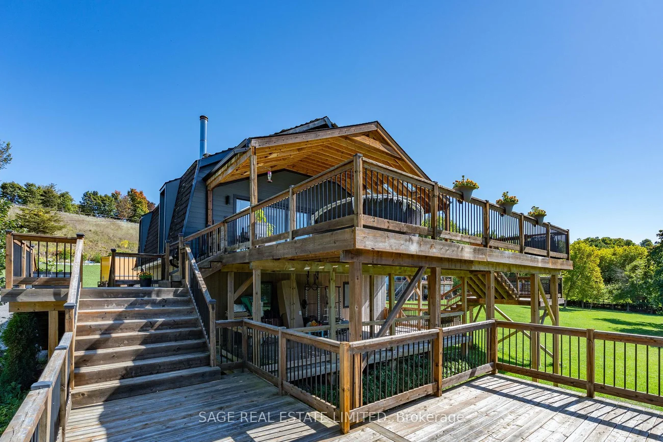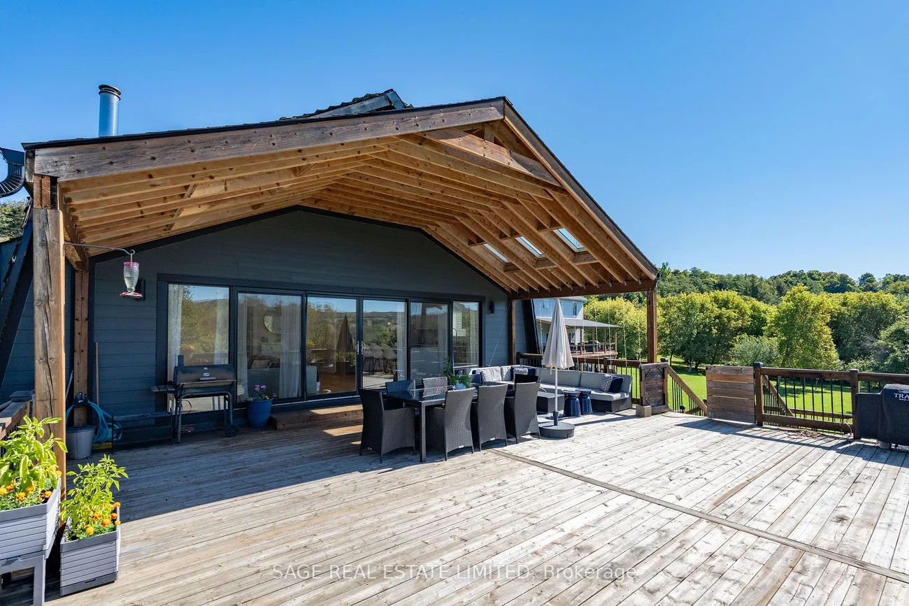 This isn't just a house, its a setting. Fully renovated and furnished, this modern farmhouse offers open, light-filled spaces with over 12 acres of land to enjoy. Floor-to-ceiling windows frame views of mature trees and open onto a sprawling multi-level deck, more than 3,000 sq. ft. combined, perfect for family gatherings, morning coffee, or quiet evenings. Skylights add even more natural light to the main living area. The kitchen is designed for function with stainless steel appliances, quartz counters, and a centre island that doubles as a dining area. The primary bedroom includes a 6-piece ensuite and a walk-in closet with custom organizers. Two additional bedrooms share a Jack & Jill 4-piece washroom, plus theres a powder room and ensuite laundry for everyday ease. Outdoors, the property delivers room to play, entertain, and explore, with expansive decks, a playground, open fields, forested areas and a private river walk. All just minutes from Caledon Village, local schools, and conservation areas, with easy access to Hwy 10.