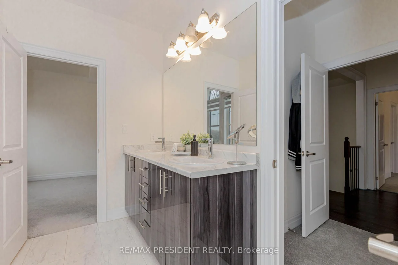 Welcome to this stunning 2023-built, over 3,000 sft detached corner-lot home offering a bright, luxurious, and highly functional layout with modern upgrades throughout. Right across the street, there is a new public park proposed. Proposed New Elementary school 300meter away. Over 100k value in upgrades. 9'ft Ceilings on Main and Second. TWO GRAND BEDROOMS WITH ENSUITES & WALK-IN CLOSETS. The home features an impressive 8 ft double-door entry, smart lighting controlled by an app, pot lights on the exterior and main floor, upgraded porcelain tiles, and hardwood flooring in the main living areas. Enjoy separate living, dining, and family rooms along with a spacious modern kitchen equipped with Quartz countertops, Quartz Backsplash, a gas stove, double-door smart, Oak Stairs, Samsung fridge, extended cabinets, and a large breakfast area; all illuminated by huge windows that flood the home with natural light. Huge Primary bedroom with extra spacious walk-in closet and a SPA-style Ensuite with Double sink vanity, Soaker Tub and Glass Standing shower. The second floor offers 4 spacious bedrooms and 3 full bathrooms, including a convenient Jack & Jill ensuite so every bedroom has direct bathroom access, plus a large second-floor laundry room for added convenience. ALL BEDROOMS have WALK-IN Closets. Additional features include elegant metal spindle railings, a 200-amp electrical panel, a double-car garage, and a massive open-concept unfinished basement with endless potential for future customization. This exceptional home combines space, luxury, and modern technology, perfect for families seeking comfort and contemporary living in a desirable community. The Spacious Laundry room is on the second floor with a utility washer sink for convenience plus a huge closet for storage. Come take a look at this beautiful home today, before it sells.