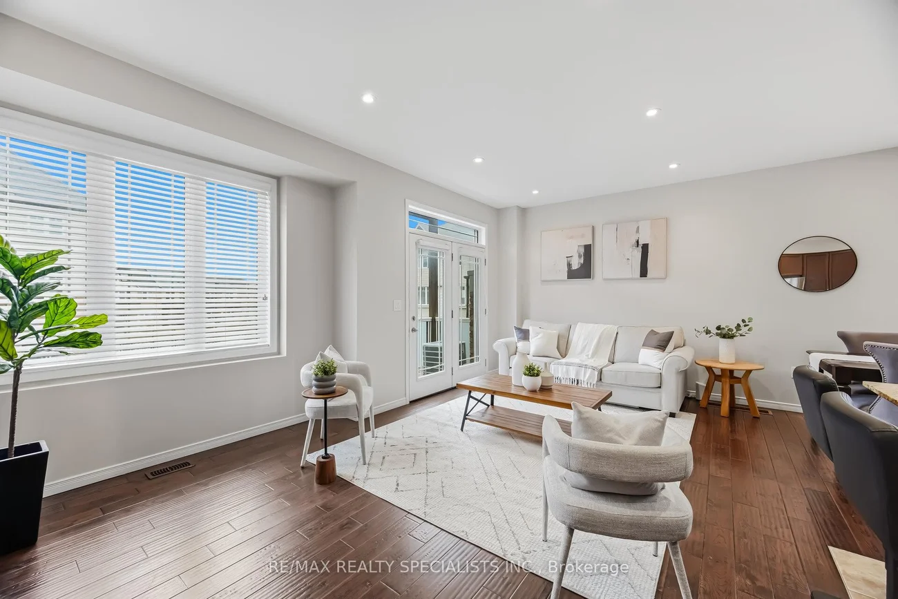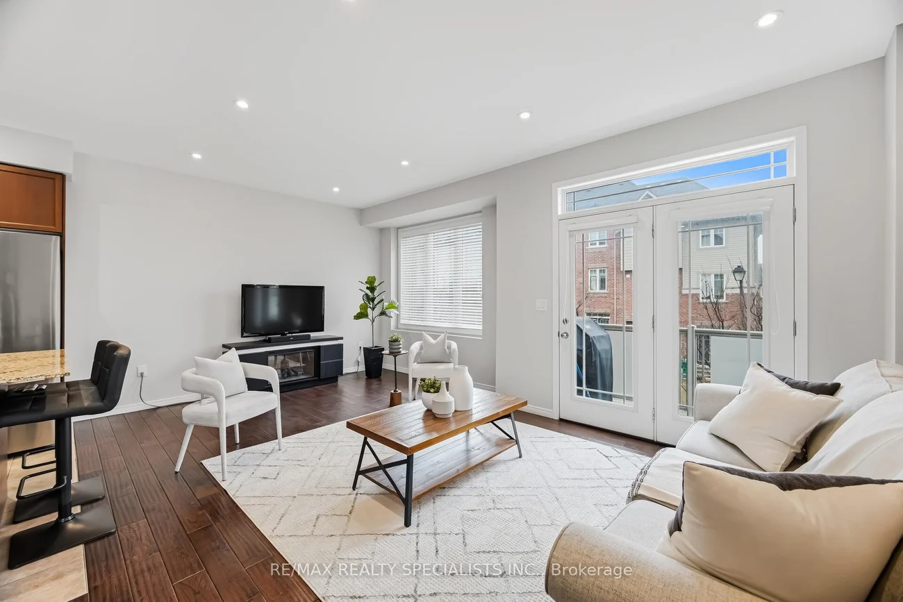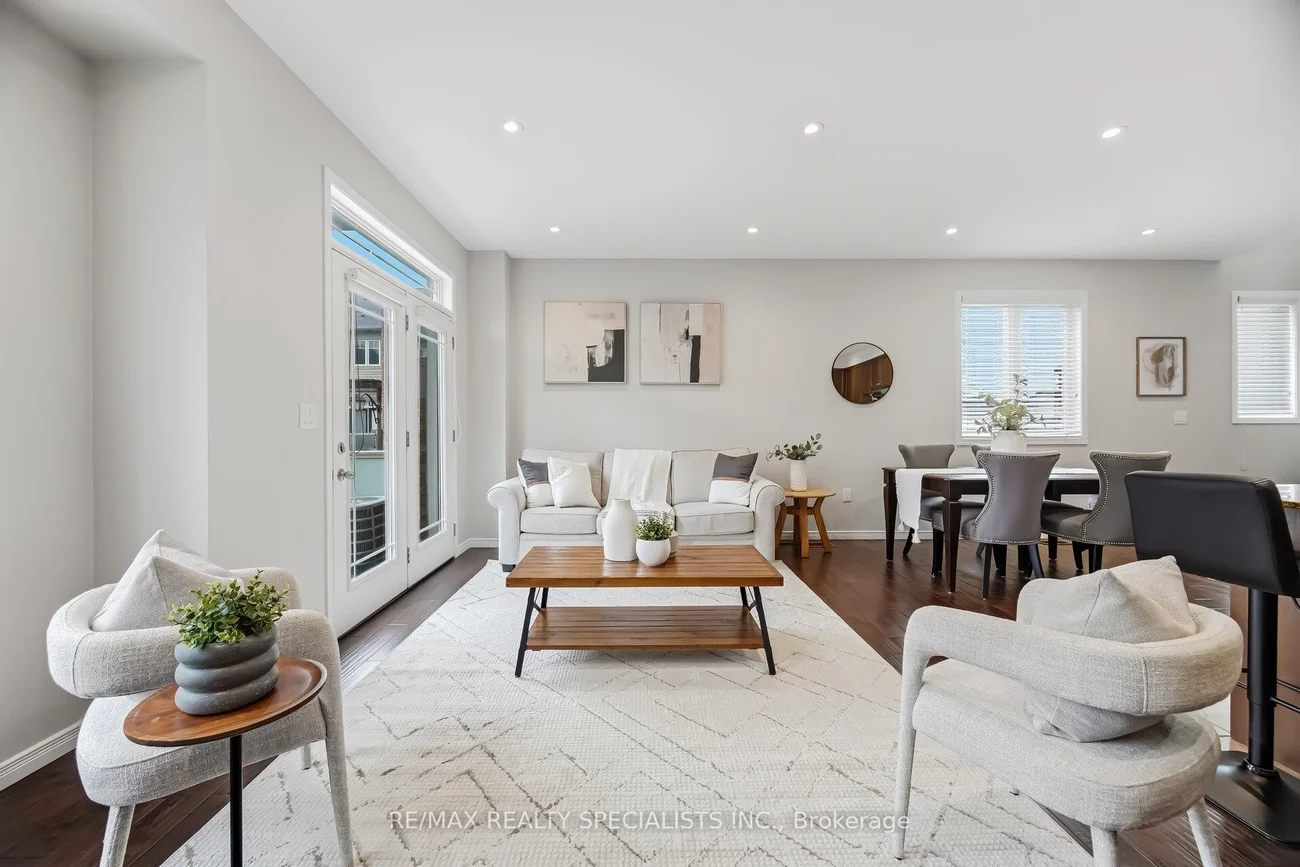 Welcome to this bright and spacious freehold end unit townhome that feels like a semi detached, with windows all around that fill the home with natural light. Offering 9 foot ceilings and a bright, open, airy layout, this home is designed for comfortable daily living and easy entertaining. The ground level features a private den, ideal for working from home, along with direct access to the oversized garage with added storage space. The open concept main floor showcases hardwood floors through the main living areas and a large family sized eat in kitchen with centre island and breakfast bar. The kitchen overlooks the generous living and dining areas and offers a walkout to the balcony. A beautifully updated powder room adds style with elongated porcelain tile and a modern painted vanity. Upstairs, you will find three generous bedrooms filled with sunlight, including a primary retreat with a walk in closet. Located in a family friendly community, this home is a short walk to Southfields Community Centre with indoor pool and library, and close to Etobicoke Creek trails, schools, transit, grocery stores, and restaurants. Commuters will appreciate easy access to Highway 410 and major routes including Mayfield Road and Kennedy Road.