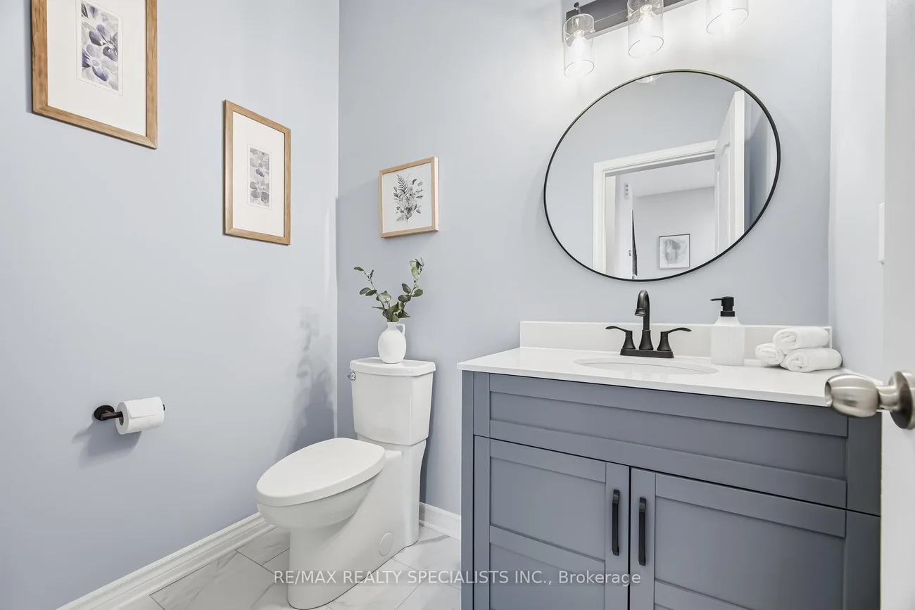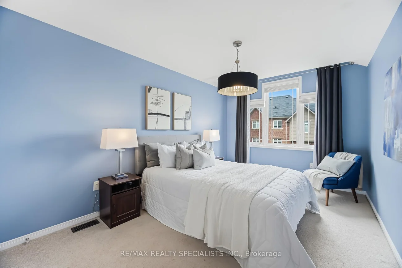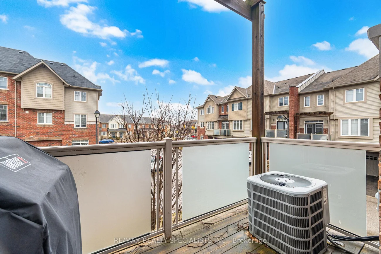 Welcome to this bright and spacious freehold end unit townhome that feels like a semi detached, with windows all around that fill the home with natural light. Offering 9 foot ceilings and a bright, open, airy layout, this home is designed for comfortable daily living and easy entertaining. The ground level features a private den, ideal for working from home, along with direct access to the oversized garage with added storage space. The open concept main floor showcases hardwood floors through the main living areas and a large family sized eat in kitchen with centre island and breakfast bar. The kitchen overlooks the generous living and dining areas and offers a walkout to the balcony. A beautifully updated powder room adds style with elongated porcelain tile and a modern painted vanity. Upstairs, you will find three generous bedrooms filled with sunlight, including a primary retreat with a walk in closet. Located in a family friendly community, this home is a short walk to Southfields Community Centre with indoor pool and library, and close to Etobicoke Creek trails, schools, transit, grocery stores, and restaurants. Commuters will appreciate easy access to Highway 410 and major routes including Mayfield Road and Kennedy Road.