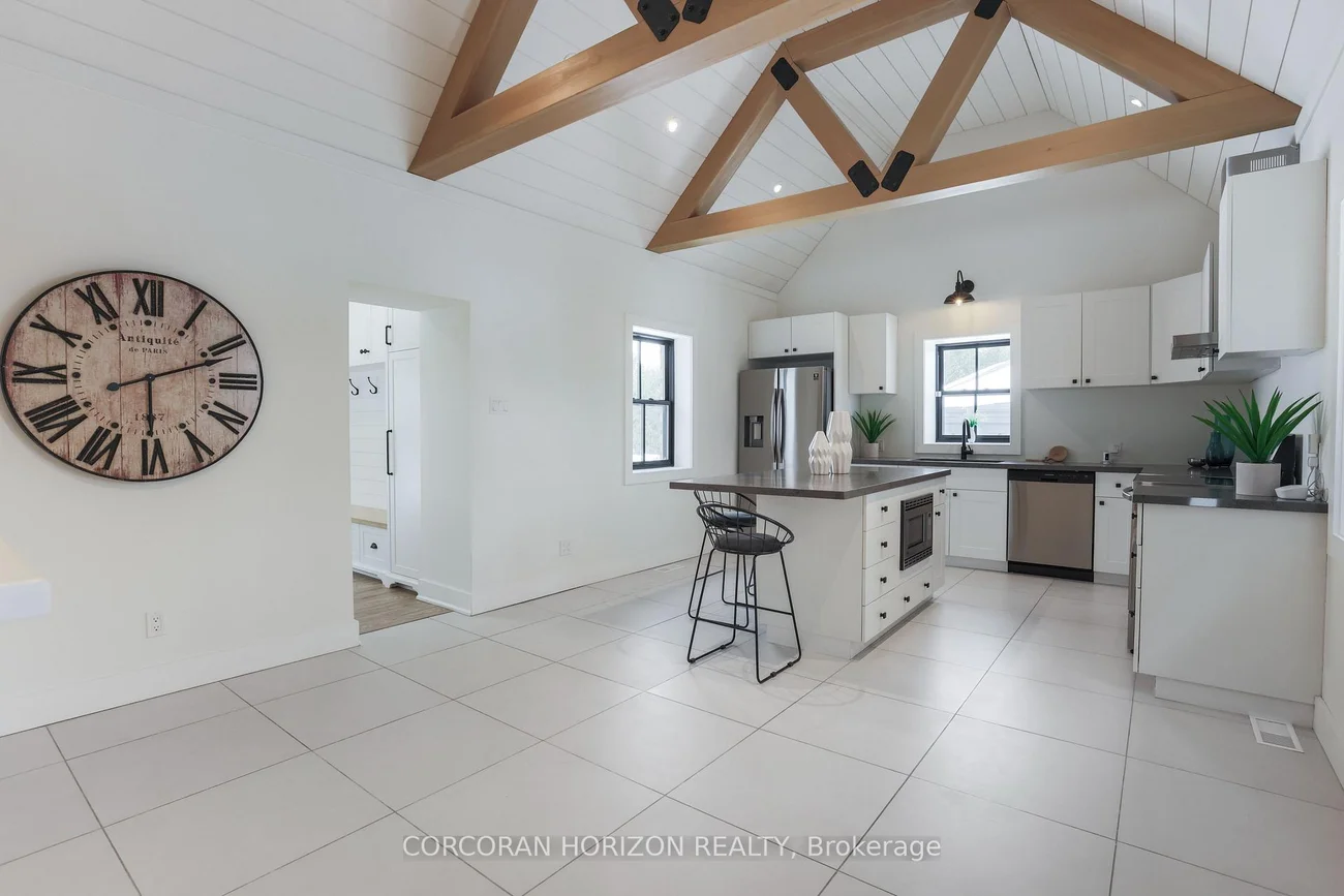 Step into a rare blend of history and modern luxury in this completely rebuilt 1865 farmhouse thoughtfully reimagined for today's living while honouring its timeless soul.From the moment you arrive the sweeping covered front porch sets the tone overlooking a treed front yard and rolling countryside that feels worlds away from the everyday.Inside the heart of the home is a show-stopping kitchen where a soaring 13-ft beamed ceiling and exposed brick wall pay homage to the home's heritage.A large quartz centre island anchors the space perfect for gathering while a generous breakfast area invites long unhurried mornings.A separate mudroom w/beautifully crafted built-in closets keeps family life effortlessly organized.Wide-plank hardwood floors flow throughout the home complementing a main-floor powder room and a well-designed laundry room complete w/built-in cabinetry and sink. Entertain in the expansive family dining room featuring a walk-out to a romantic covered porch ideal for summer dinners quiet evenings and year-round enjoyment.Historically accurate thermal windows frame stunning views from every room filling the home with natural light.The main level also offers a versatile fourth bedroom or family room w/a custom built-in Murphy bed perfect for guests or multi-generational living. Upstairs, three spacious family bedrooms await including a serene primary retreat with a large walk-in closet and a beautifully appointed four-piece ensuite plus an additional family bathroom. Outdoors the lifestyle continues across more than 4.6 acres of rolling hills complete with a firepit toboggan hill and breathtaking views beyond compare. A detached two-car garage is complemented by an impressive 3,061 sq. ft. barn or workshop with 15.6-ft joist clearance ideal for storage, a home business or agricultural use.This is more than a home it's an extraordinary family retreat and a compelling investment with a lucrative future development potential. A truly one-of-a-kind opportunity.