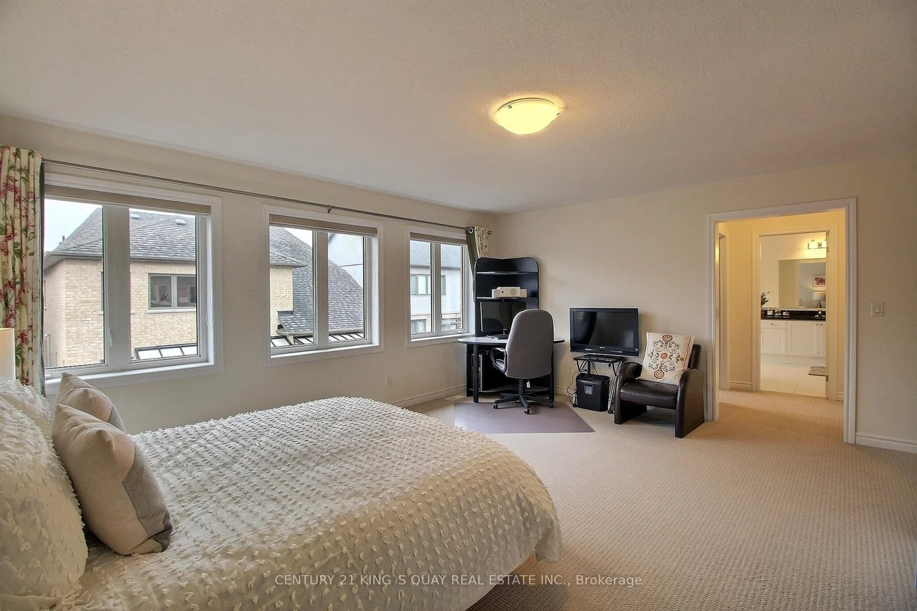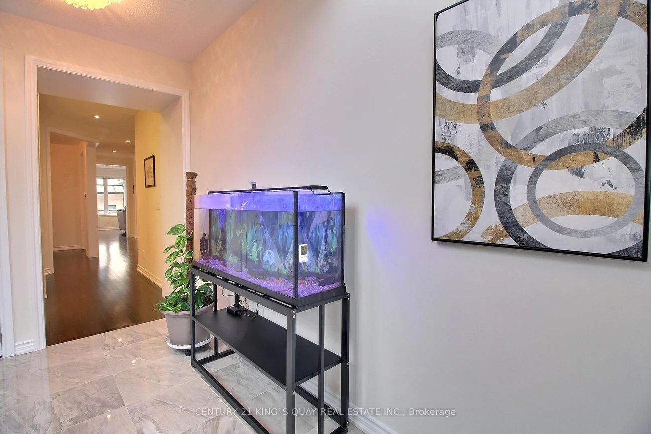 Don't miss the chance to visit this stunning detached home on a 43-foot wide lot, offering nearly 3,500 square feet of thoughtfully designed space without any wasted areas. Experience luxury in a contemporary brick-and-stone Minto-built residence featuring an impressive two-storey foyer with oversized windows and a striking circular oak staircase leading up to four spacious bedrooms. The open-concept layout provides exceptional living, filled with natural light, nine-foot ceilings, and eight-foot doors throughout the main floor. The chef's kitchen boasts a large island, modern backsplash, commercial-style range hood, quartz countertops, slide-in KitchenAid gas stove, and pot lights. Relax in the expansive family room with a gas fireplace, zebra roller blinds, and views of the professionally landscaped and fully fenced backyard. There are four bedrooms and three bathrooms upstairs. The master suite includes two walk-in closets and a luxurious ensuite with a half-wall frameless glass shower, soaker tub, and double sinks. The second bedroom enjoys a private four-piece bathroom, while the other two bedrooms share a semi-ensuite; every bedroom has access to a washroom. Step outside into your private backyard oasis with a stylish interlocking patio and walkway. The mudroom offers direct entry to the double garage, and there's a separate main-floor laundry room. The house is equipped with a 200 amp service for electric vehicles, providing ample power for charging cars and running all appliances. Security is ensured with an alarm system. Located in the desirable Queens Landing Community, within the catchment area for top schools like Holland Landing P.S. and Dr. John M Denison S.S., this growing neighborhood is ideal for young families. It's conveniently close to Hwy 404, East Gwillimbury GO, future Bradford Bypass, Costco, shops, banks, Upper Canada Mall, restaurants, parks, trails, golf courses, and school bus routes, making it perfect for both families and commuters!