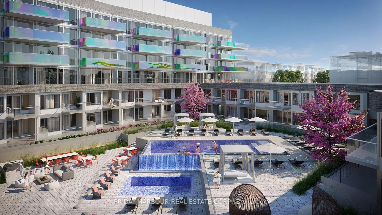 Welcome to an exceptional new standard of refined living at Friday Harbour. This beautifully designed 2-bedroom, 2-bathroom residence offers a seamless blend of modern style and everyday comfort. Thoughtfully curated finishes include contemporary kitchen cabinetry, polished quartz countertops, and wide-plank engineered flooring, creating a sophisticated yet inviting atmosphere throughout.Residents enjoy access to an impressive collection of resort-inspired amenities, from a serene outdoor pool and private cabanas to a state-of-the-art golf simulator, theatre room, stylish lounge areas, and event spaces. Added conveniences such as a pet wash station elevate the ease of daily living.Perfectly situated within the heart of the Friday Harbour community, this home places you moments from a private beach, waterfront dining, cafés, and kilometres of scenic walking trails winding through a stunning 200-acre nature preserve.This is more than a home-it's a lifestyle defined by luxury, recreation, and natural beauty in one of Ontario's most sought-after waterfront destinations.
