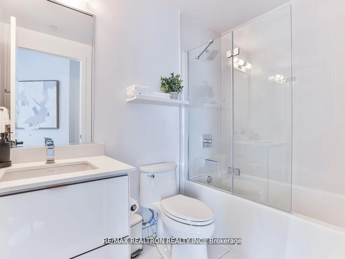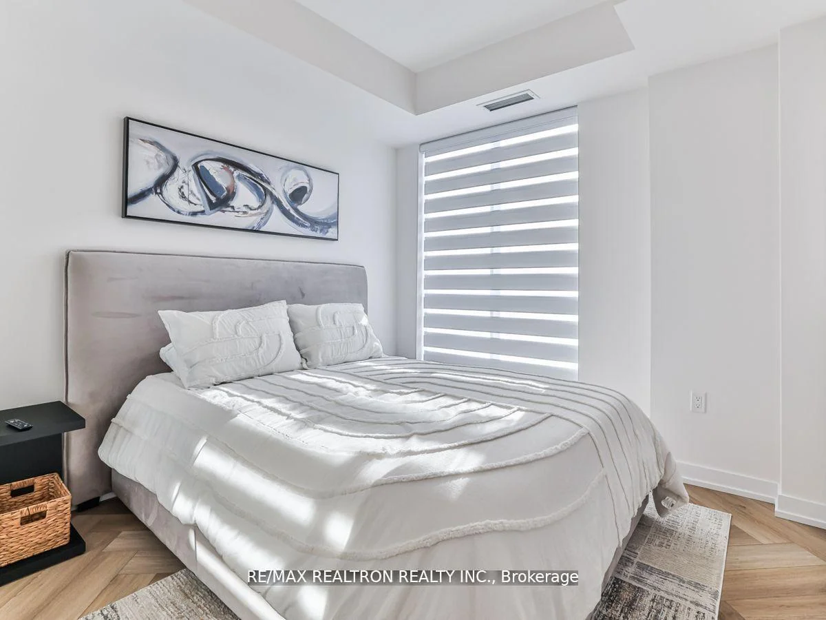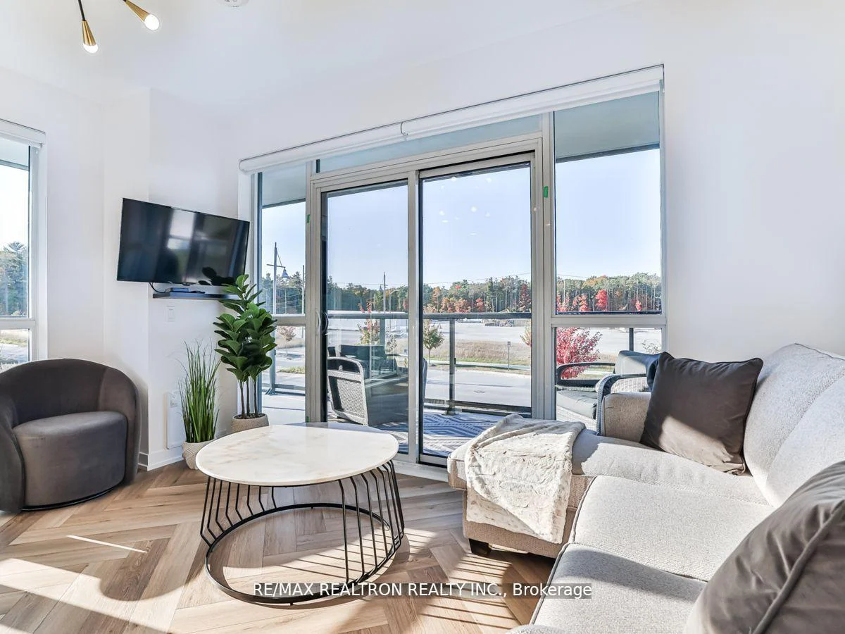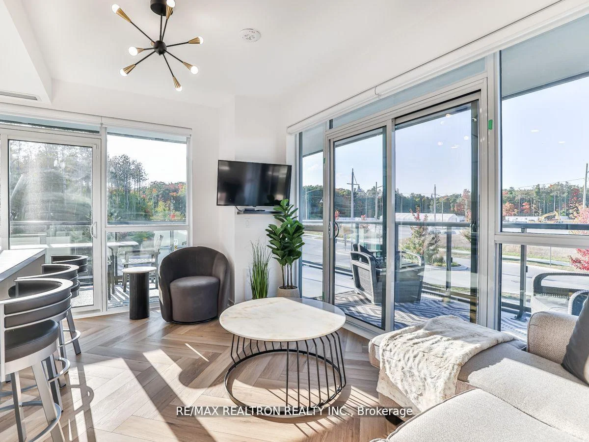 Rare wraparound terrace facing the forest! As you enter, a beautiful corridor leads you through to a living space, bedroom, bathroom, and kitchen that boasts numerous upgrades, including a stunning waterfall island and gorgeous hardware. The flooring throughout is simply breathtaking. Offering a splendid open-concept living space with access to the balcony. This condo features a balcony that extends all around, you'll be greeted by the enchanting western sunset view of the lush forest. The space is thoughtfully illuminated by pot lights and custom fixtures, and it boasts ample storage to keep your belongings neatly organized. To add a touch of luxury, the Ensuite bathroom is a stunning addition, further enhancing this exceptional living space. So, grab your suitcase and relish the lifestyle of luxury that awaits you here.