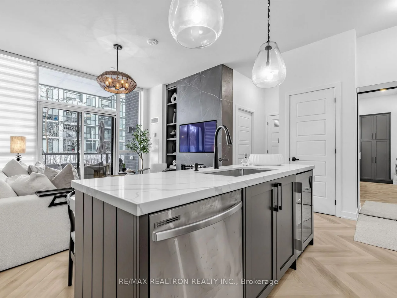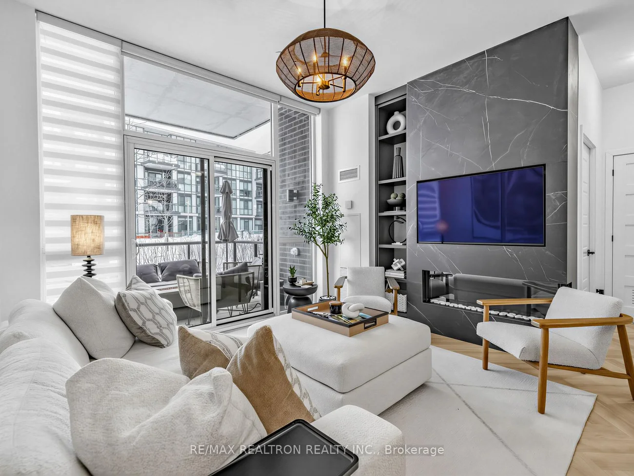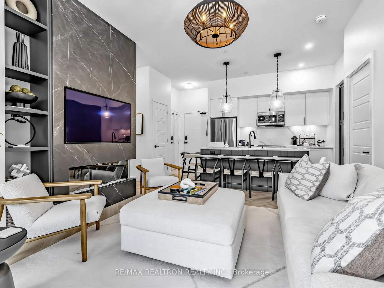 ***ADM Designer Custom Ground-Floor Condo at Friday Harbour Resort*** Step into this fully designer-curated ground-floor 2-bedroom, 2-bath residence at Friday Harbour Resort, where every detail has been thoughtfully elevated to create a refined yet welcoming space. The open-concept layout is anchored by a stunning kitchen island featuring custom built-in seating, a unique design element perfect for entertaining and everyday living. Rich herringbone flooring flows throughout the home, complemented by a custom fireplace and designer-selected light fixtures that add warmth and sophistication. The suite is offered fully furnished and showcases elevated finishes throughout, including custom mirrors, designer details, and elegant ceiling treatments. The primary bedroom offers a relaxing retreat with a spa-inspired ensuite featuring a deep soaker tub and beautifully selected finishes. Automated blinds provide convenience and comfort, while the west-facing exposure fills the home with natural afternoon light and overlooks the tranquil courtyard. Outside, enjoy your private outdoor space complete with a Weber BBQ and firepit-perfect for relaxing evenings or entertaining guests. Located within the vibrant Friday Harbour Resort community, residents enjoy access to a true four-season lifestyle destination on Lake Simcoe. Just steps away are the Promenade's restaurants, cafés, shops, marina, boardwalk, and Lake Club, along with the Nest Golf Course, nature trails, beach areas, and year-round events and activities. Whether you're looking for a luxurious full-time residence, a weekend escape, or an exceptional investment opportunity, this beautifully designed suite offers the ultimate resort-style living experience.