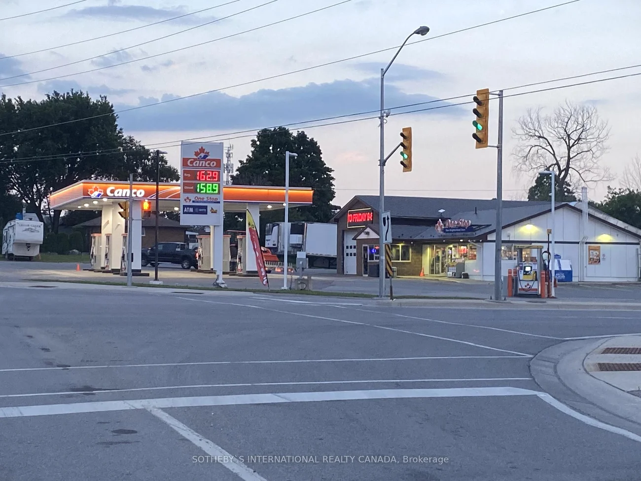High profile corner site is comprised of 2 properties totaling approximately 1.6 acres assembled to create one development site. Located at the crossing of 2 major arterial high traffic routes, this coveted location possesses excellent visibility and accessibility with its 3 existing points of ingress and egress. Both properties are zoned Highway Commercial permitting many uses including an area-rare QSR drive thru zoning designation. Site improvements include a 3,892 sf block building containing a Convenience Store with 3-Bay Service Garage and a Gas Bar with a 1,426 sf Canopy. Very attractive long term NNN income with recently signed 20 year lease. Much interest from multiple QSR brands. Tremendous growth planned for this area. Both municipal water and sewer lines have been installed to the property lot line for future servicing and redevelopment. Phase 2 Environmental Assessment was recently completed. Both income property and vacant land must be purchased together.