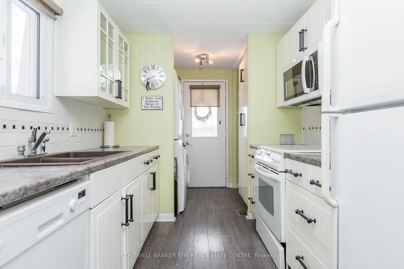 Welcome to relaxed, low-maintenance living in the highly sought-after North side of Sandycove Acres - a vibrant adult lifestyle community known for its friendly atmosphere and exceptional amenities. This well-designed 1056 sqft 2-bedroom, 2-bathroom home offers a comfortable and functional layout, highlighted by a spacious primary suite featuring a walk-in closet and private ensuite bath. Perfectly positioned within walking distance to the recreation centre, new pickleball courts, and outdoor saltwater pool, you'll enjoy an active lifestyle right at your doorstep. Inside, the home showcases a modern updated galley kitchen, stylish grey laminate flooring, and custom window coverings throughout. Double garden doors lead to a private deck, creating a seamless indoor-outdoor flow ideal for relaxing or entertaining. The mature, treed yard offers added privacy, while the covered front porch provides a charming space to unwind. Comfort is ensured year-round with forced air gas heating and central air conditioning. Additional highlights include private double car parking and an attractive, assumable lease of $590.83/month plus taxes of $117.17 ($709.96 total), delivering excellent value in this desirable community. Ideally located near Lake Simcoe, Innisfil Beach Park, and the South Barrie GO Station, with convenient access to shopping and Highway 400, this home offers the perfect balance of peaceful living and everyday convenience. A turnkey opportunity in a prime location - come experience the lifestyle for yourself.