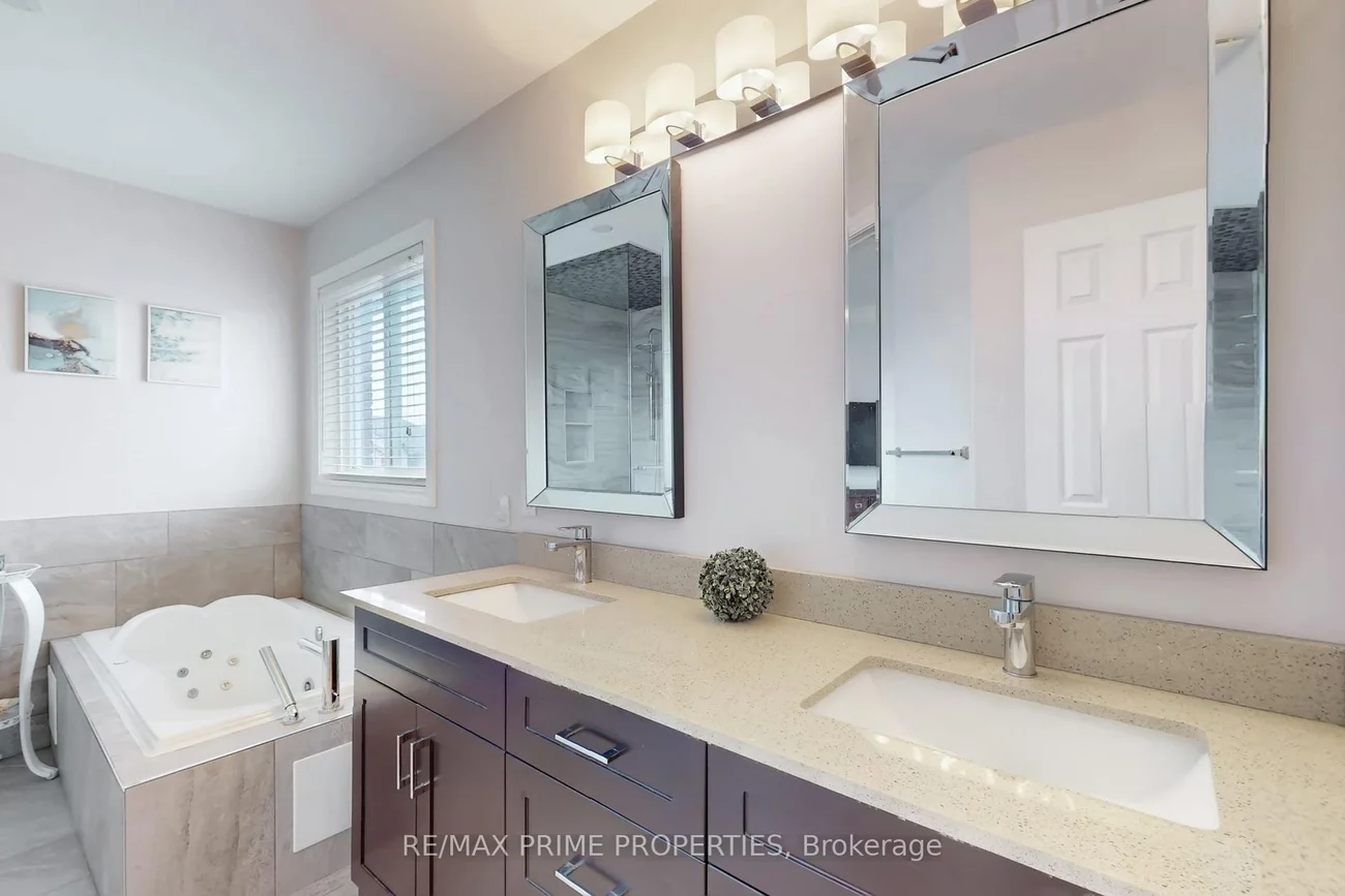 Welcome to a home that truly has it all-where thoughtful design meets everyday luxury. This beautifully upgraded detached 4-bedroom, 4-bath, double car garage home offers an exceptional blend of elegance, comfort, and modern functionality. From the moment you arrive, the professionally landscaped front yard and elegantly upgraded front door create a lasting first impression. Inside, you're greeted by a bright, open-concept main floor adorned with rich hardwood flooring, California shutters, pot lights, and a warm, inviting fireplace-perfect for both relaxing nights and lively gatherings. At the heart of the home is a show-stopping, recently renovated kitchen designed to impress. Featuring premium cabinetry, sleek quartz countertops with a matching backsplash, stainless steel appliances, a spacious pantry, and a sunlit breakfast nook overlooking the backyard, this space is as beautiful as it is functional. Step outside to your expansive deck and private backyard, an ideal setting for entertaining guests or unwinding in your own outdoor retreat. Upstairs, the luxurious primary suite is your personal sanctuary, complete with a cozy sitting area and a recently renovated spa-inspired 5-piece ensuite boasting a glass-enclosed shower and a Jacuzzi soaker tub. Three additional generously sized bedrooms and a stylishly updated main bathroom provide ample space for family and guests.The fully finished basement extends your living space even further, featuring new vinyl flooring, custom built-ins, abundant storage, a cold cellar, and a chic 3-piece bathroom highlighted by a designer sliding barn door-perfect for a recreation area, home office, or guest suite. With quality upgrades throughout and meticulous attention to detail, this move-in-ready home offers a lifestyle of comfort and sophistication. Don't miss your opportunity to make it yours.