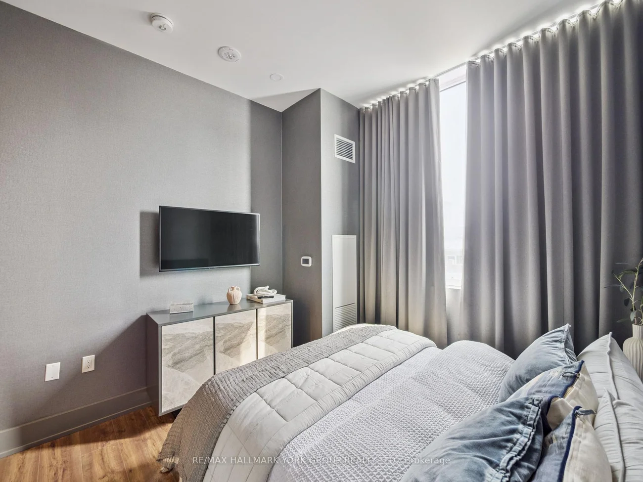 Welcome to King Terrace - The newest addition to the King City condo community. Located in the heart of King City, this condo is located on the main floor and the terrace view faces south onto the outdoor area of the complex. The unit offers 10ft ceilings, open concept kitchen, laminate floors, a primary bedroom with ensuite, a secondary bedroom with frosted glass sliding doors, and second bathroom