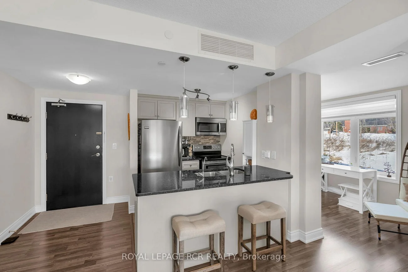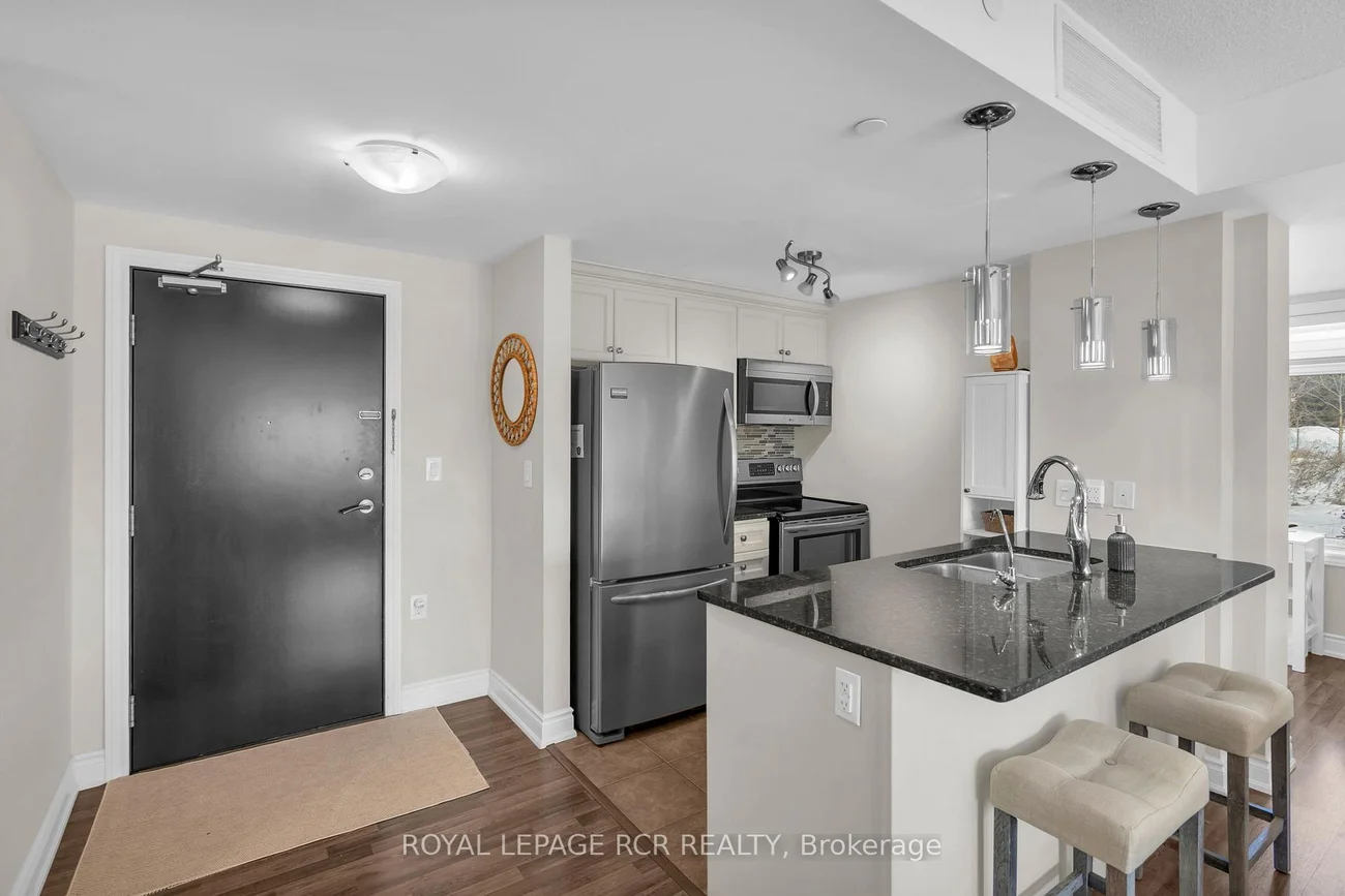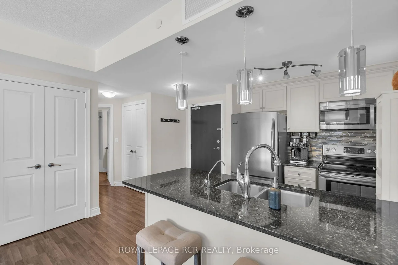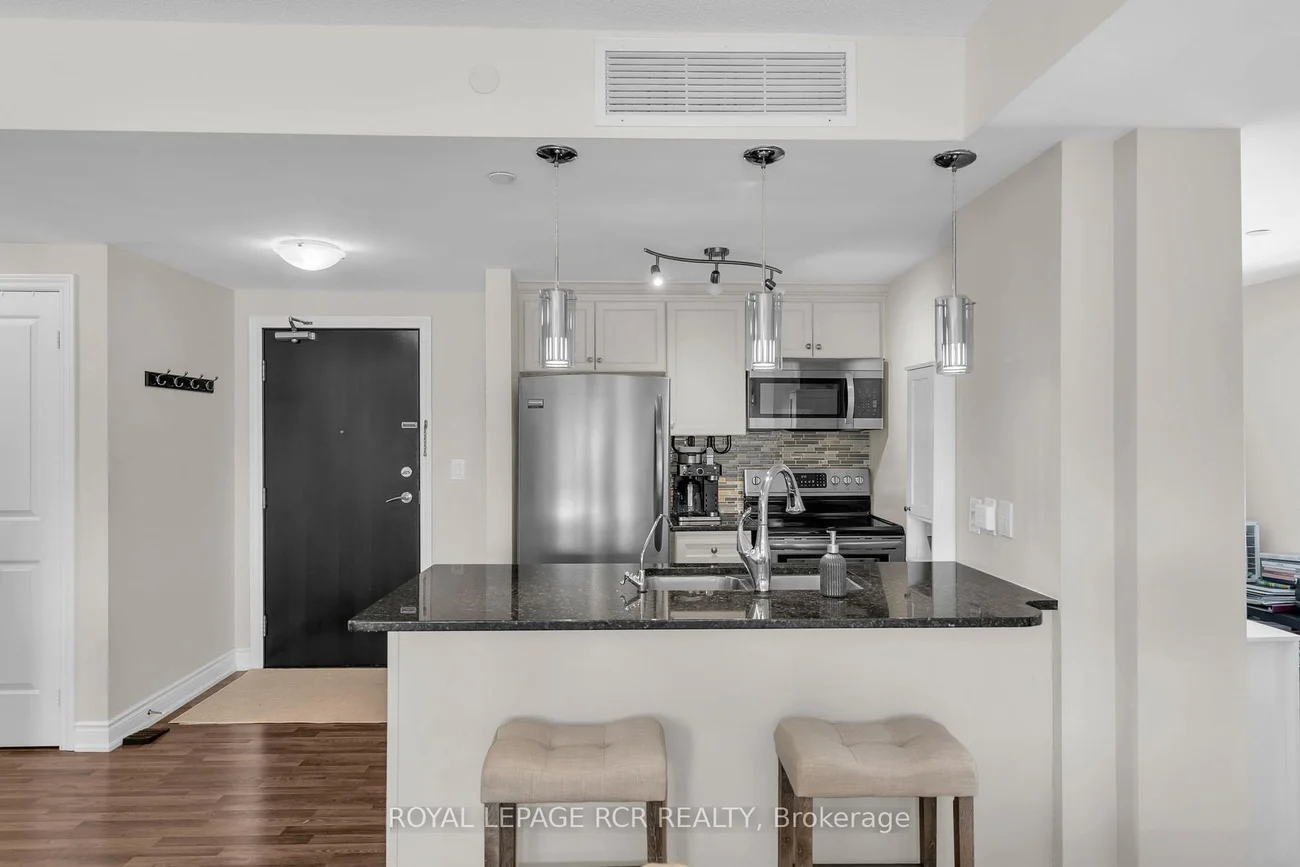Welcome to the charming village of Schomberg! This spectacular corner unit offers a bright and spacious open-concept layout with breathtaking ravine views. Featuring 1 bedroom plus a versatile den, this suite is ideal for professionals or anyone seeking a stylish and comfortable place to call home. Natural light pours in from two sides through oversized windows - a unique advantage of this desirable corner unit, creating an airy and inviting living space. The modern kitchen is equipped with stainless steel appliances, granite countertops, and ample cabinetry, flowing seamlessly into the living and dining areas, perfect for both everyday living and entertaining. The primary bedroom is generously sized, complemented by a well-appointed 4-piece bathroom and the convenience of in-suite laundry. The den provides flexible space for a home office, guest area, or additional storage. Residents enjoy excellent building amenities including an indoor pool, fitness centre, and party room. Located just minutes from Schomberg's vibrant Main Street, you'll have easy access to charming shops, restaurants, grocery and hardware stores, as well as nearby Fox Trail Park and scenic walking trails. Commuting is simple with quick access to Highways 27, 9, and 400, and convenient transit options nearby. This rental also includes one covered parking space and a storage locker. Experience the perfect blend of small-town charm and modern convenience in this exceptional Schomberg condo.