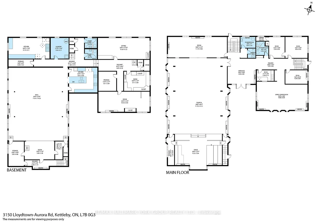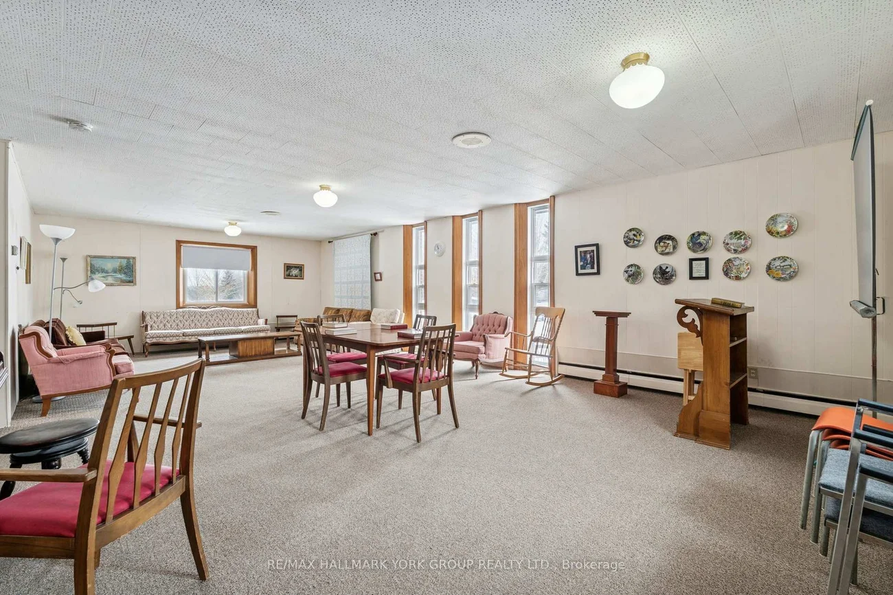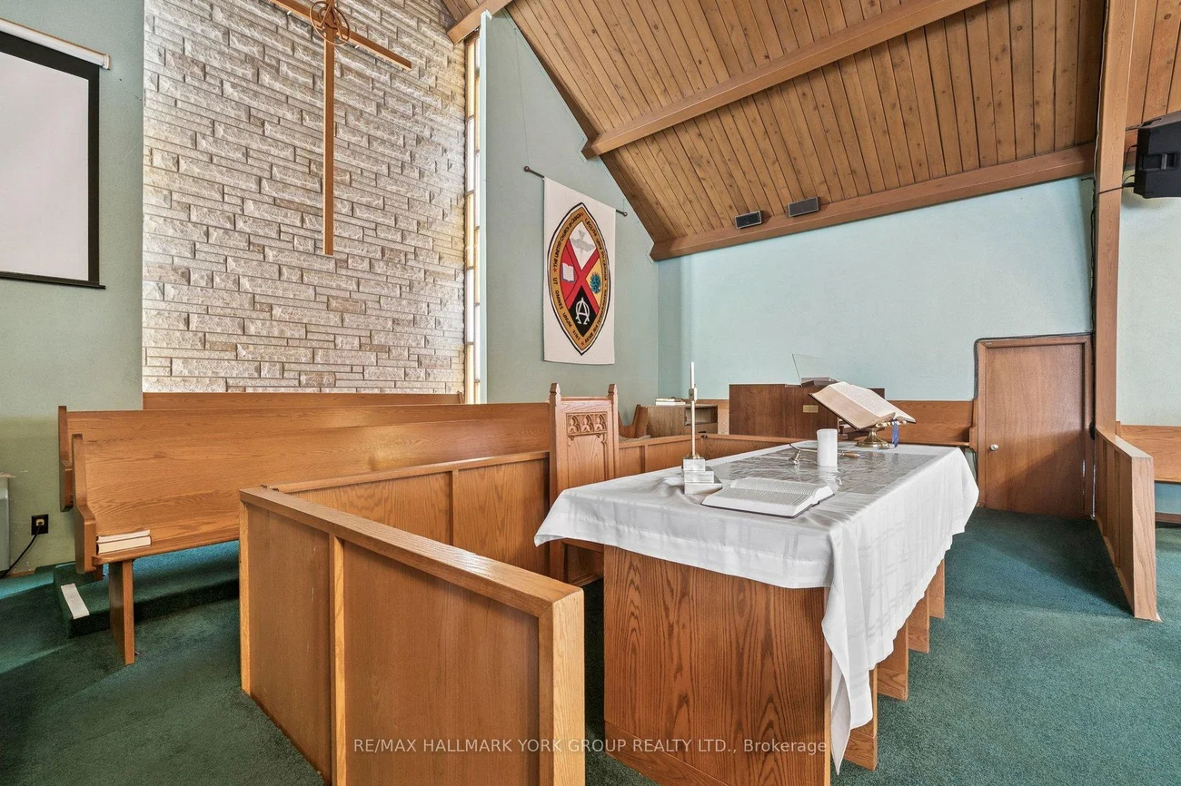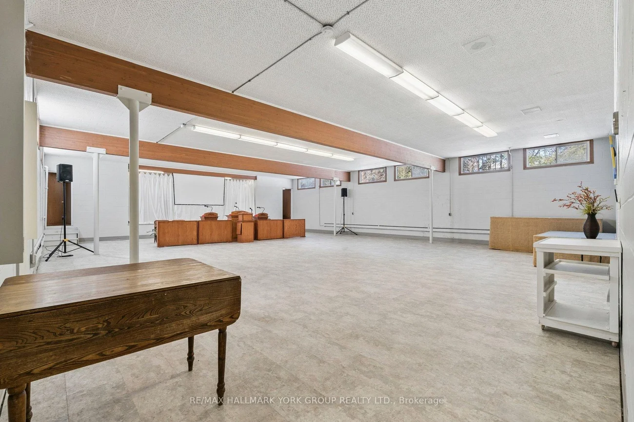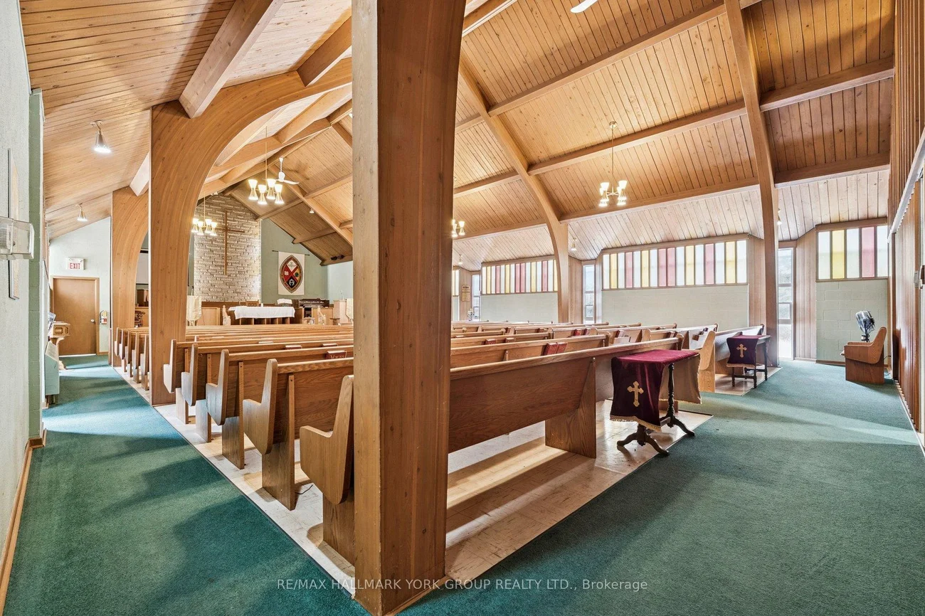 Place of Worship with space for a nursery/daycare. The property is situated on 2.94acres of desitable land in King Township within close proximity to Hwy400. Parking for approximately 35-40vehicles. Building total floor area 11554sqft (MPAC). Sanctuary accommodates 150, chapel 50, gym 160, admin office, pastor's office, meeting rooms, fellowship hall, and 2 kitchens. Lower level offers a nursery school, and gym, with plenty of storage space. Vendor is offering the property on an as-is, where-is basis.Floorplan and Matterport interactive virtual tour design attached.