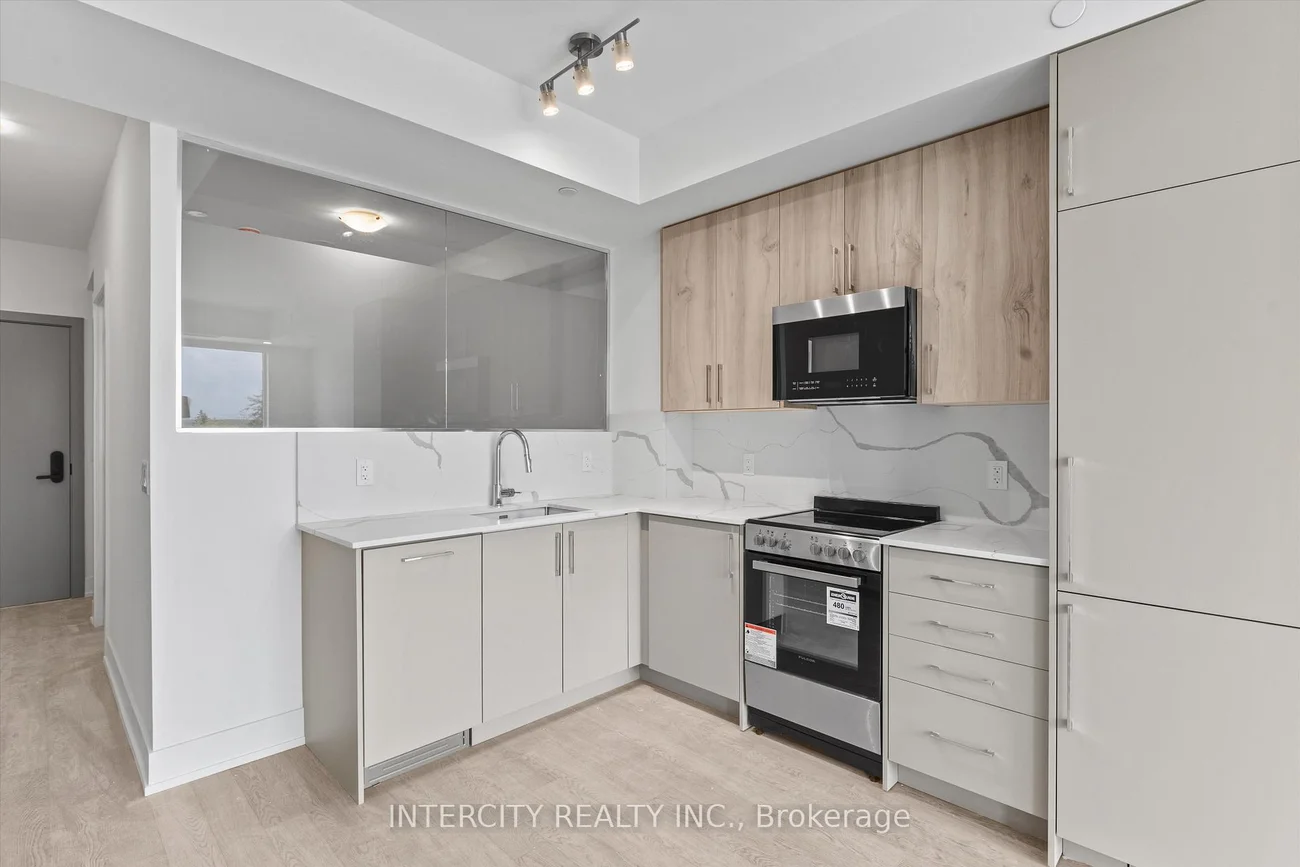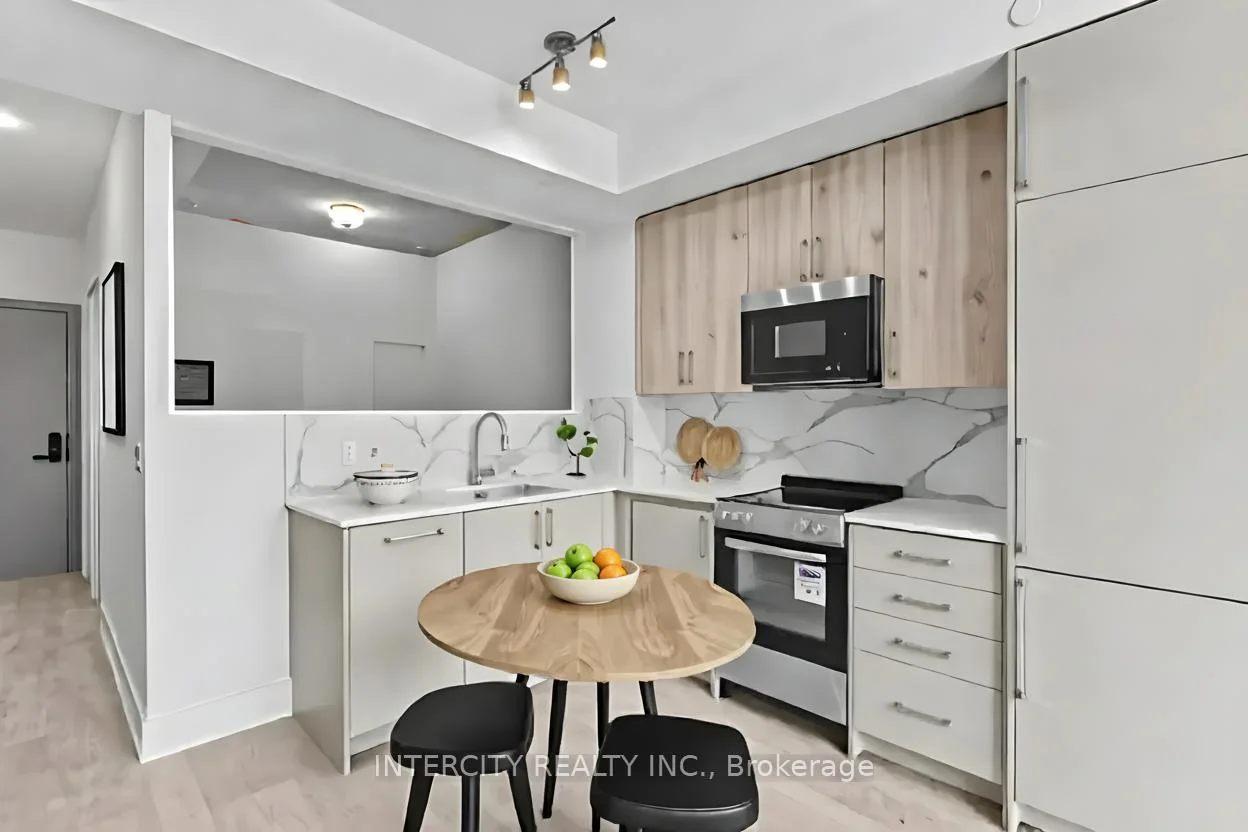 Welcome to Suite 424, a thoughtfully designed 688 sq. ft. split-bedroom residence that combines functionality with modern style. With its north-facing exposure, this home offers a calm and balanced atmosphere, ideal for everyday living. The open-concept kitchen is finished with quartz countertops, integrated appliances, and sleek cabinetry, flowing into a bright living and dining area that maximizes space and comfort. The split-bedroom layout ensures privacy, with the primary bedroom featuring a private ensuite and the second bedroom conveniently located near the second full bathroom. Perfect for couples, small families, or professionals, this suite delivers both comfort and flexibility. As an owner at King Terraces, you'll enjoy resort-inspired amenities, including a rooftop terrace, outdoor pool, state-of-the-art fitness centre, stylish party lounge, and 24-hour concierge service. With top-rated schools, parks, shopping, and dining just minutes away, everything you need is right at your doorstep. King Terraces is a welcoming community, ideal for families, young professionals, or anyone seeking a peaceful yet vibrant atmosphere. This is where you can create memories, build your future, and truly live your best life. Suite 424 is a smart and stylish opportunity combining privacy, practicality, and modern finishes in one inviting home.