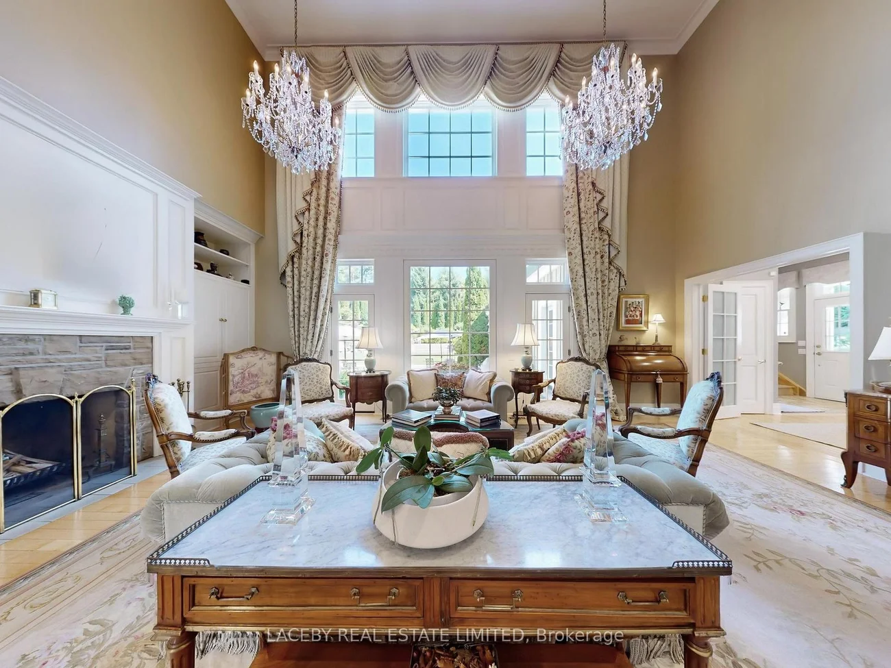 Where grand living meets heartfelt warmth. As grand as this estate is, the true magic lies in the feeling you get the moment you step inside, a welcoming sense of comfort, like an embraced hug. Set on over 12 rolling acres, this country home offers space, beauty, and thoughtful details throughout. Featuring six bedrooms, four of which boast updated en-suites and all offering spacious closets. Additional private nanny or in-law suite, there is room for family and guests alike. Elegant finishes such as plaster crown moldings, custom mill-work, and hand-finished drywall and plaster walls add a timeless character. While in the heart of the home, the designer kitchen features built-in appliances and a complete butlers pantry that walks out to a magnificent flagstone patio, perfect for gatherings. From here, take in views of lush, tiered perennial gardens that feel like a corner of the Tuscan countryside. Whether its quiet moments in the library, working from one of two home offices, or enjoying the soaring cathedral ceilings, this home is filled with spaces that bring people together. The fully finished lower level is designed for living, complete with a 1,000-bottle wine room, games and recreation space, private fitness studio with cushioned rubber flooring, hobby/artisan room which can easily be converted to a 6th bedroom, and oversized windows that flood the space with natural light. Eco-friendly Geothermal heating and cooling, two high efficiency furnaces, irrigation system, high-capacity generator, industrial grade water treatment systems, cathedral and 10' ceilings on main and second floor and 2 cozy wood-burning fireplaces ensure year-round comfort. Finished in classic stucco and stone with an oversized two-car garage, this estate blends country living with thoughtful luxury. Truly a home built to be lived in and loved.