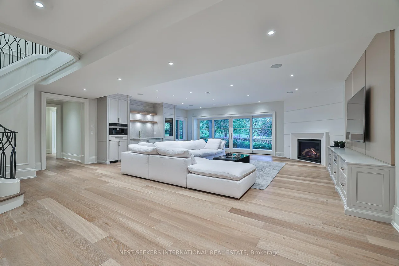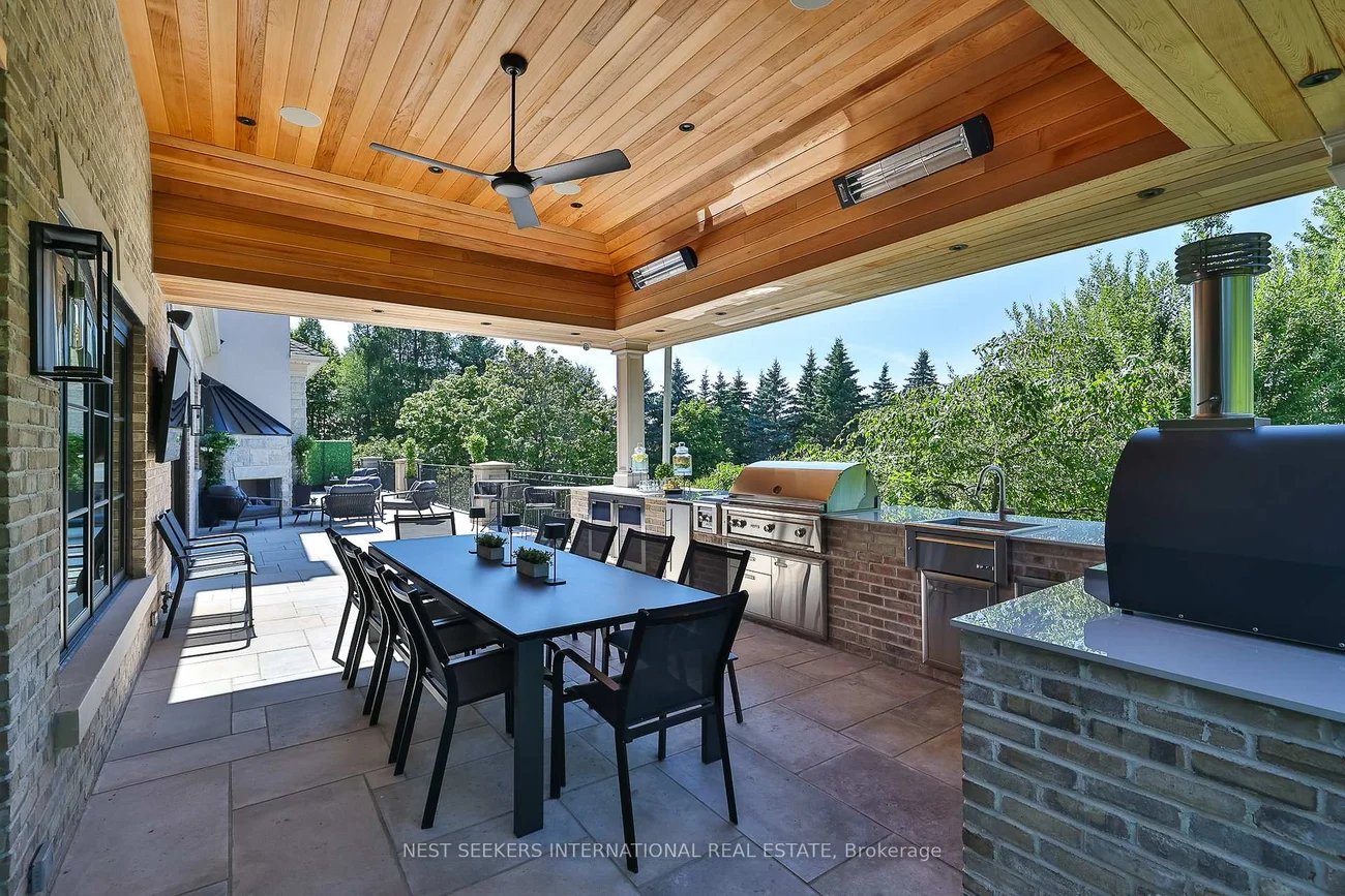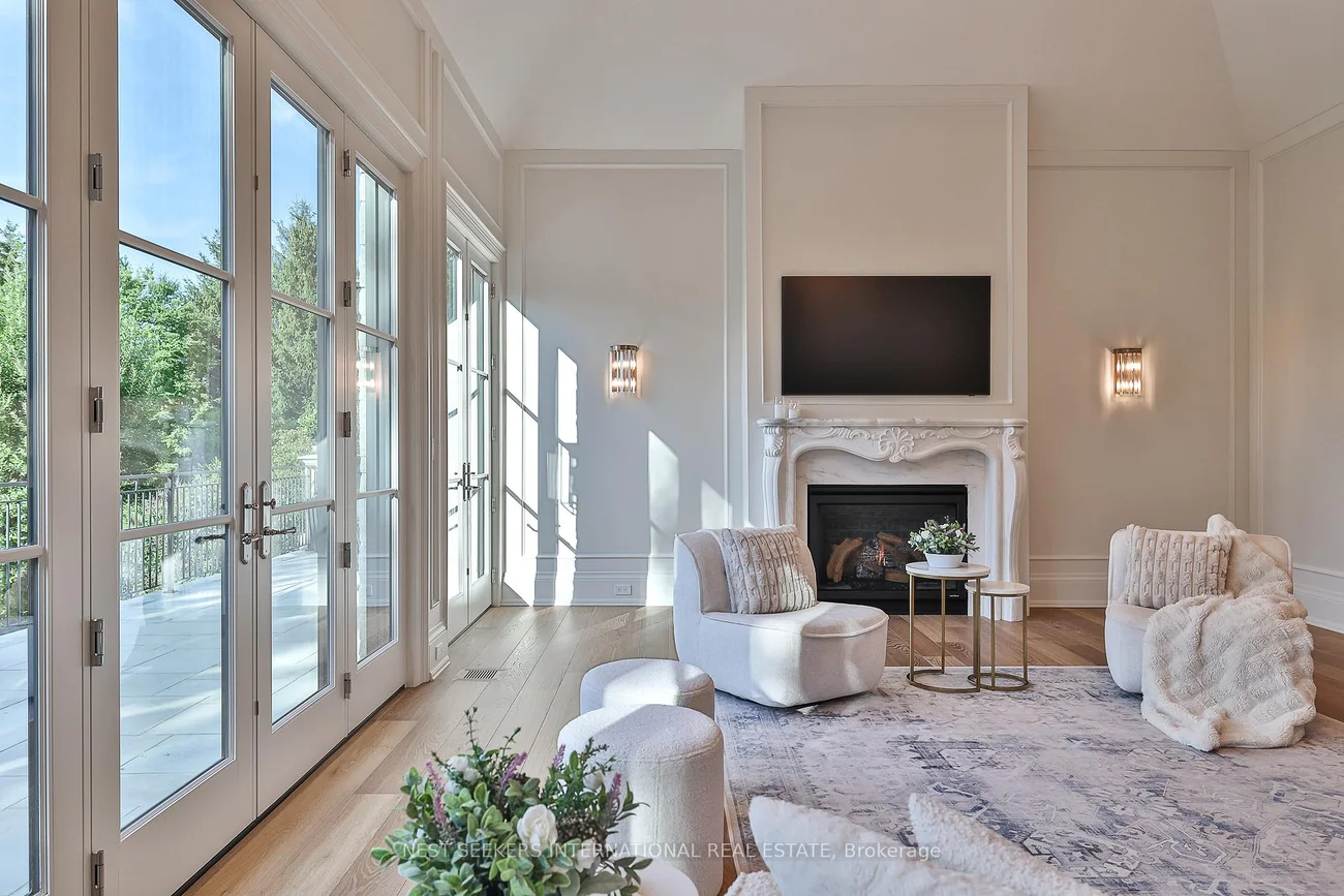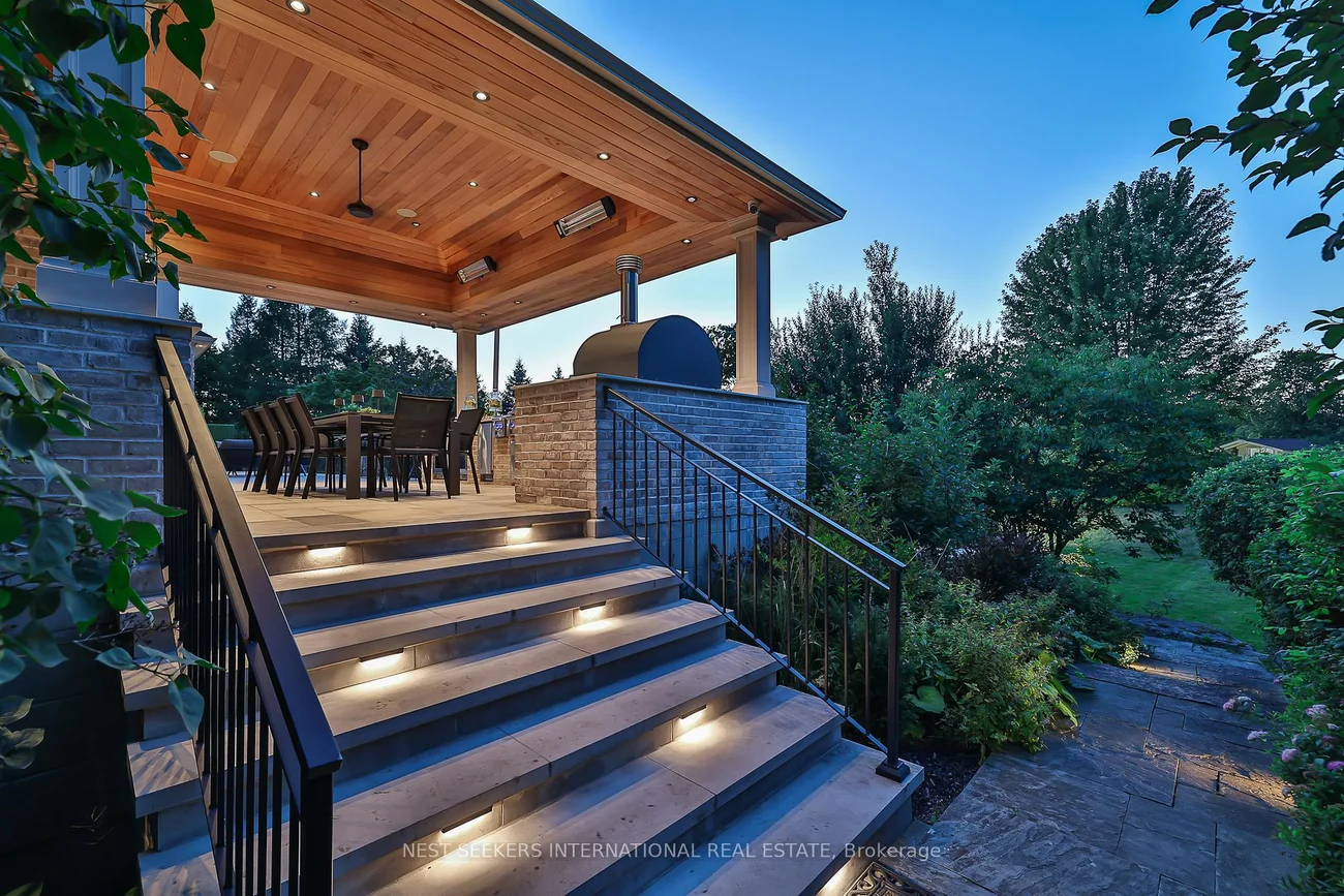 Welcome to an exceptional custom bungalow in prestigious Fairfield Estates, one of King Township's most desirable estate communities. Known for its private walking trails, equestrian setting, and estate homes, the neighbourhood offers close proximity to top private schools, horse stables, and everyday amenities in King City. The property backs directly onto a horse trail, enhancing the lifestyle appeal. Built approximately two years ago, this sprawling residence reflects outstanding craftsmanship and thoughtful design throughout. The main level features 11-ft ceilings with crown moulding, Hakwood herringbone flooring from Amsterdam, Italian antique mirrors, refined two-toned paint, and integrated lighting. A fully hard-wired Lutron HomeWorks system controls lighting and blinds throughout the home. The chef's kitchen is a focal point, showcasing dramatic 15-ft ceilings, full-frame cabinetry, Taj Mahal quartzite countertops, Sub-Zero refrigeration, and a handcrafted French La Cornue Le Château 165 dual-fuel range. Premium Miele appliances and a walk-in pantry make the space ideal for both everyday living and entertaining. The home offers five bedrooms and eight bathrooms, with principal bedrooms featuring 13-ft ceilings and custom millwork. Spa-inspired bathrooms and a well-appointed main-floor laundry add comfort and functionality. The fully finished lower level mirrors the quality of the main floor and offers impressive ceiling height, featuring a spa with steam room, walk-out gym, bar and coffee station, private office with walk-out, and a dedicated nanny or in-law suite with private ensuite, laundry, and separate access. Set on 2.2 landscaped acres, the exterior includes heated walkways, a snow-melted porch, outdoor kitchen, fireplaces, wood-burning oven, a Gibsan infinity-edge pool and hot tub, a private playground, and a three-car garage designed to accommodate lift systems, allowing conversion to potentially six vehicles.