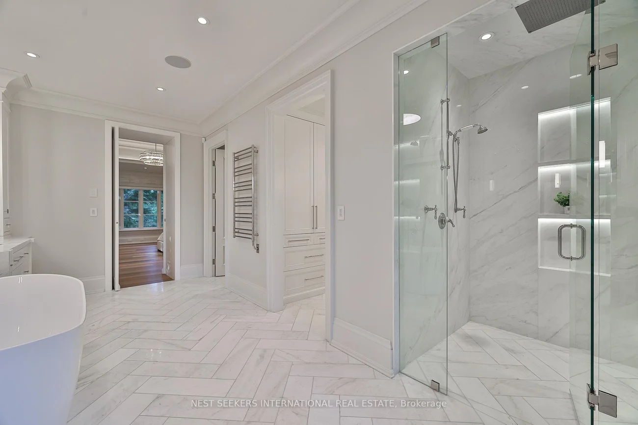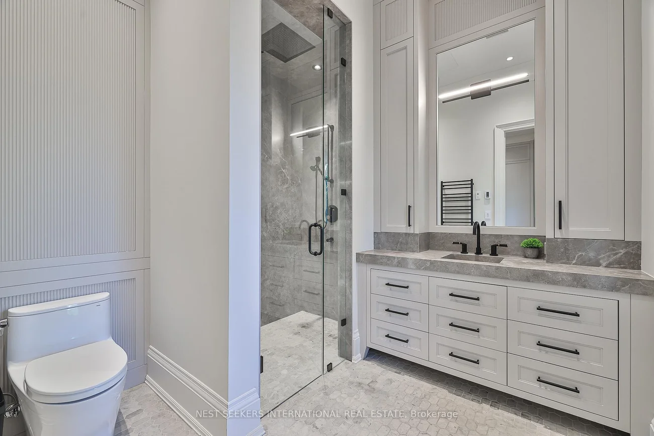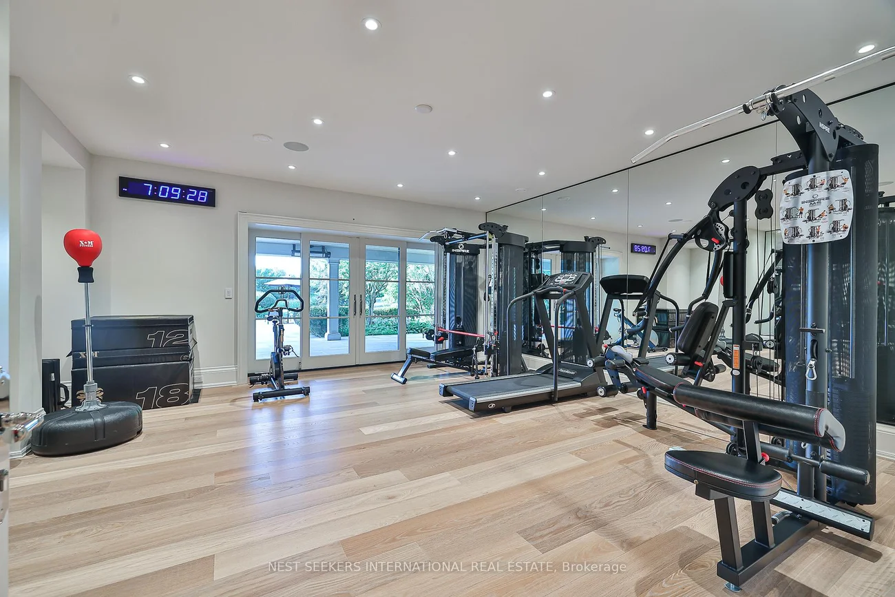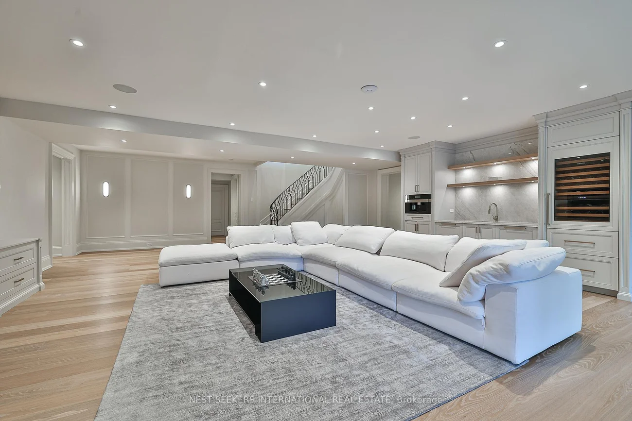 Welcome to an exceptional custom bungalow in prestigious Fairfield Estates, one of King Township's most desirable estate communities. Known for its private walking trails, equestrian setting, and estate homes, the neighbourhood offers close proximity to top private schools, horse stables, and everyday amenities in King City. The property backs directly onto a horse trail, enhancing the lifestyle appeal. Built approximately two years ago, this sprawling residence reflects outstanding craftsmanship and thoughtful design throughout. The main level features 11-ft ceilings with crown moulding, Hakwood herringbone flooring from Amsterdam, Italian antique mirrors, refined two-toned paint, and integrated lighting. A fully hard-wired Lutron HomeWorks system controls lighting and blinds throughout the home. The chef's kitchen is a focal point, showcasing dramatic 15-ft ceilings, full-frame cabinetry, Taj Mahal quartzite countertops, Sub-Zero refrigeration, and a handcrafted French La Cornue Le Château 165 dual-fuel range. Premium Miele appliances and a walk-in pantry make the space ideal for both everyday living and entertaining. The home offers five bedrooms and eight bathrooms, with principal bedrooms featuring 13-ft ceilings and custom millwork. Spa-inspired bathrooms and a well-appointed main-floor laundry add comfort and functionality. The fully finished lower level mirrors the quality of the main floor and offers impressive ceiling height, featuring a spa with steam room, walk-out gym, bar and coffee station, private office with walk-out, and a dedicated nanny or in-law suite with private ensuite, laundry, and separate access. Set on 2.2 landscaped acres, the exterior includes heated walkways, a snow-melted porch, outdoor kitchen, fireplaces, wood-burning oven, a Gibsan infinity-edge pool and hot tub, a private playground, and a three-car garage designed to accommodate lift systems, allowing conversion to potentially six vehicles.