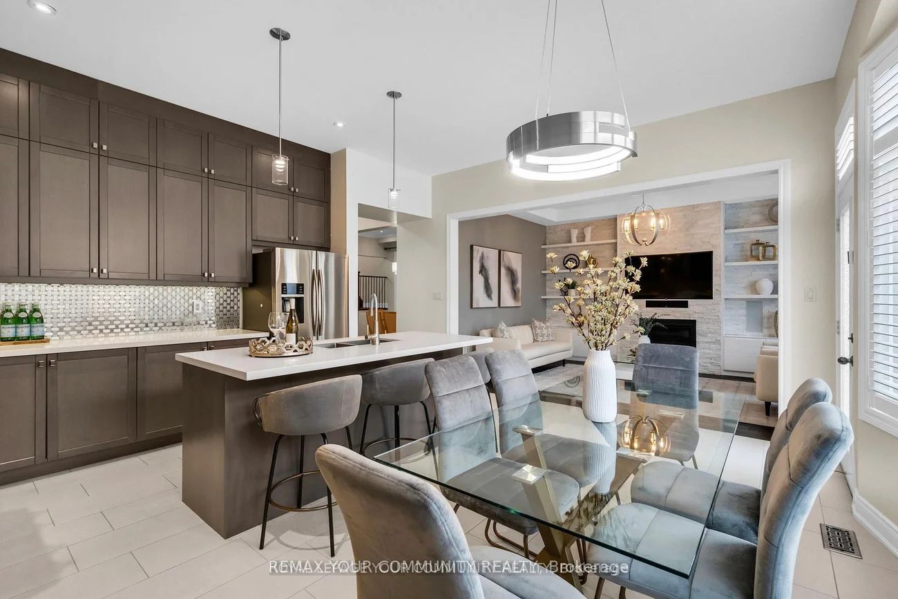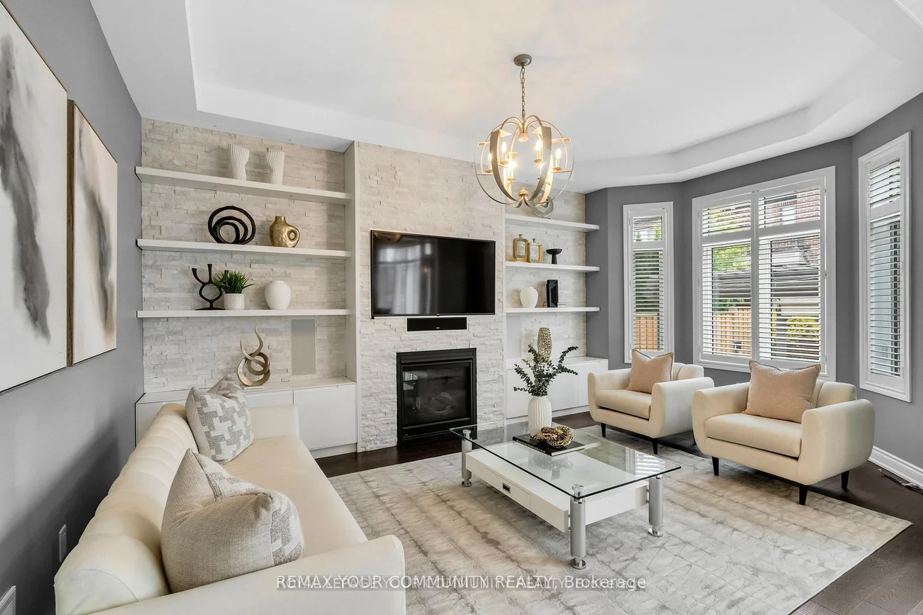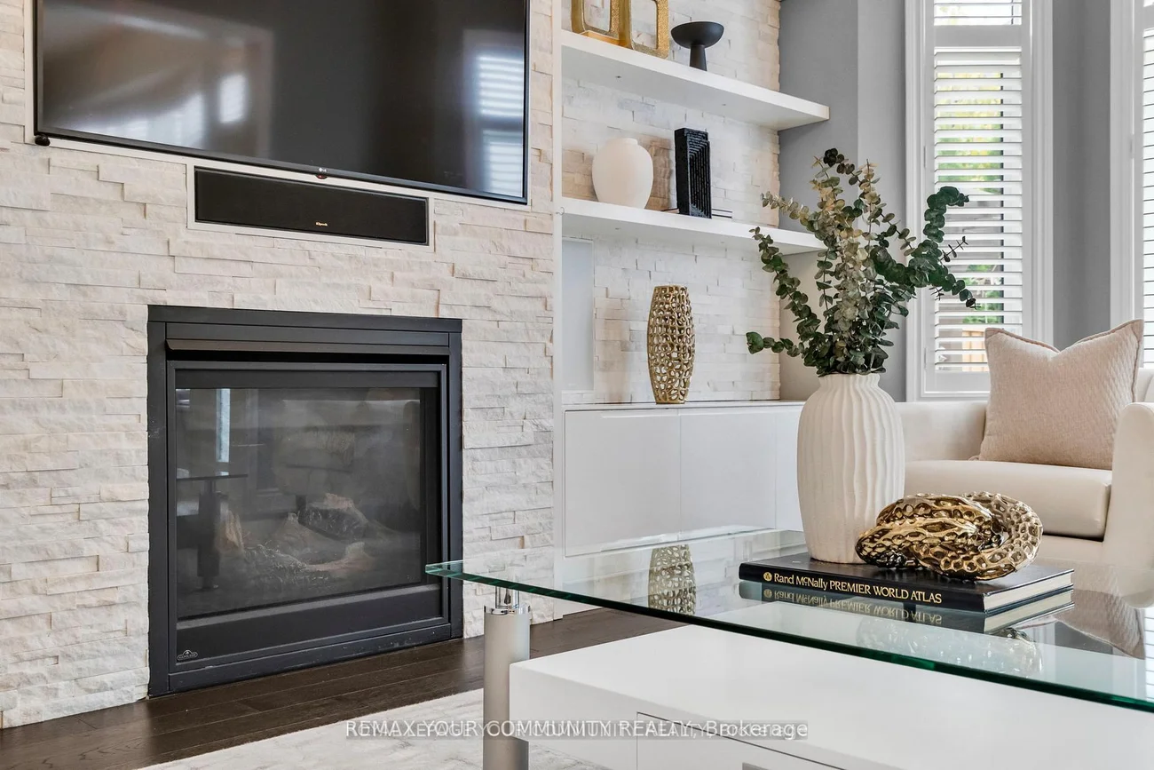 Welcome to Lucky Number 8 King Boulevard, an elegant fully renovated home in a peaceful residential pocket of King City. Perfectly positioned across from a school park with no neighbors in front, this home blends comfort and style. Step inside to soaring 10 foot ceilings, abundant natural light, and above average finishes throughout. The gourmet kitchen is a showpiece with custom cabinetry, a stylish backsplash, a large quartz countertop with a breakfast bar, and a bright breakfast area overlooking the backyard. The family room is warm and inviting with a gas fireplace, built in shelves, and surround sound speakers. The dining room features an electric fireplace that creates a refined setting for entertaining. A formal office with French doors adds flexibility and elegance. Upstairs, the oversized primary bedroom includes his and hers walk in closets, with one offering custom built ins and a secure safe. The second bedroom has its own 3 piece bathroom, while bedrooms three and four share a 4 piece bathroom with double sinks. An open loft and convenient laundry room complete the upper level. The finished basement offers a spacious recreation area currently set up as a home gym and media room with a projector screen and surround sound. A private bedroom and 3 piece bathroom provide space for guests or extended family. Step outside to the backyard oasis with a charming pergola, perfect for relaxing or entertaining. Families will love the quiet setting, top rated schools, nearby trails, parks, local shops, cafés, and easy access to transit and major routes. This exceptional home combines thoughtful design, quality upgrades, and an unbeatable location in the heart of King City. Double car garage, 10 ft ceilings, Custom kitchen, Main Floor Office, Gas and electric fireplaces, Loft and laundry upstairs, Finished basement with media area and gym, Pergola, 5 Minute Drive to the GO Station, 3 Minutes to The King City Arena & Community Centre. Hot Water Tankless Heater Owned!