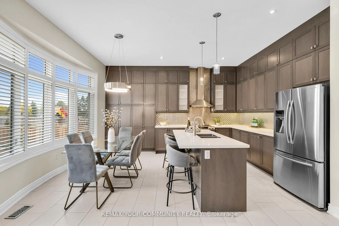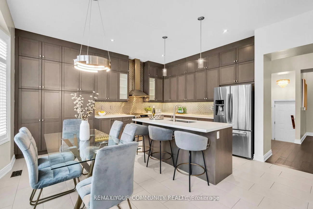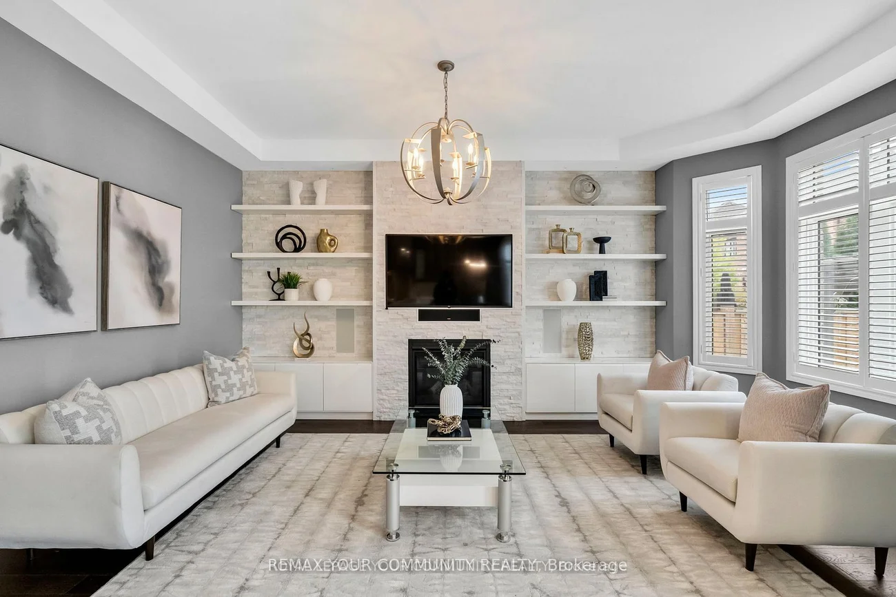 Welcome to Lucky Number 8 King Boulevard, an elegant fully renovated home in a peaceful residential pocket of King City. Perfectly positioned across from a school park with no neighbors in front, this home blends comfort and style. Step inside to soaring 10 foot ceilings, abundant natural light, and above average finishes throughout. The gourmet kitchen is a showpiece with custom cabinetry, a stylish backsplash, a large quartz countertop with a breakfast bar, and a bright breakfast area overlooking the backyard. The family room is warm and inviting with a gas fireplace, built in shelves, and surround sound speakers. The dining room features an electric fireplace that creates a refined setting for entertaining. A formal office with French doors adds flexibility and elegance. Upstairs, the oversized primary bedroom includes his and hers walk in closets, with one offering custom built ins and a secure safe. The second bedroom has its own 3 piece bathroom, while bedrooms three and four share a 4 piece bathroom with double sinks. An open loft and convenient laundry room complete the upper level. The finished basement offers a spacious recreation area currently set up as a home gym and media room with a projector screen and surround sound. A private bedroom and 3 piece bathroom provide space for guests or extended family. Step outside to the backyard oasis with a charming pergola, perfect for relaxing or entertaining. Families will love the quiet setting, top rated schools, nearby trails, parks, local shops, cafés, and easy access to transit and major routes. This exceptional home combines thoughtful design, quality upgrades, and an unbeatable location in the heart of King City. Double car garage, 10 ft ceilings, Custom kitchen, Main Floor Office, Gas and electric fireplaces, Loft and laundry upstairs, Finished basement with media area and gym, Pergola, 5 Minute Drive to the GO Station, 3 Minutes to The King City Arena & Community Centre. Hot Water Tankless Heater Owned!