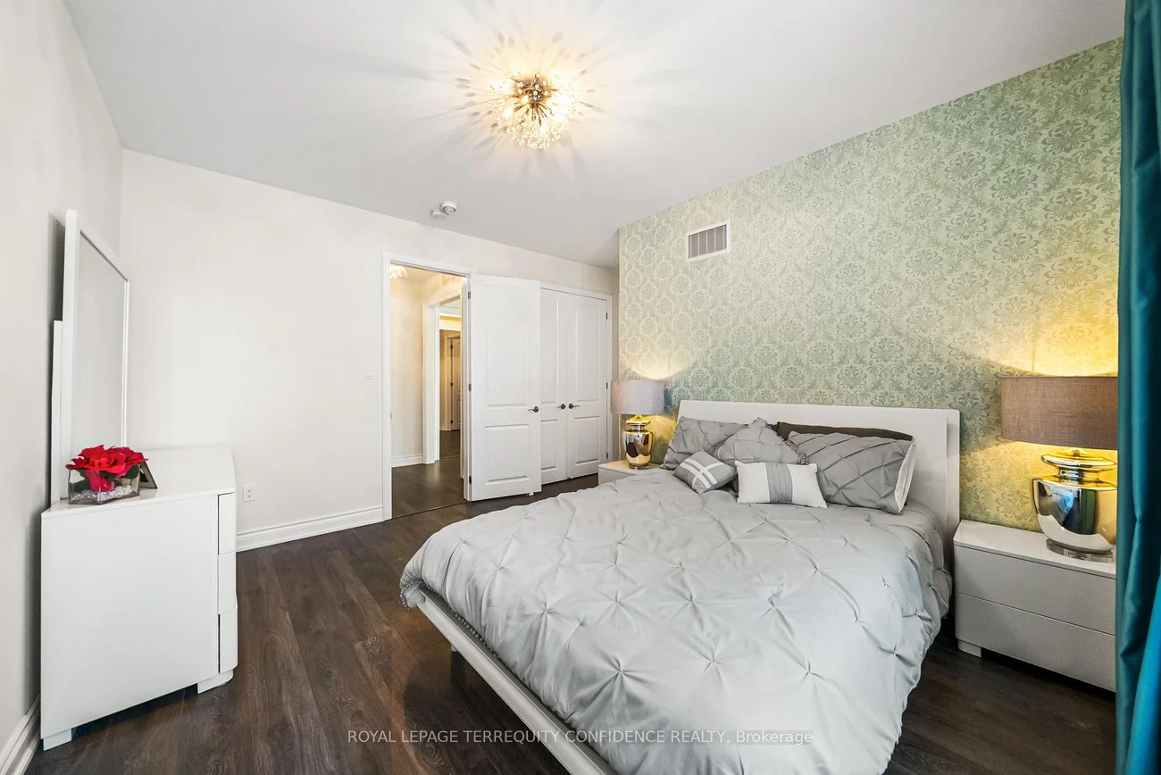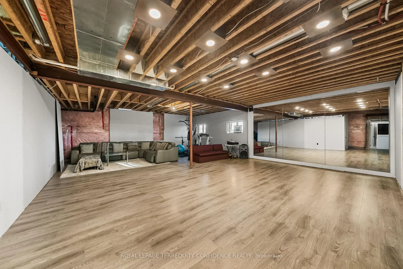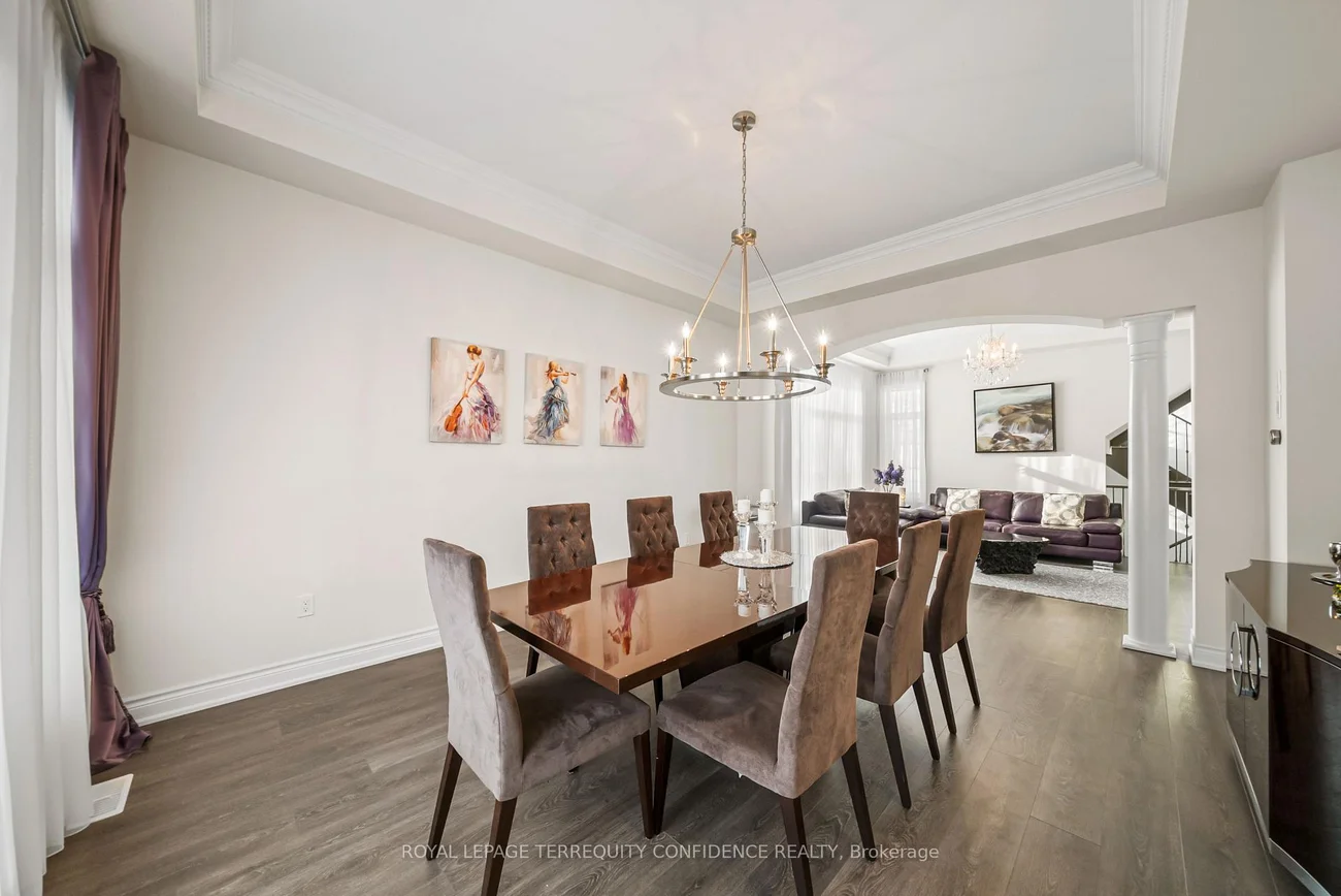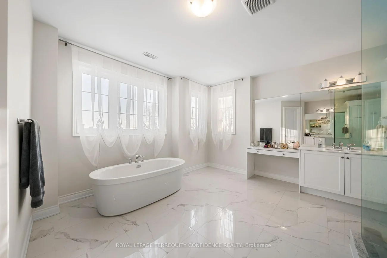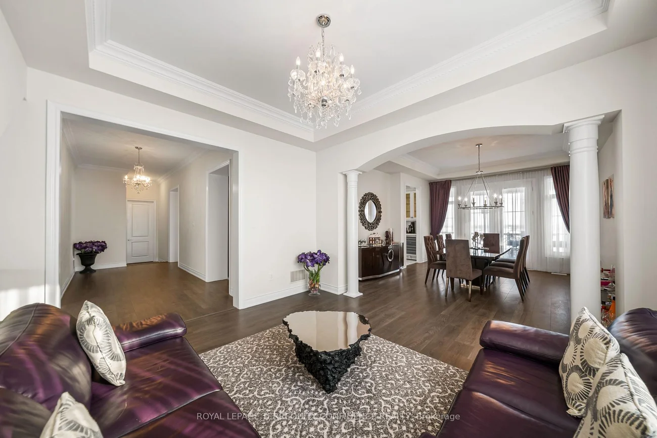 Buy Before it's Gone! Unique opportunity to own a 7500+ sqft home, on a one-of-a-kind, pie-shaped lot. Located at the end of a quiet cul-de-sac, backing onto open green space with only one neighbor to the east- providing utmost privacy. This meticulously maintained home also boasts an exceptional 75' frontage with south exposure, 4900+ sqft above grade, large principal rooms, & a 3 car garage! Enter to be greeted by the dramatic foyer with soaring double-height ceilings and double closets, an exclusive main floor office with high ceilings & floor-to-ceiling windows, formal living & dining rooms with architectural columns, elegant chef's kitchen with an oversized island, quartz counters, 72" Sub-Zero fridge/freezer, Wolf gas cooktop, & dedicated servery with built-ins, a bright breakfast area overlooking the backyard, and a spacious family room complete with a fireplace & walk-out to the porch. Upstairs, discover 4 spacious bedrooms, each with their own ensuite; and a versatile den. The primary suite is a private sanctuary, with two walk-in his & hers closets, a sitting area, fireplace, and a 5-piece spa-inspired ensuite, with an oversized glass shower. Downstairs, the partially finished basement includes a luxurious state-of-the-art sauna, gym/yoga space, lounge area/recreation room, and rough-ins for additional bathroom and kitchen/bar. Additional features throughout the home include: a mudroom with access from the garage, custom cabinetry, custom jacuzzi (backyard), 10' high ceilings on main, crown moulding, French doors, and generous storage (including space under rear porch). In the peaceful backyard, enjoy the south-facing, private view from the balustrade porch, or in the relaxing jacuzzi. From the front porch, the location provides views of the CN Tower, and forest trail directly across the street. Only minutes to nearby amenities. Live in the perfect blend of seclusion and accessibility.