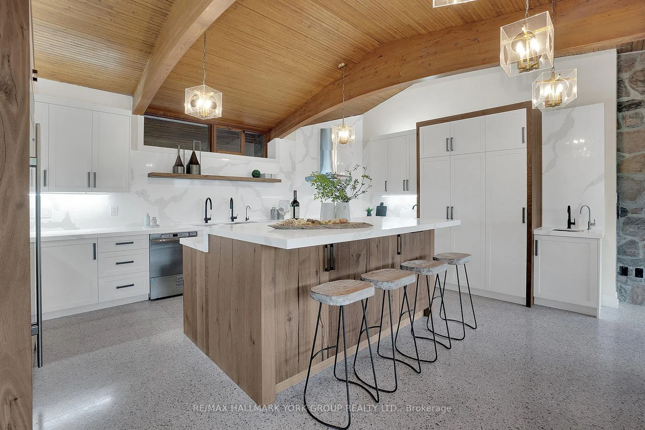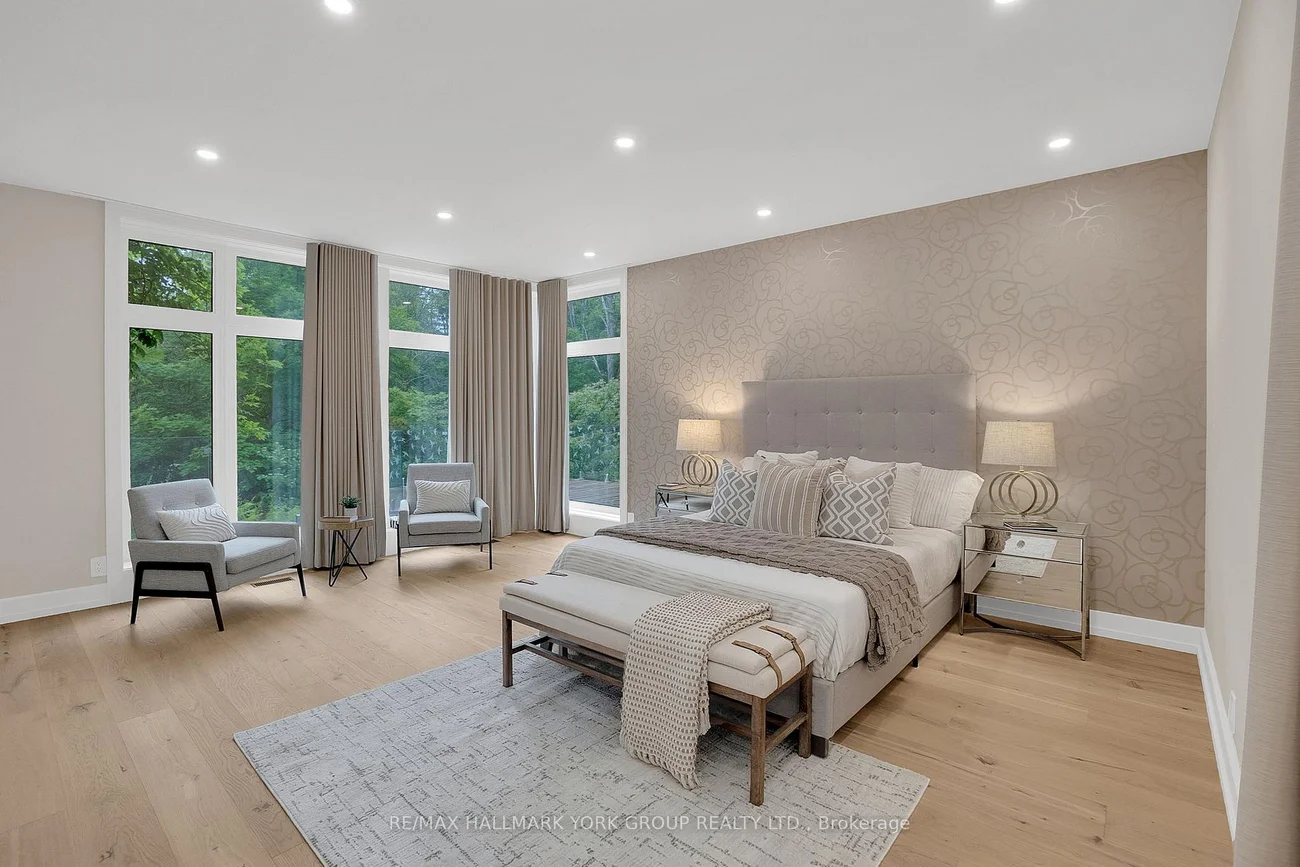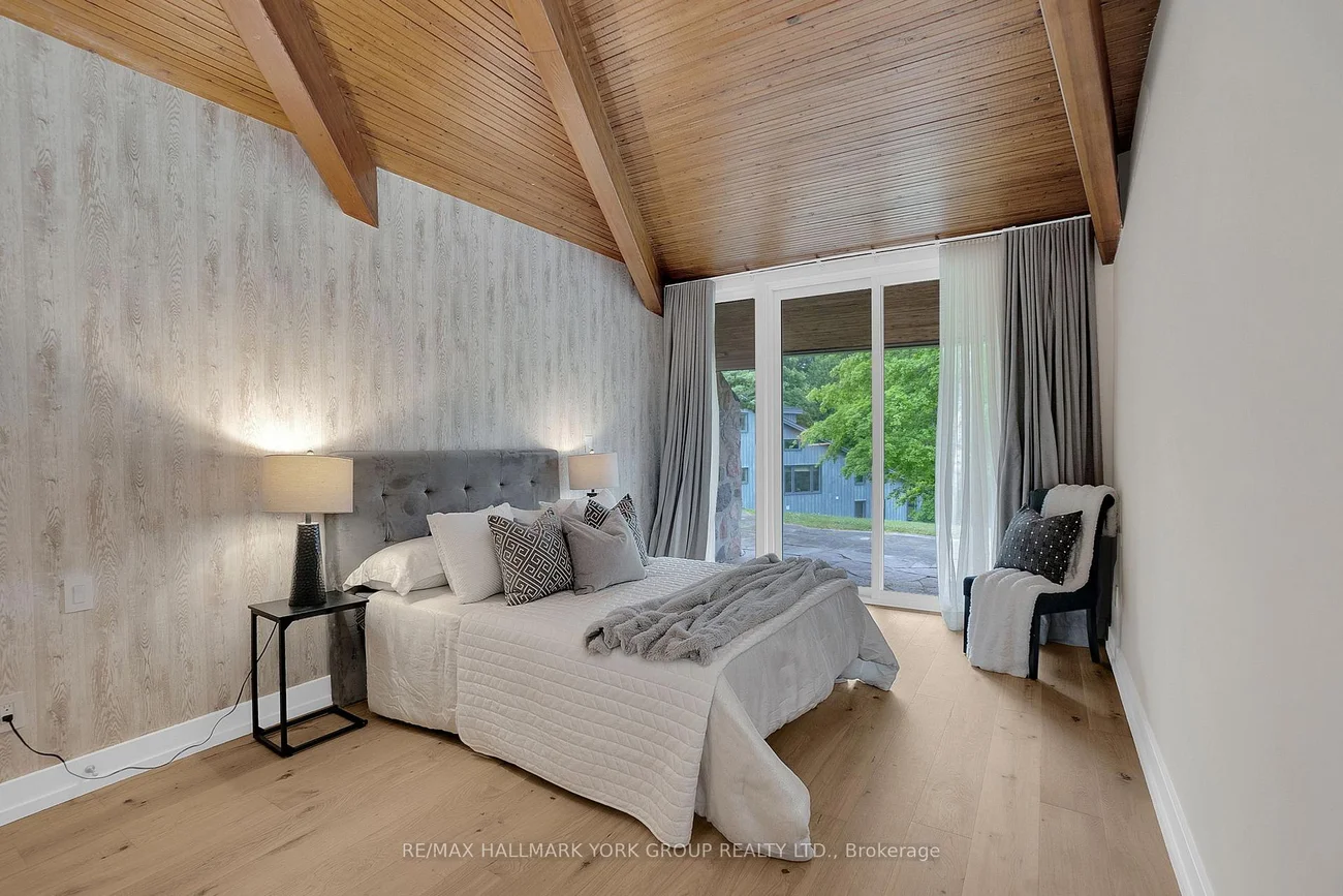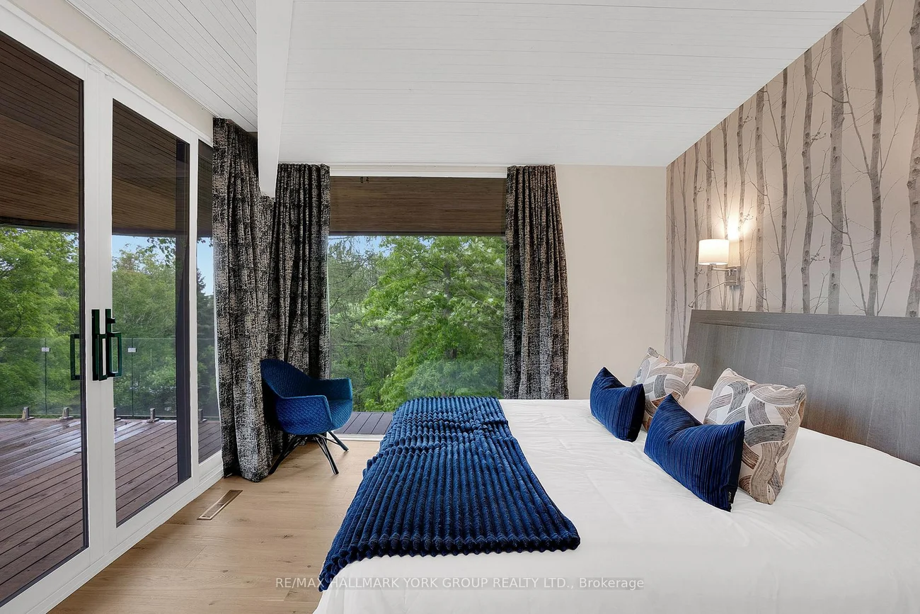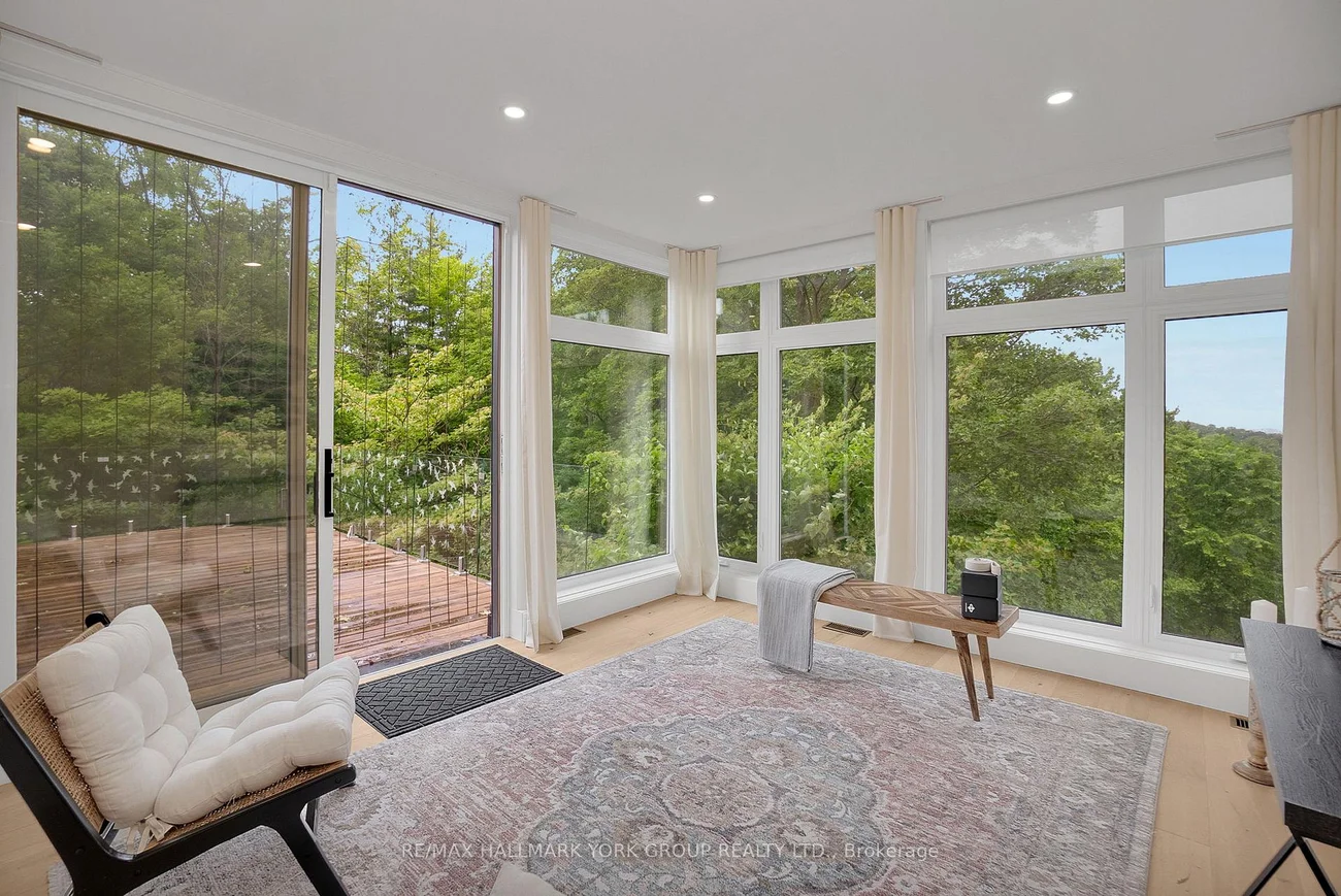 Welcome to an extraordinary estate tucked away behind welcoming stone pillars and a winding forested driveway! This is a work of art designed by the legendary Grant Whatmough and Gardiner Cowan, with distinctive Frank Lloyd Wright style of Architecture. This iconic Mid-Century Modern residence is gracefully integrated into 32 acres of majestic land, where nature and architecture exist in perfect harmony. From the moment you approach the stunning entry door, you're drawn into a world of timeless design and serene beauty. This home is lovingly maintained with extensive renovations, while preserving the character and soul of this home, Including Floor-to-ceiling windows bring the outdoors in, Stone fireplaces indoor and out, original stone walls and impressive wood beams throughout. Spanning approximately 5,000 sq ft, the main residence features 6 bedrooms, 7 bathrooms, an office, a meditation room, and a separate nanny suite. Multiple terraces and decks surround the home, offering breathtaking views of the land, and a tranquil lake creating the feel of a private luxury retreat. This property features a rare second home- fully renovated and approximately 3,500 sq ft-offering 3 bedrooms, 4 bathrooms, and a massive loft space! This second home is ideal for an extended family! There is an additional Yoga studio with an outdoor shower! a Detached garage/ workshop, a charming cedar Cabin with Sauna and Cold plunge, a Covered cabana for entertaining or relaxing on the property. This is a once-in-a-lifetime opportunity to own an architecturally significant estate in the prestigious King Township. With unmatched privacy, lush surroundings, and two beautifully appointed homes, this property is truly a timeless work of art. Don't Miss it!